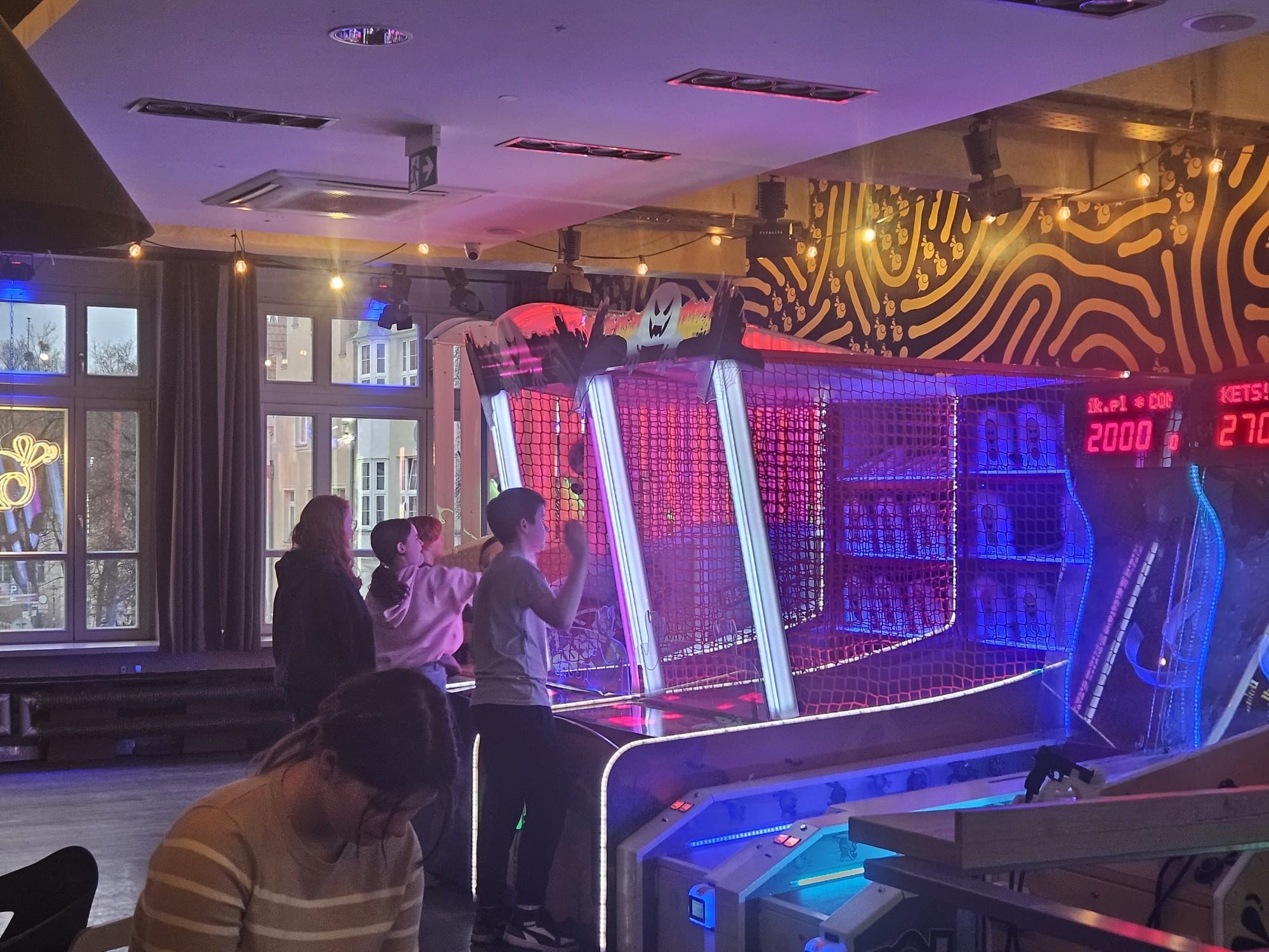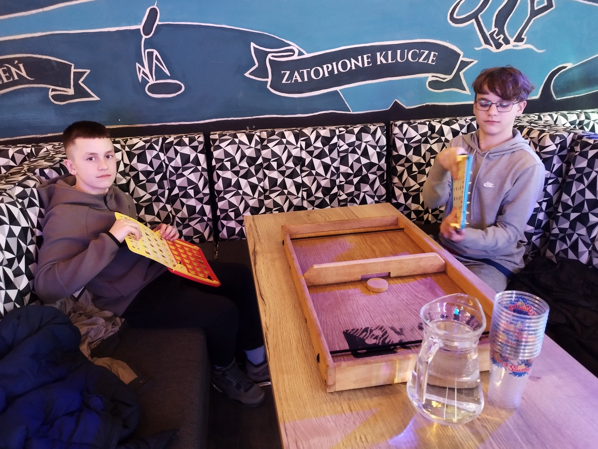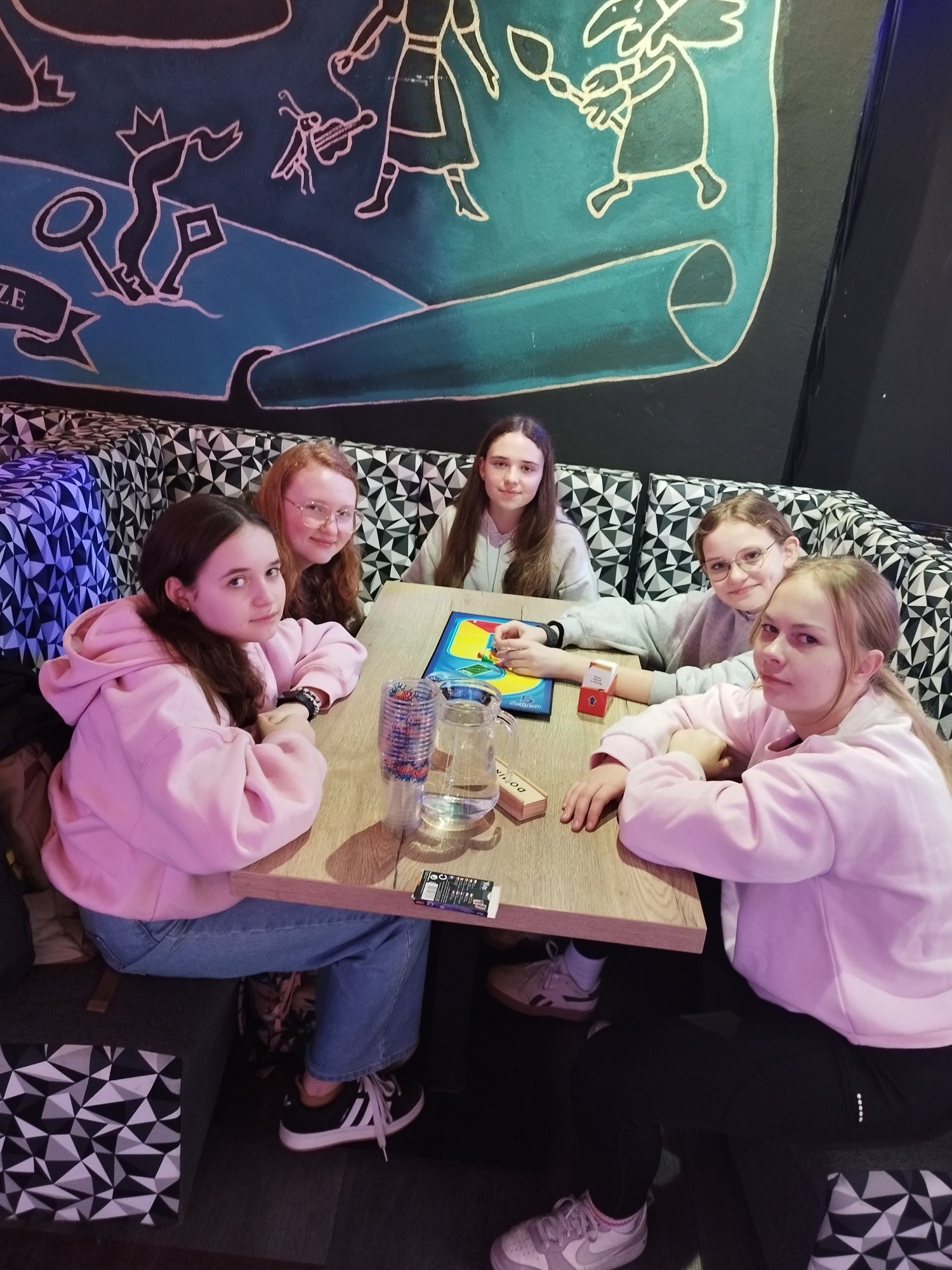 Najpierw sprawdziliśmy nasze umiejętności logiczne w escape roomie „Profesorek”, gdzie musieliśmy wspólnie rozwiązywać zagadki i wydostać się z pokoju. Było dużo śmiechu i świetnej współpracy.