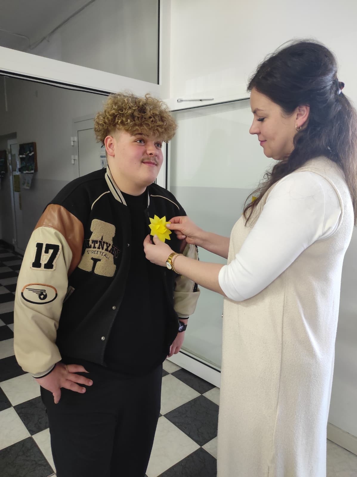 Uczniowie oraz nauczyciele przypięli symboliczne żonkile – znak pamięci, szacunku i nadziei. Wspólnie zatrzymaliśmy się na chwilę refleksji, aby oddać hołd tym, którzy walczyli o godność i wolność.