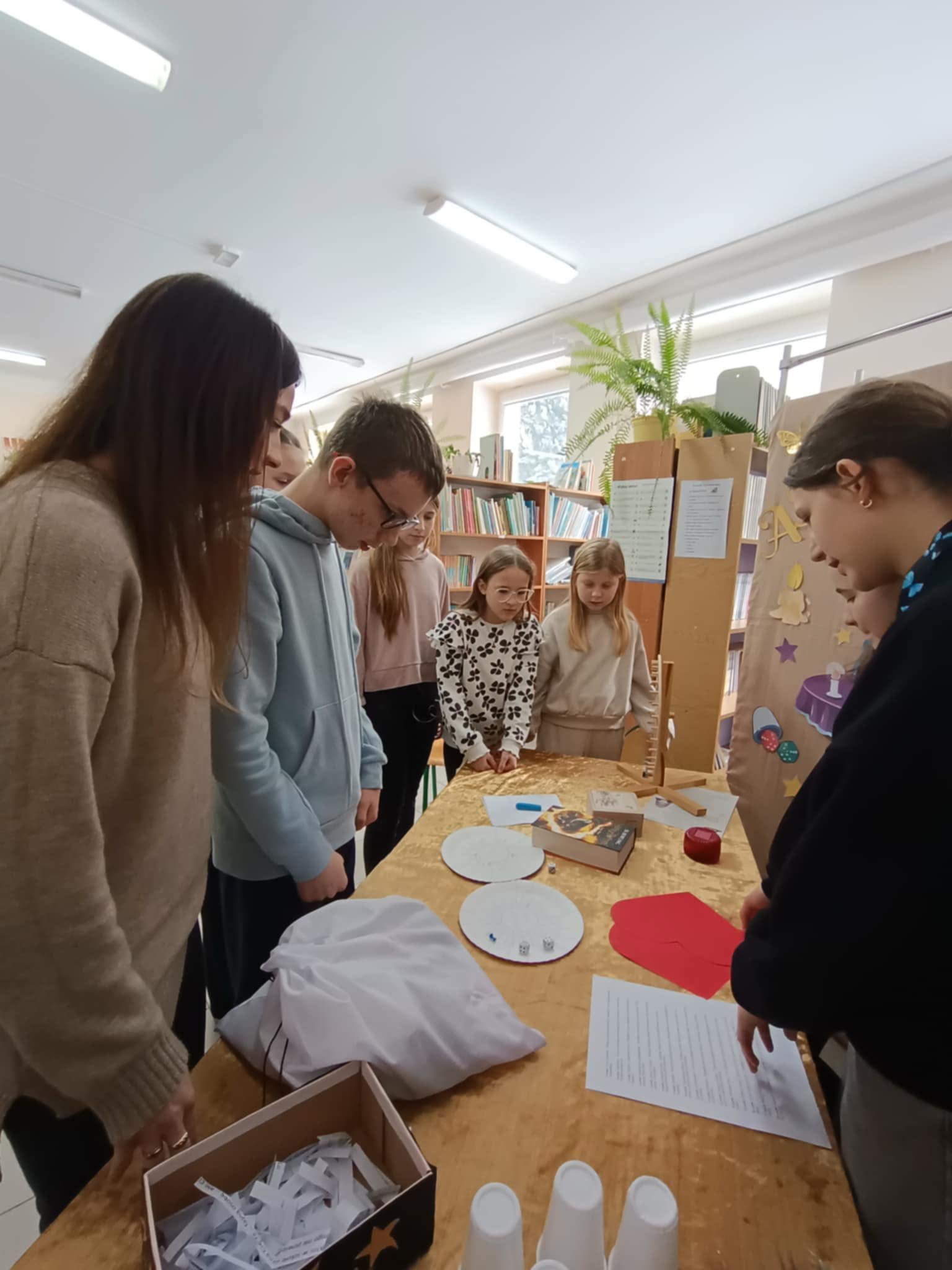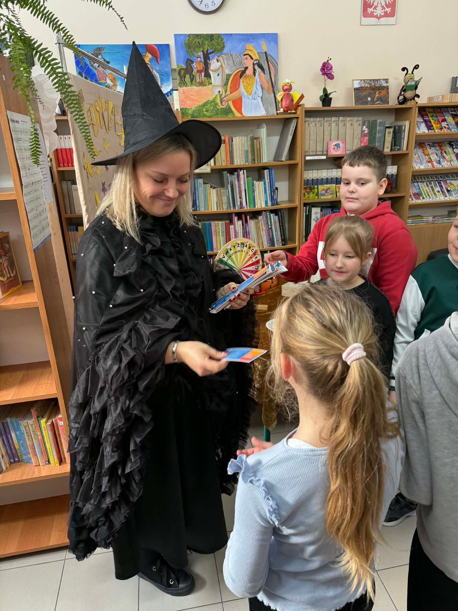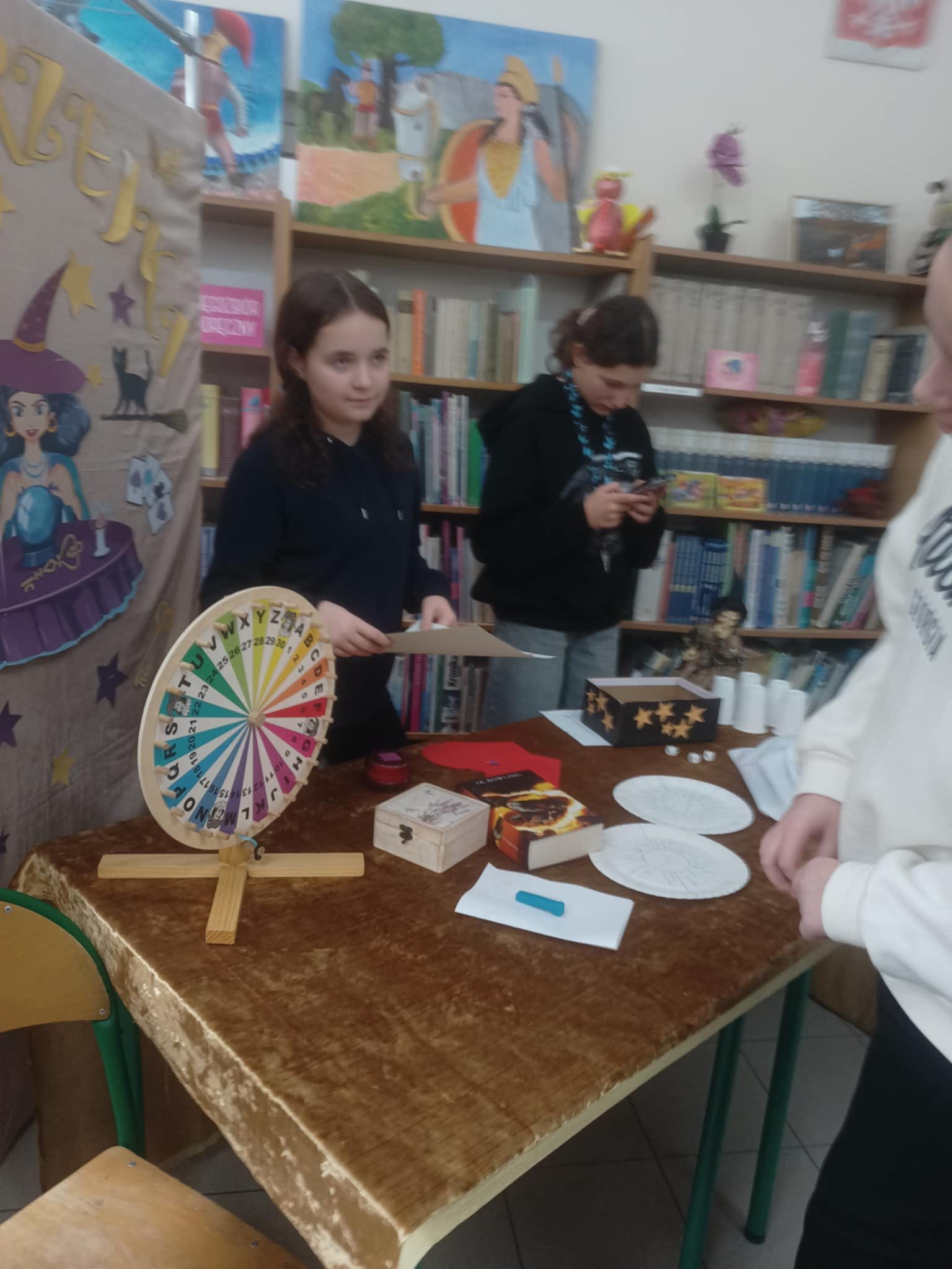 Wróżby i zabawy cieszyły się ogromnym zainteresowaniem uczniów klas IIIc, Va, Vb oraz VIIIa. Podczas przerw biblioteka tętniła życiem, a do stolika wróżki Emilki ciągnęły kolejne grupy spragnionych magii uczniów.
