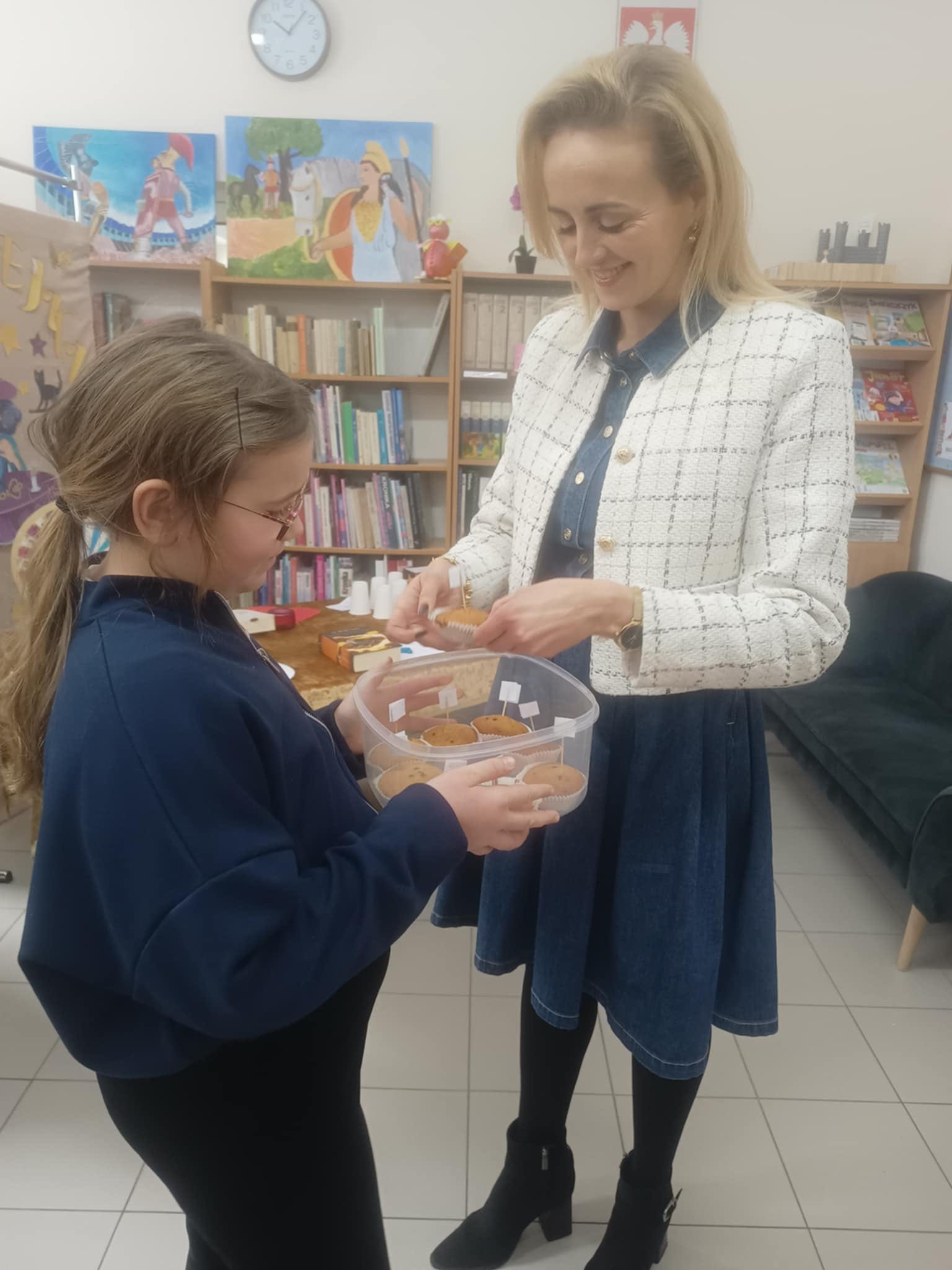 Cieszy nas także obecność Pani Dyrektor Beaty Ciesielskiej-Betlińskiej oraz wychowawców klas, którzy wspólnie z uczniami uczestniczyli w andrzejkowej zabawie. Dużym powodzeniem cieszyły się również przepyszne babeczki upieczone przez Olę i Natalię — znikały w mgnieniu oka!