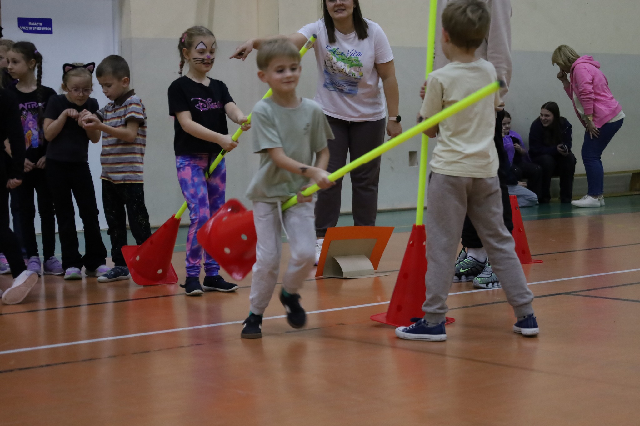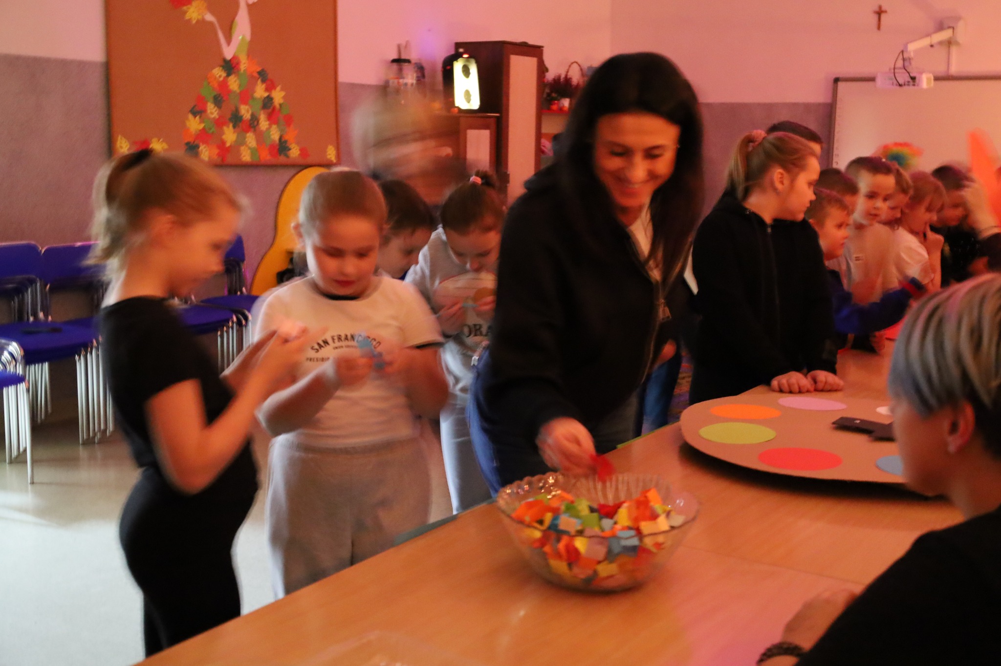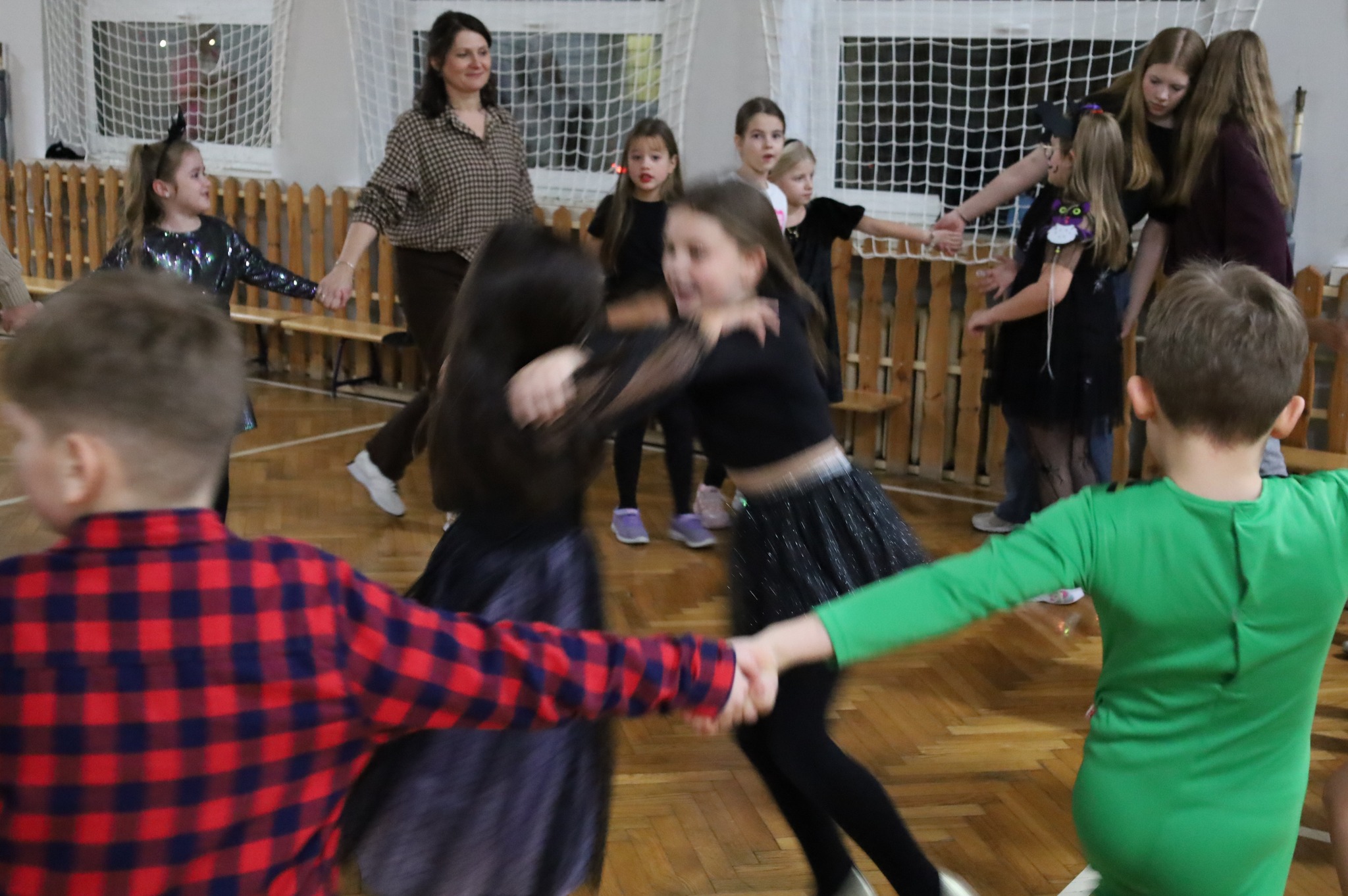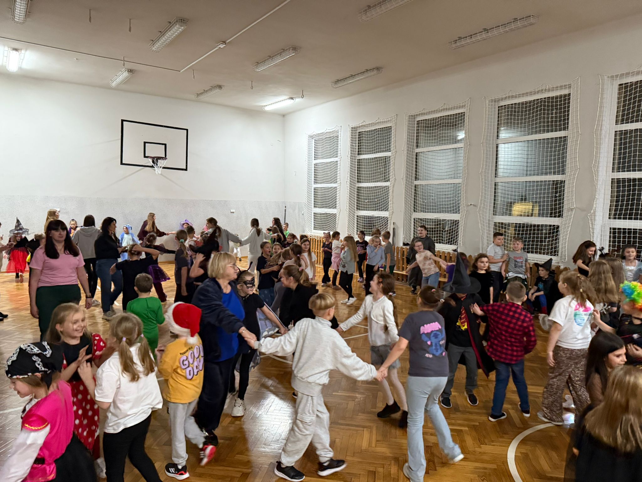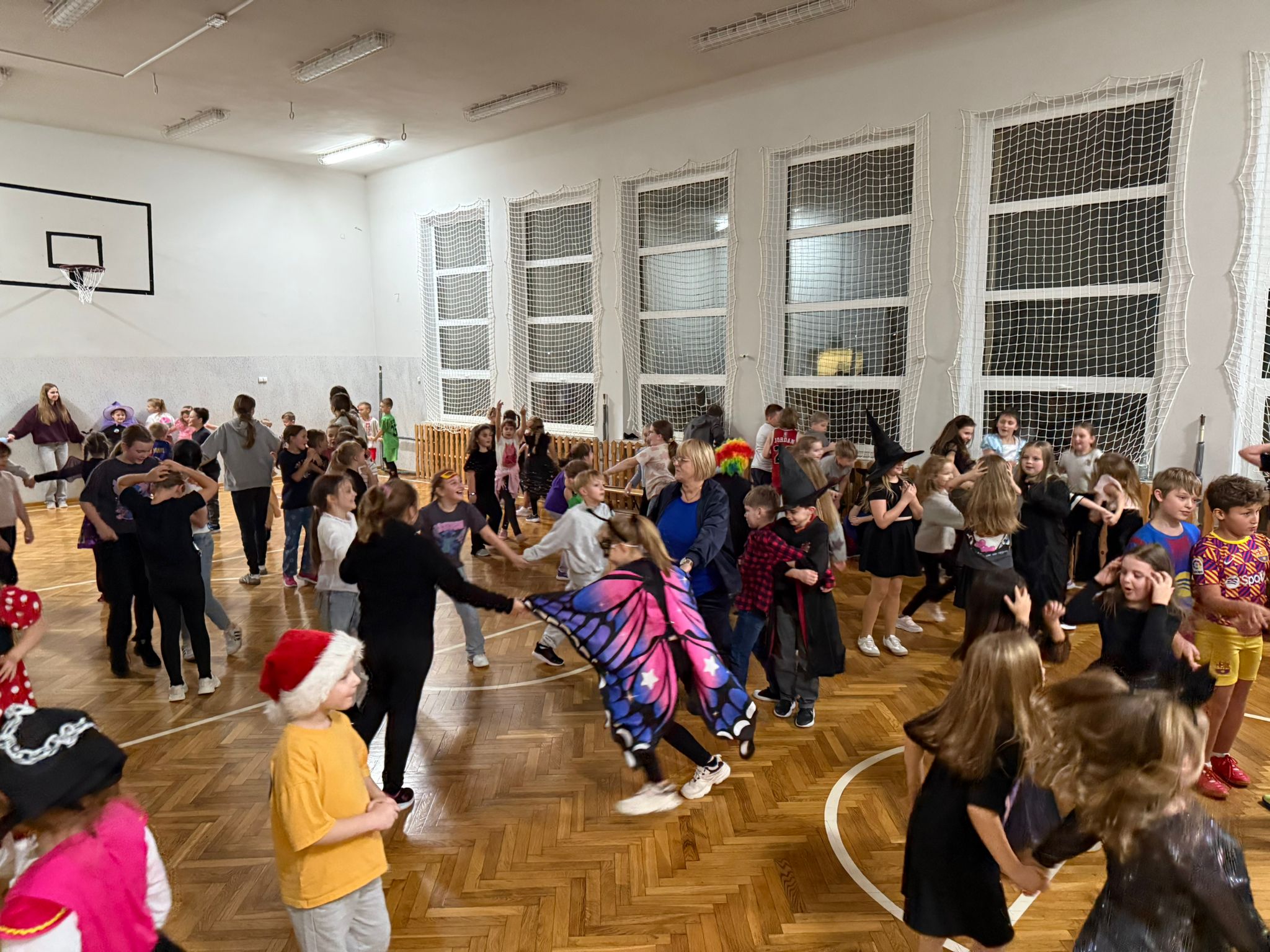 Na dzieci czekały andrzejkowe wróżby, które wywoływały wiele emocji i śmiechu. W hali gimnastycznej odbywały się zabawy sportowe, pełne ruchu i zdrowej rywalizacji. Nie zabrakło także wesołej dyskoteki, podczas której wszyscy świetnie się bawili.