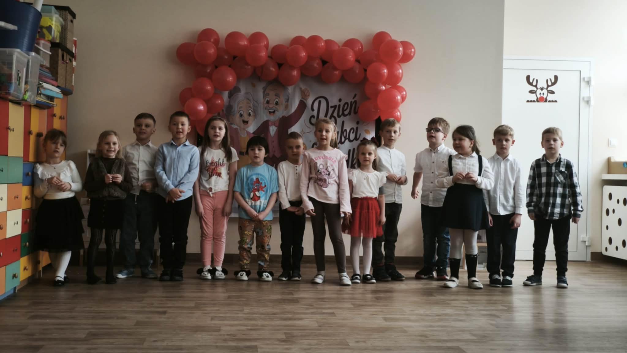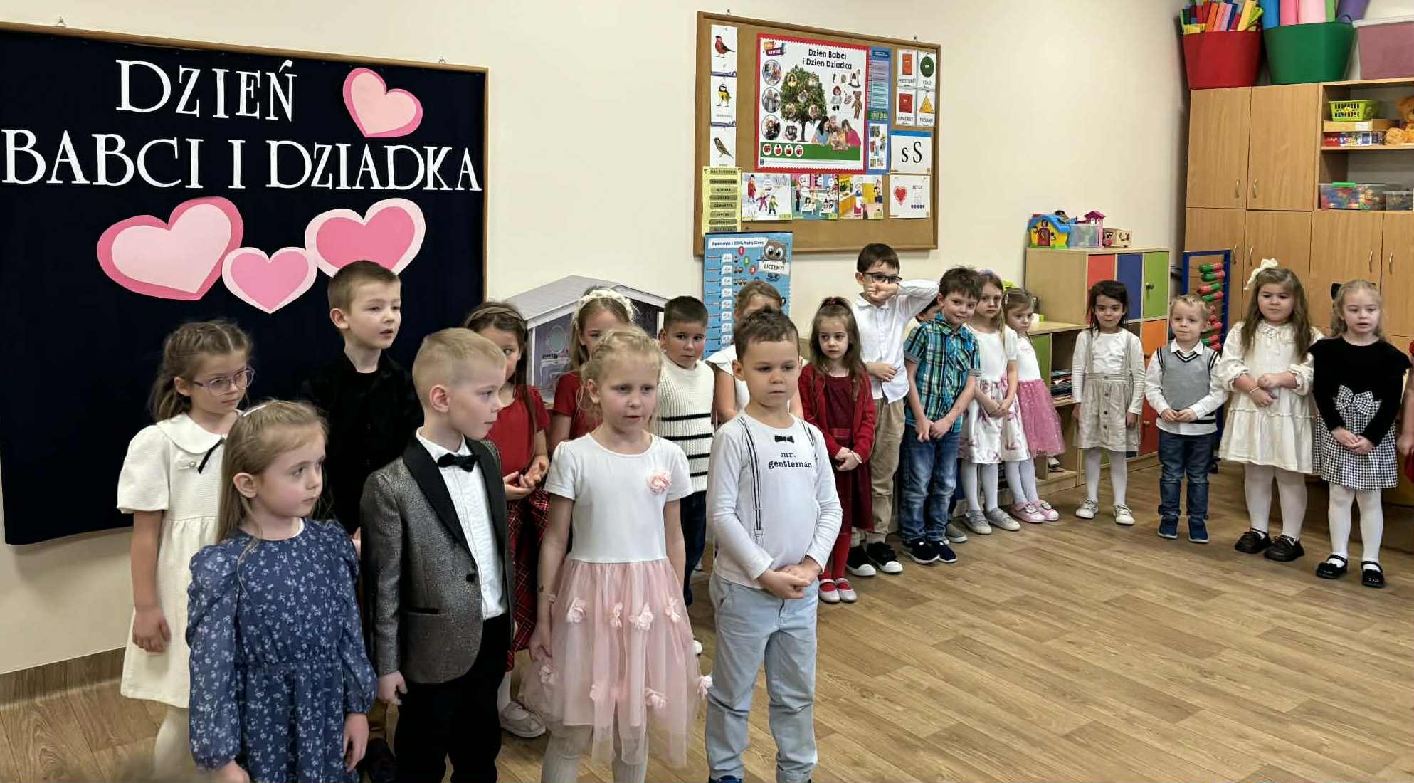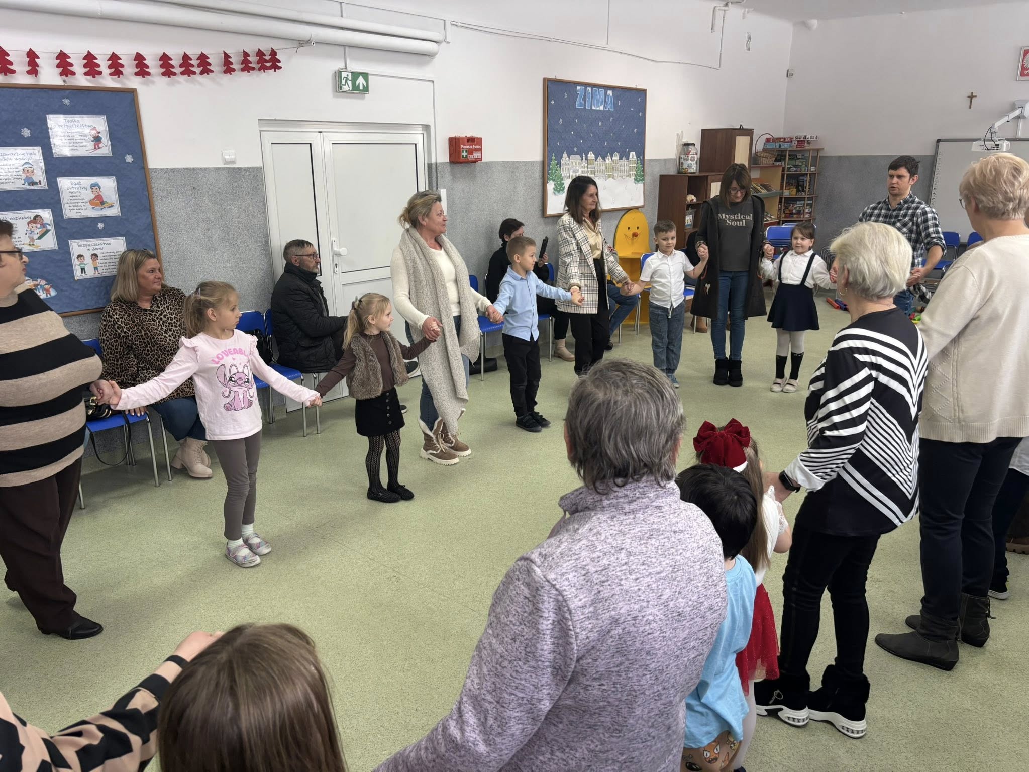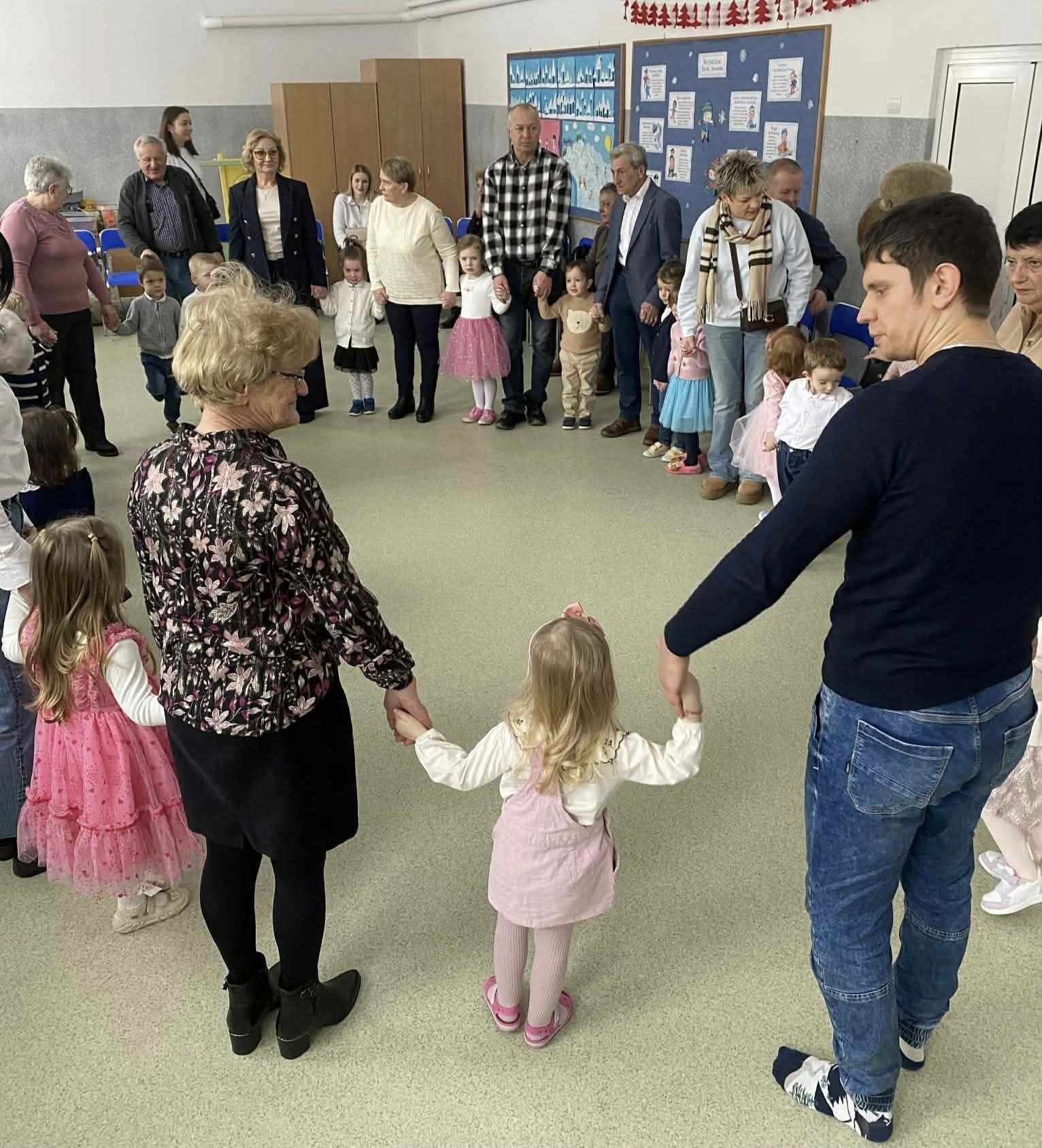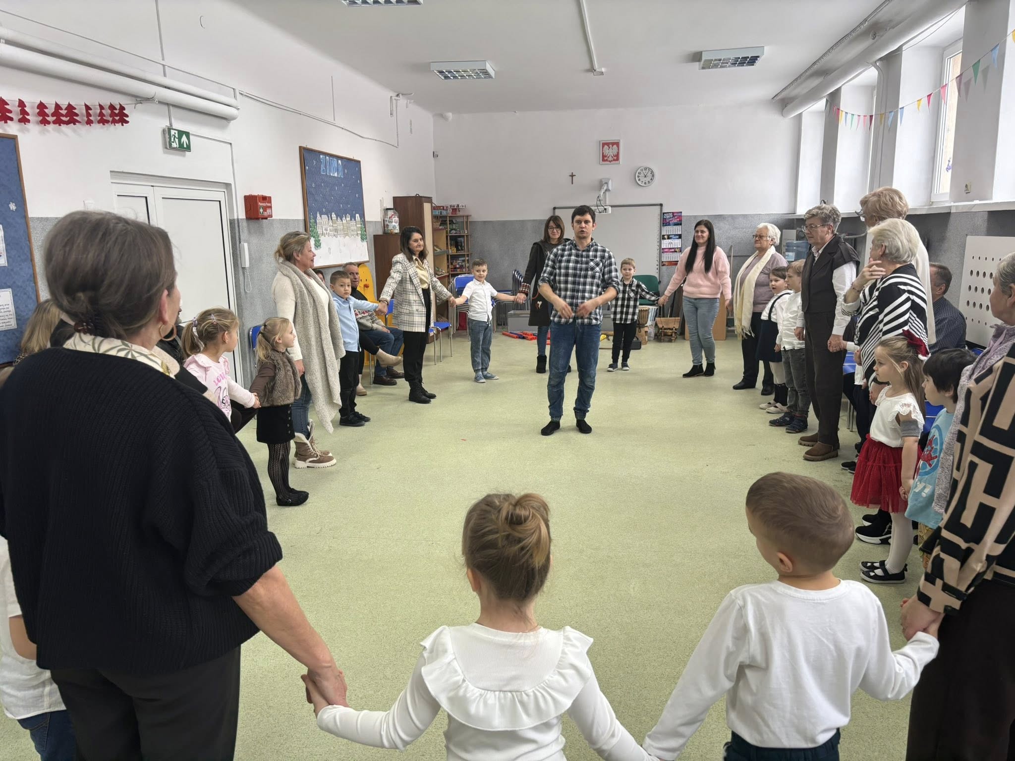 Z okazji Dnia Babci i Dziadka w naszym przedszkolu, odbyły się wyjątkowe warsztaty muzyczne pt: „Muzyka łączy pokolenia”, których celem było wspólne świętowanie oraz integracja międzypokoleniowa. Babcie i Dziadkowie przybyli licznie, aby w radosnej i ciepłej atmosferze spędzić czas ze swoimi wnukami. Nasi wyjątkowi goście, zostali zaproszeni do udziału w warsztatach muzycznych, podczas których wspólnie odkrywali radość płynącą z muzykowania. Wspólne zabawy rytmiczne, śpiew oraz tworzenie prostych akompaniamentów sprzyjały budowaniu więzi, rozwijaniu wrażliwości muzycznej oraz wzajemnemu zrozumieniu i współpracy między pokoleniami. To wyjątkowe spotkanie przebiegło w niezwykle serdecznej i rodzinnej atmosferze, pełnej wzruszeń i pozytywnych emocji. Następnie Babcie i Dziadkowie udali się do sal przedszkolnych na krótki program artystyczny, przygotowany przez dzieci. Mali artyści z wielkim zaangażowaniem śpiewali piosenki, recytowali wierszyki oraz wręczyli piękne, przygotowane własnoręcznie laurki. Serdecznie dziękujemy Rodzicom za zaangażowanie i współpracę oraz Panu Kamilowi Fałdowskiemu z „Moozomontowni” za przeprowadzenie warsztatów.