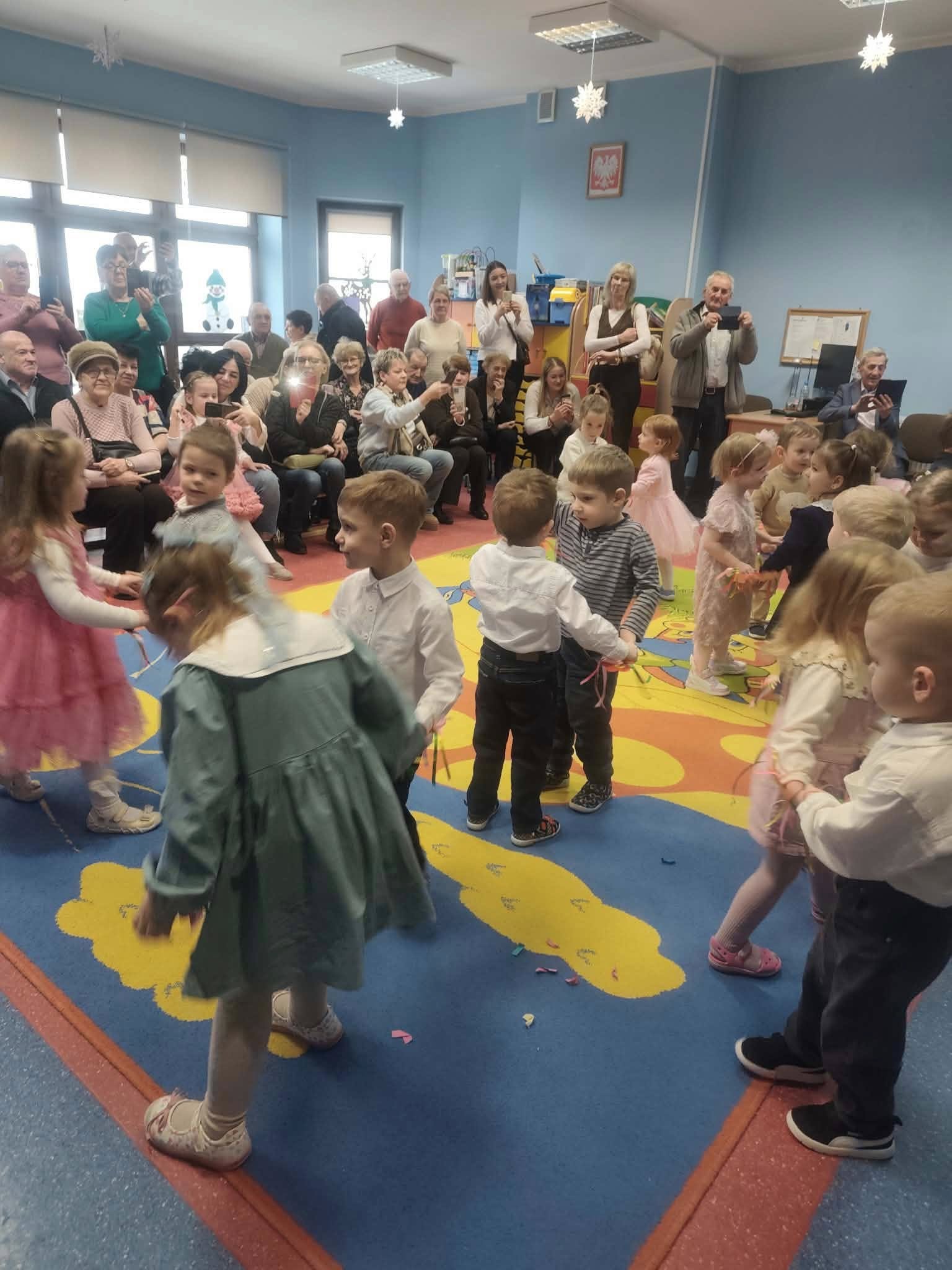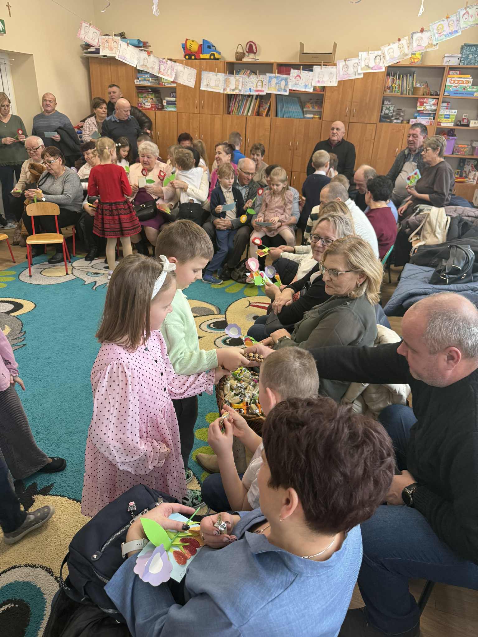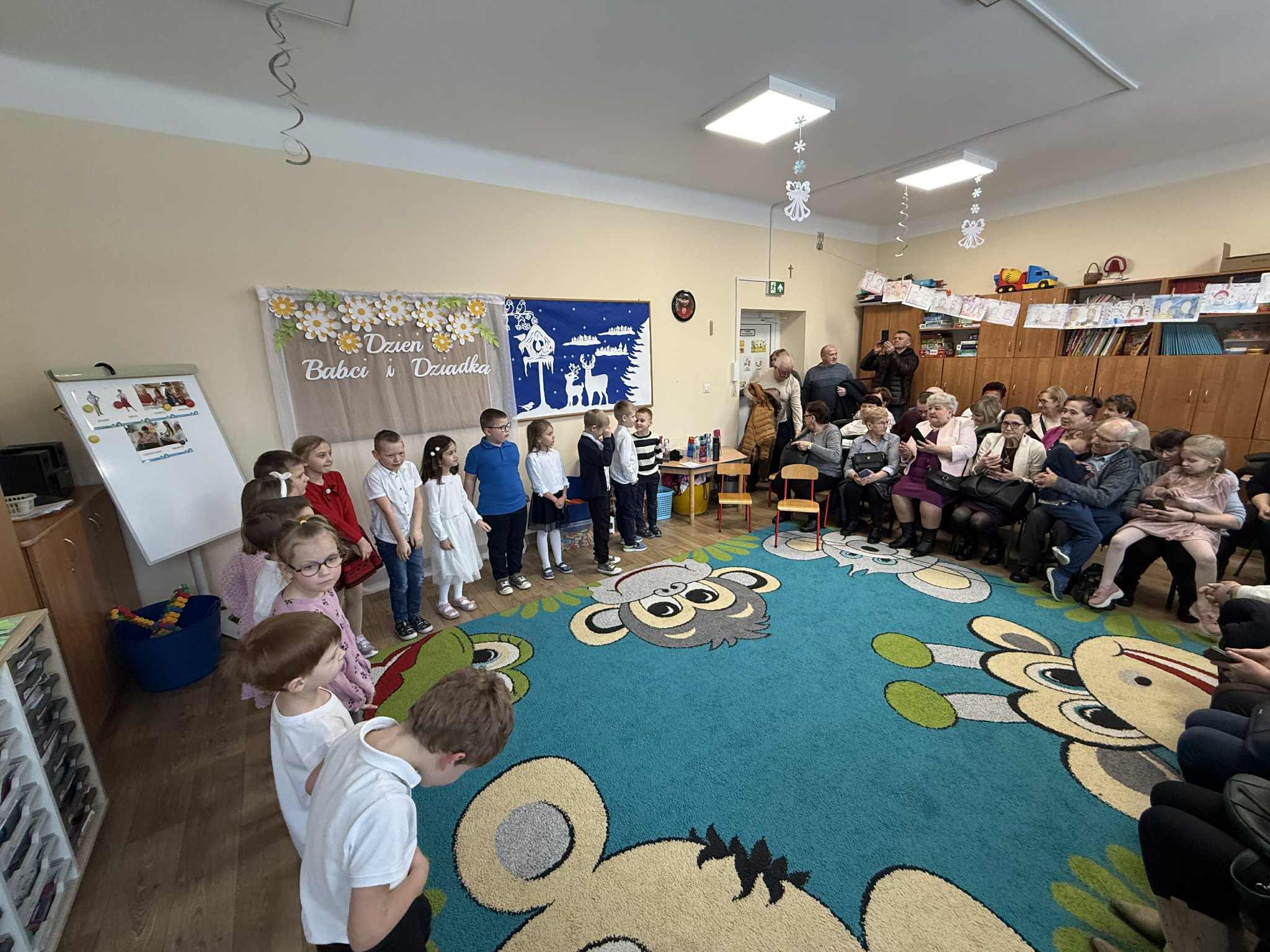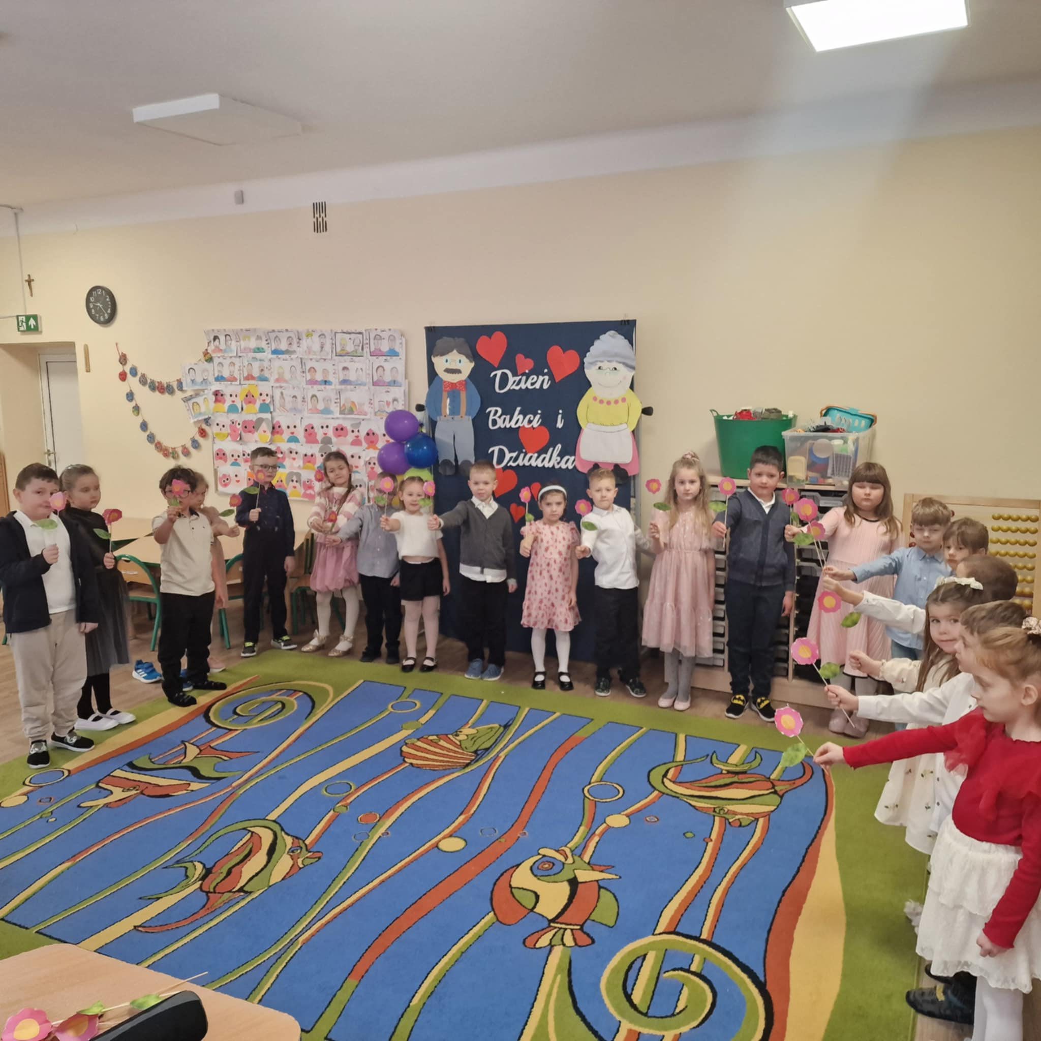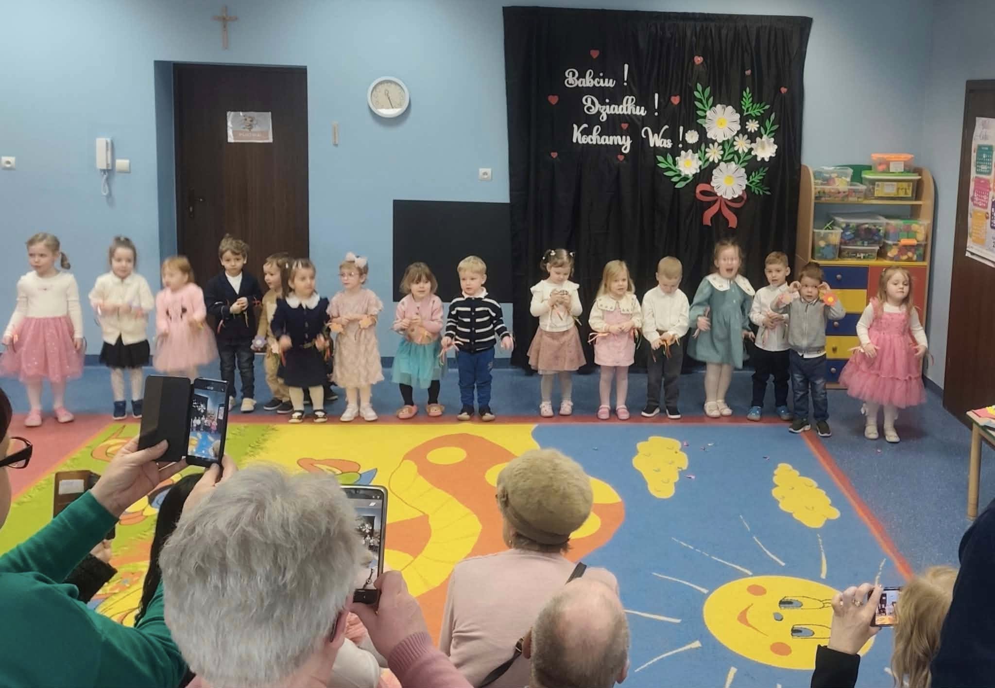 Z okazji Dnia Babci i Dziadka w naszym przedszkolu, odbyły się wyjątkowe warsztaty muzyczne pt: „Muzyka łączy pokolenia”, których celem było wspólne świętowanie oraz integracja międzypokoleniowa. Babcie i Dziadkowie przybyli licznie, aby w radosnej i ciepłej atmosferze spędzić czas ze swoimi wnukami. Nasi wyjątkowi goście, zostali zaproszeni do udziału w warsztatach muzycznych, podczas których wspólnie odkrywali radość płynącą z muzykowania. Wspólne zabawy rytmiczne, śpiew oraz tworzenie prostych akompaniamentów sprzyjały budowaniu więzi, rozwijaniu wrażliwości muzycznej oraz wzajemnemu zrozumieniu i współpracy między pokoleniami. To wyjątkowe spotkanie przebiegło w niezwykle serdecznej i rodzinnej atmosferze, pełnej wzruszeń i pozytywnych emocji. Następnie Babcie i Dziadkowie udali się do sal przedszkolnych na krótki program artystyczny, przygotowany przez dzieci. Mali artyści z wielkim zaangażowaniem śpiewali piosenki, recytowali wierszyki oraz wręczyli piękne, przygotowane własnoręcznie laurki. Serdecznie dziękujemy Rodzicom za zaangażowanie i współpracę oraz Panu Kamilowi Fałdowskiemu z „Moozomontowni” za przeprowadzenie warsztatów.
