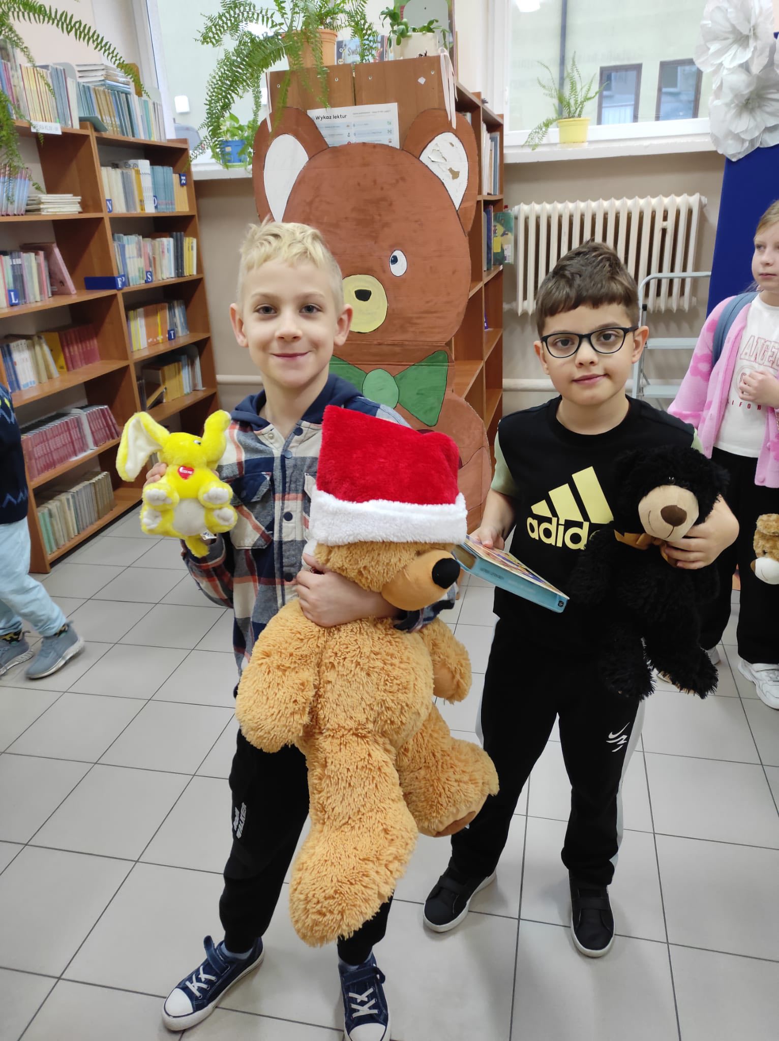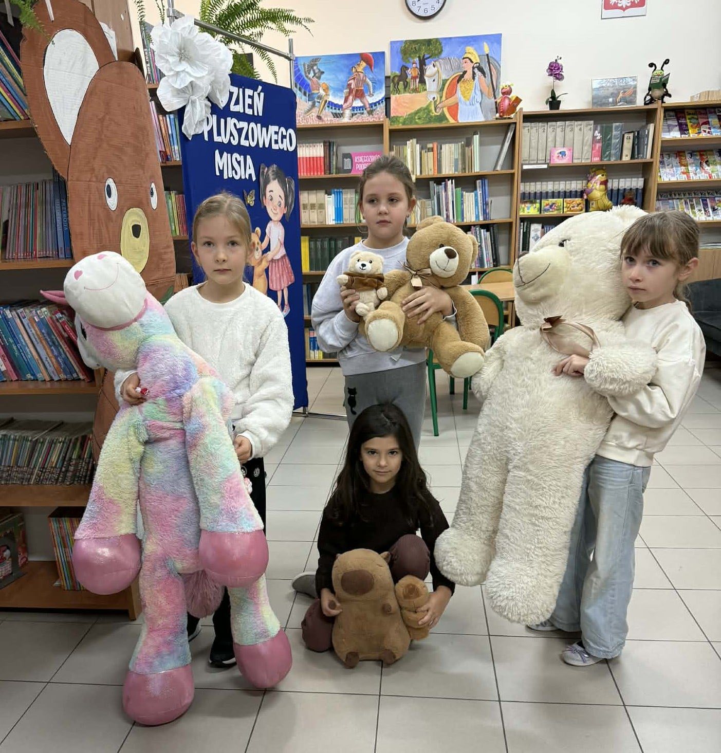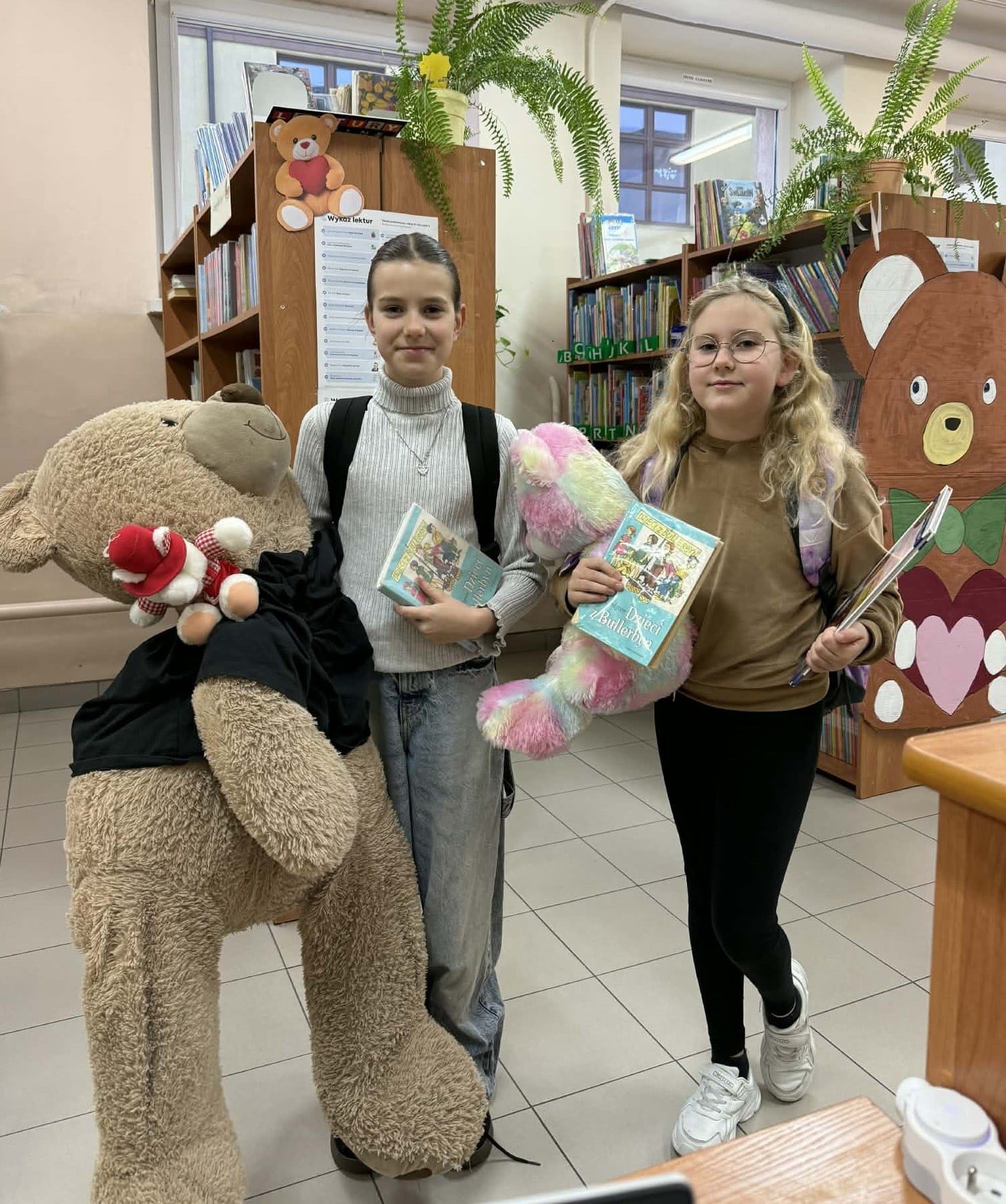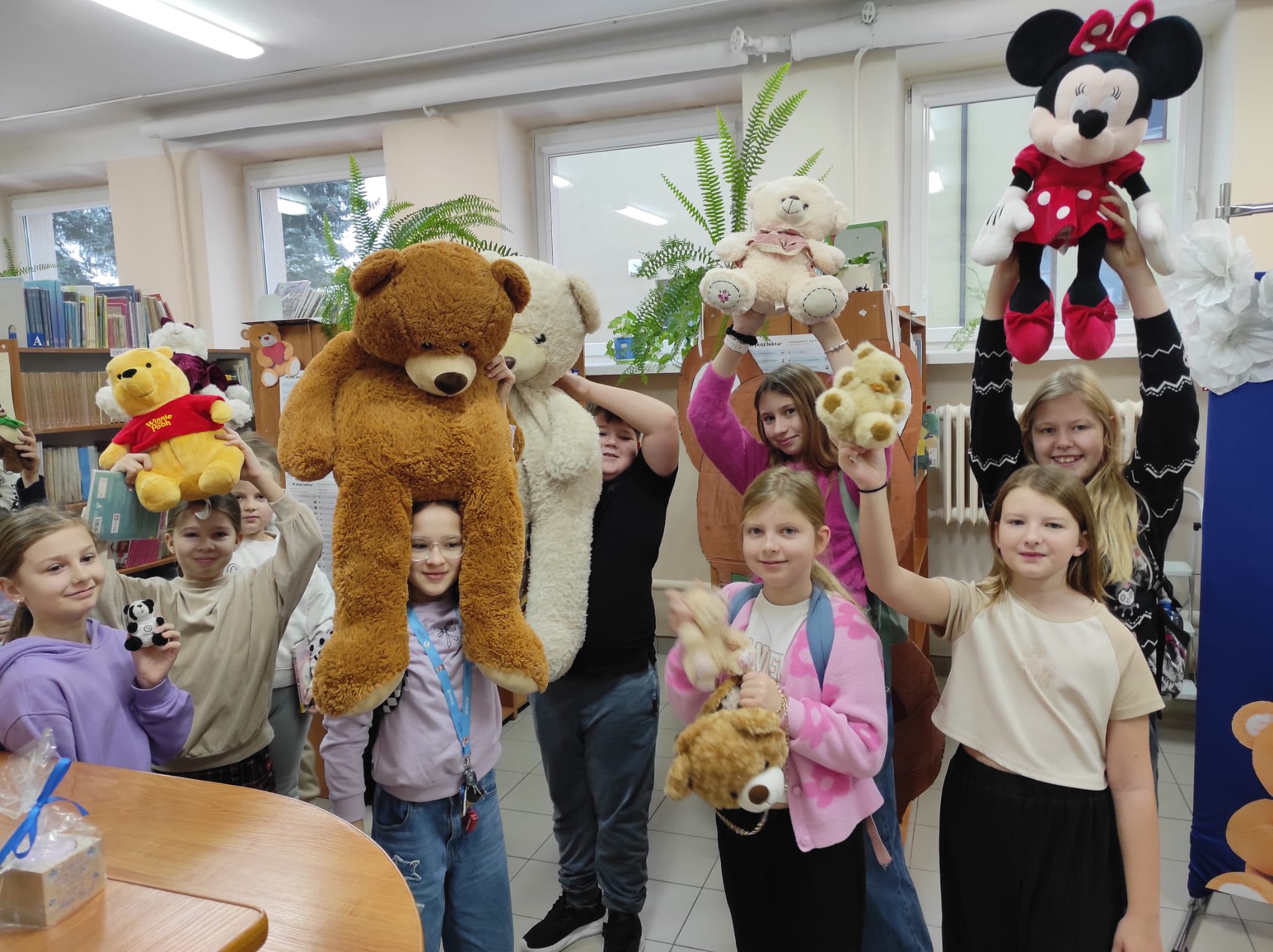 „Taki dzień się zdarza raz…” – jak mówią słowa znanej piosenki, a 25 listopada w naszej szkolnej bibliotece mogliśmy poczuć wyjątkową magię tego dnia. Z okazji Dnia Pluszowego Misia bibliotekę odwiedziło wielu uczniów, którzy z radością prezentowali swoje ukochane misie. Wielu uczniów wybierało książki do wypożyczenia, a pluszaki z uśmiechem „pomagały” w odnajdywaniu najciekawszych tytułów. W bibliotece panowała ciepła, radosna atmosfera, pełna śmiechu i serdeczności. Najmłodsi pokazywali swoje ulubione misie, które dodały temu dniu wyjątkowego uroku. Wszyscy, którzy przyszli z misiem i wypożyczyli książkę, otrzymali upominki-niespodzianki. To był dzień pełen uśmiechów, zabawy i miłych chwil – a biblioteka stała się na moment najbardziej przytulnym miejscem w szkole.
