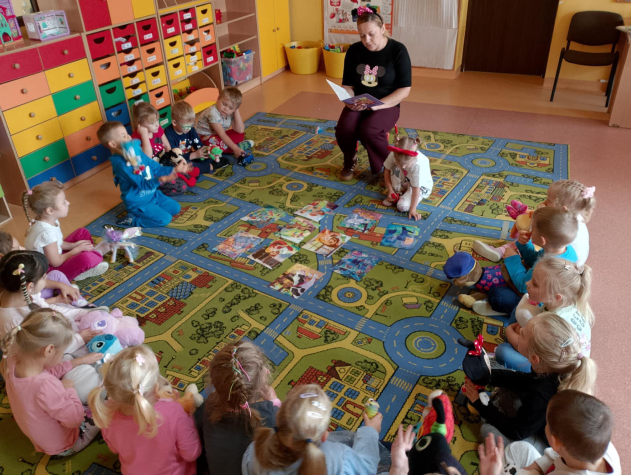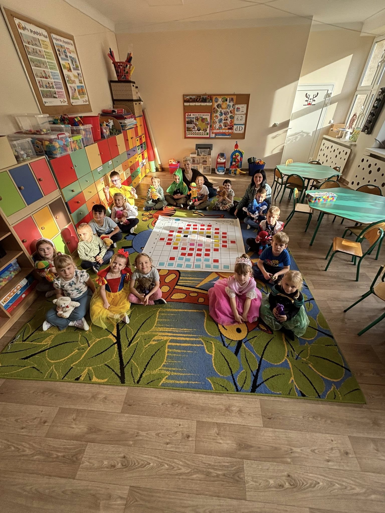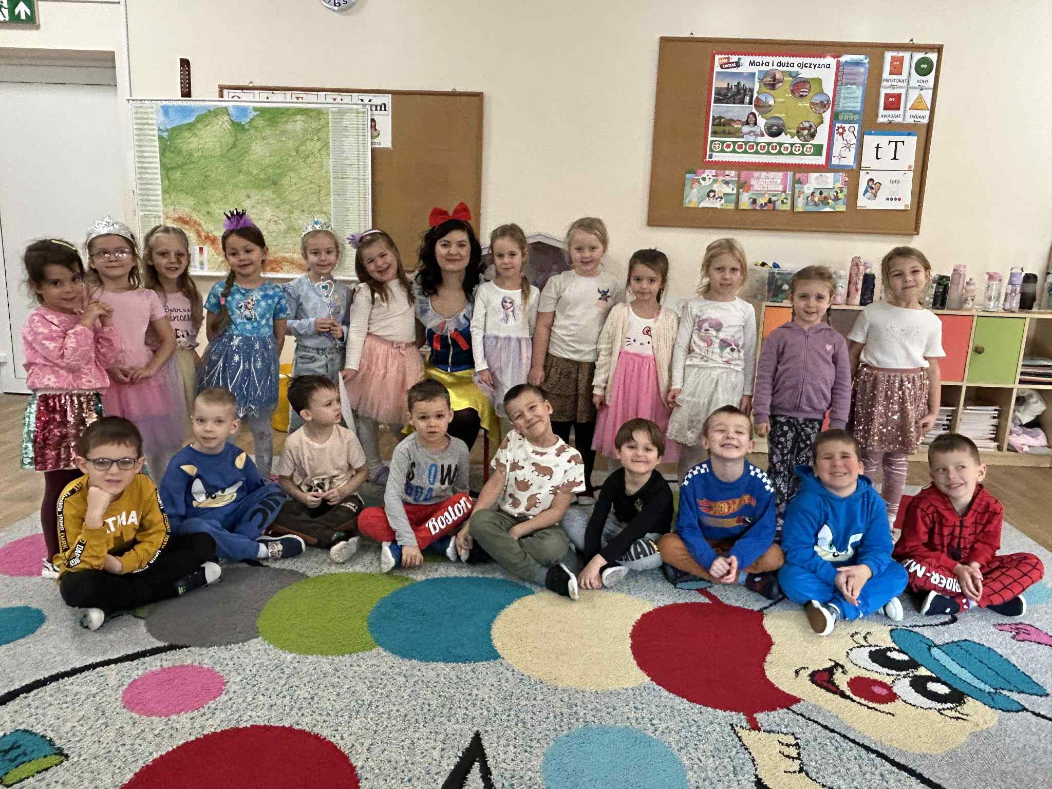 5 listopada obchodziliśmy w przedszkolu Dzień Postaci z Bajek, święto pełne kolorów, uśmiechu i magicznej atmosfery. Dzieci tego dnia miały na sobie elementy ubioru nawiązujące do ulubionych bohaterów bajkowych, a także opaski i maskotki, które wprowadziły wszystkich w bajkowy nastrój. Podczas wspólnej zabawy przedszkolaki rozwiązywały zagadki, rozpoznawały bajkowe postacie i uczestniczyły w zabawach tematycznych związanych ze świętem. Był to dzień pełen radości, śmiechu i bajkowych przygód, który na długo pozostanie w pamięci naszych przedszkolaków!