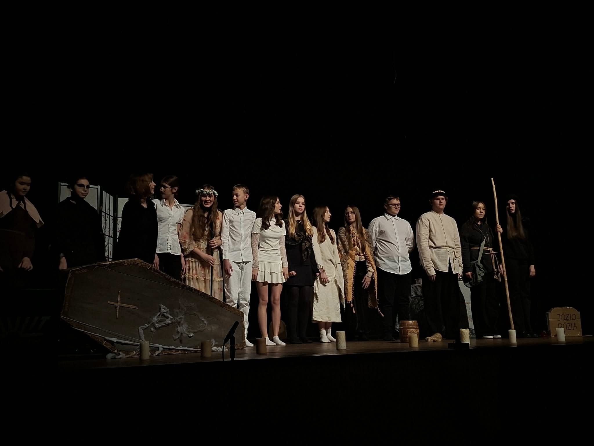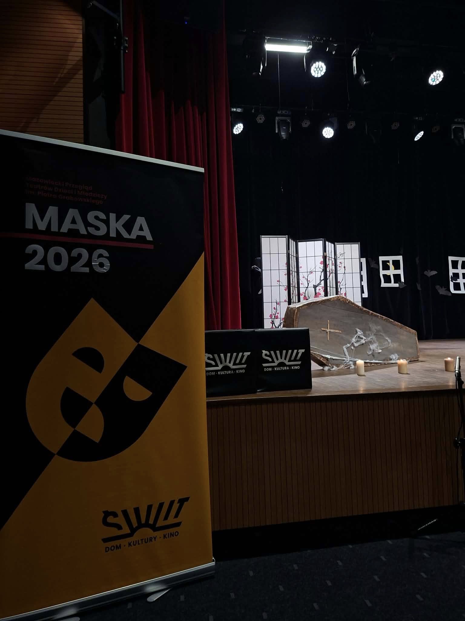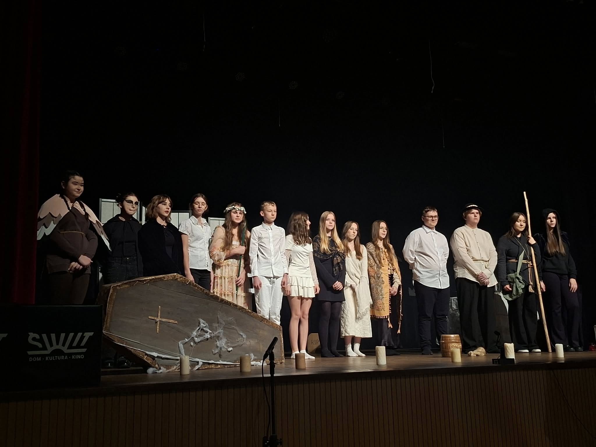 3 marca 2026r. szkolne koło teatralne pod opieką p. Ewy Kuczalskiej i p. Moniki Brzozowskiej wzięło udział w XXXI Mazowieckim Przeglądzie Teatrów Dzieci i Młodzieży MASKA 2026 w Domu Kultury Świt w Warszawie, prezentując spektakl na podstawie dramatu Adama Mickiewicza „Dziady cz. II”.
