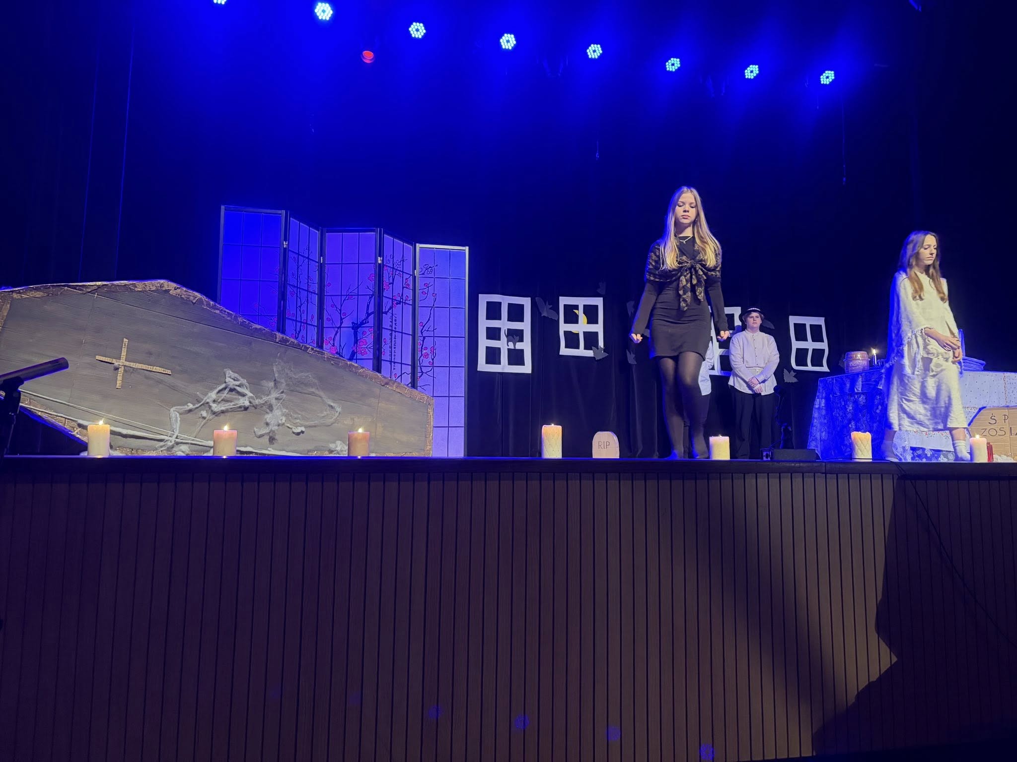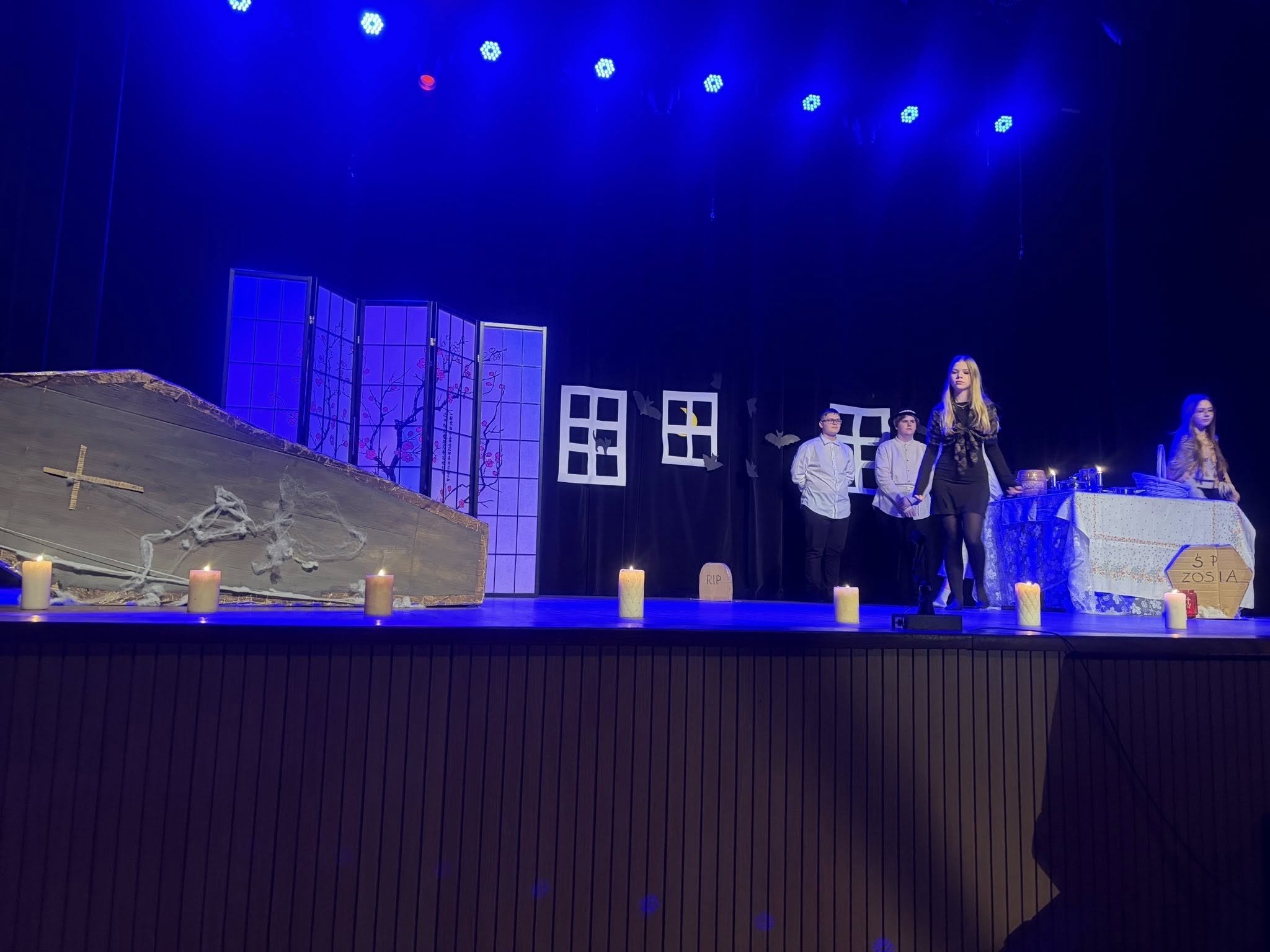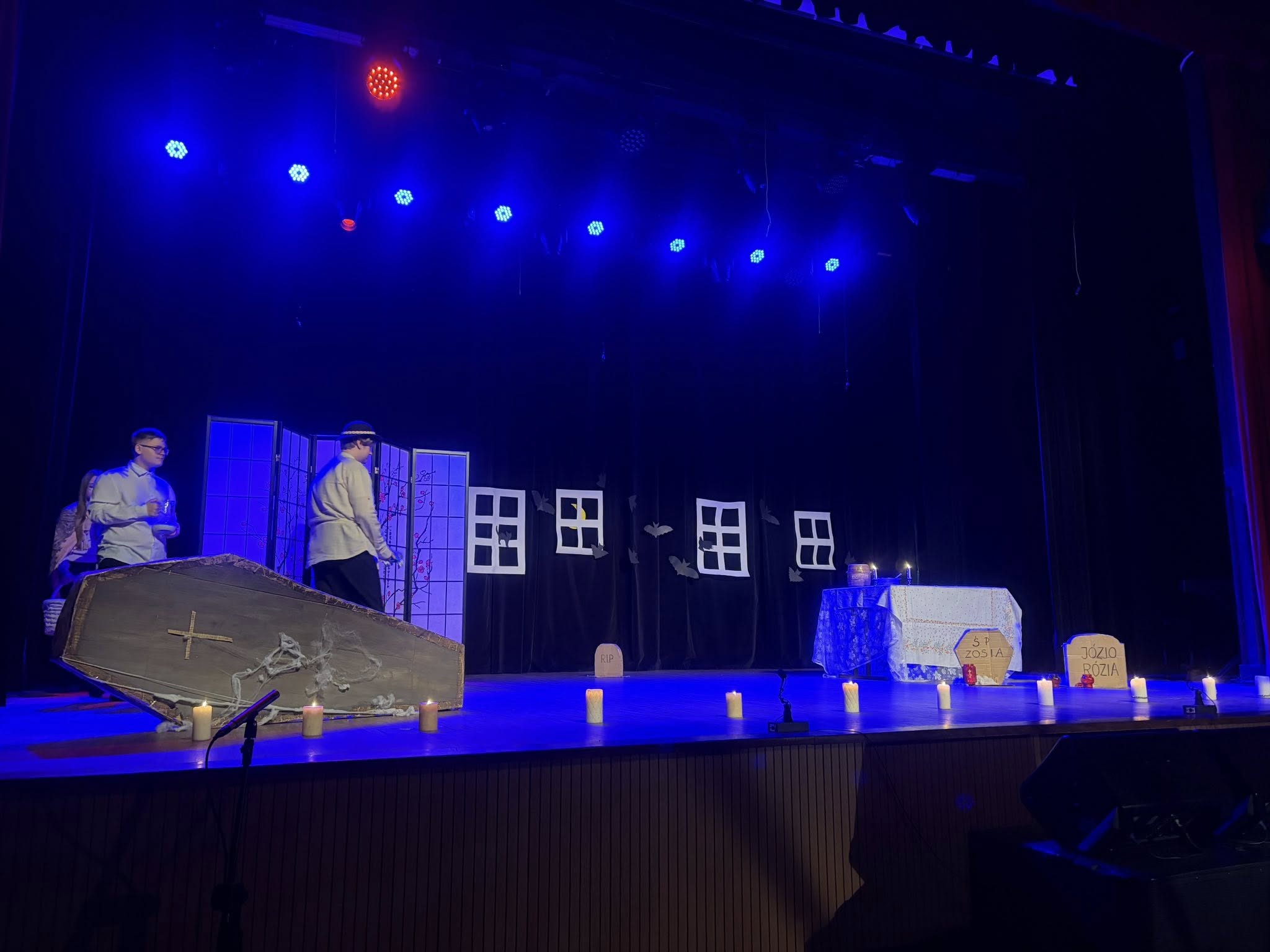 3 marca 2026r. szkolne koło teatralne pod opieką p. Ewy Kuczalskiej i p. Moniki Brzozowskiej wzięło udział w XXXI Mazowieckim Przeglądzie Teatrów Dzieci i Młodzieży MASKA 2026 w Domu Kultury Świt w Warszawie, prezentując spektakl na podstawie dramatu Adama Mickiewicza „Dziady cz. II”.