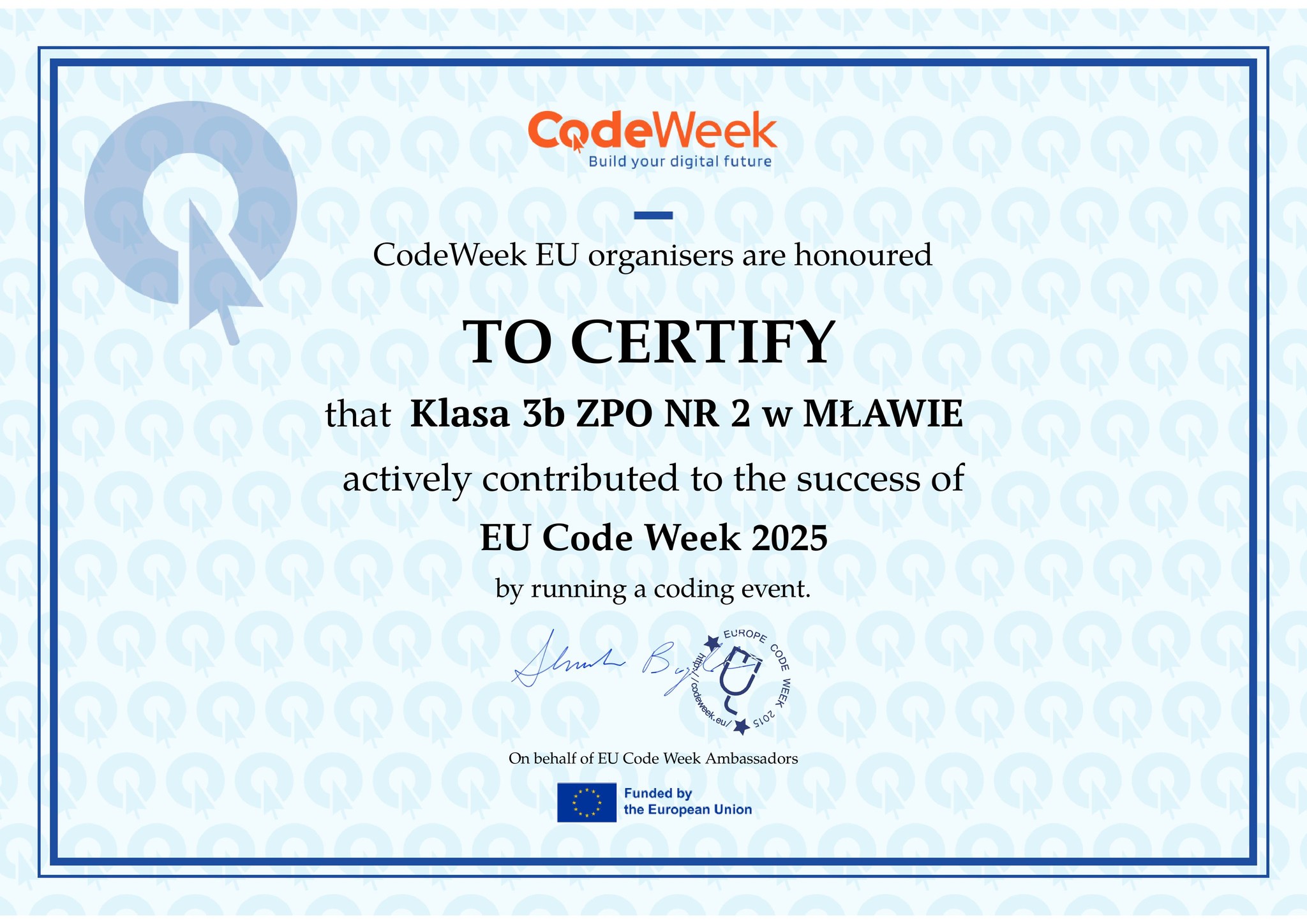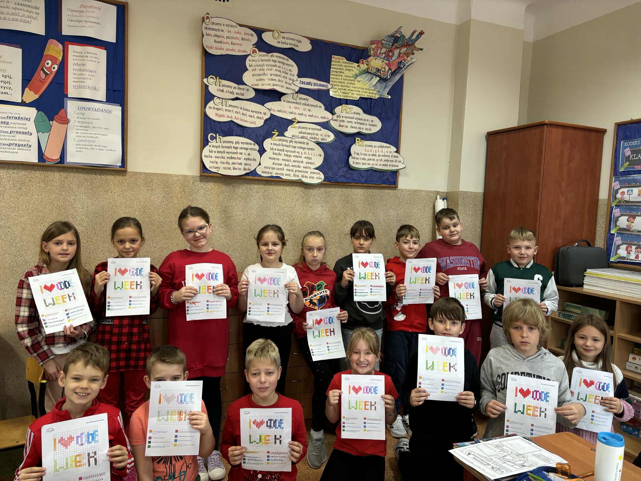 W ramach realizacji zadań Międzynarodowego Programu „Kodowanie na dywanie” uczniowie klasy 3b włączyli się w obchody Europejskiego Tygodnia Kodowania (CodeWeek 2025)!