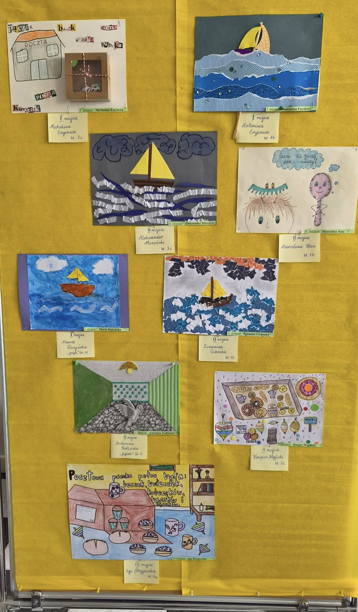 Prace konkursowe można obejrzeć w mini galerii w holu szkoły. Będą one również wystawione kolejno przy głównym wejściu do szkoły i w przedszkolu!