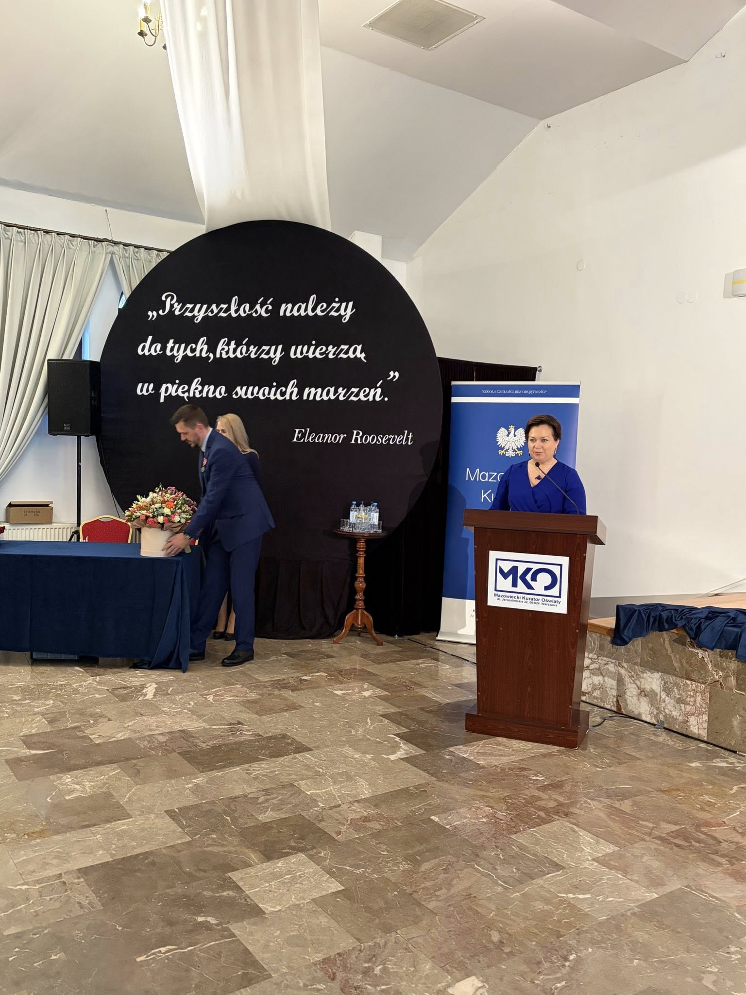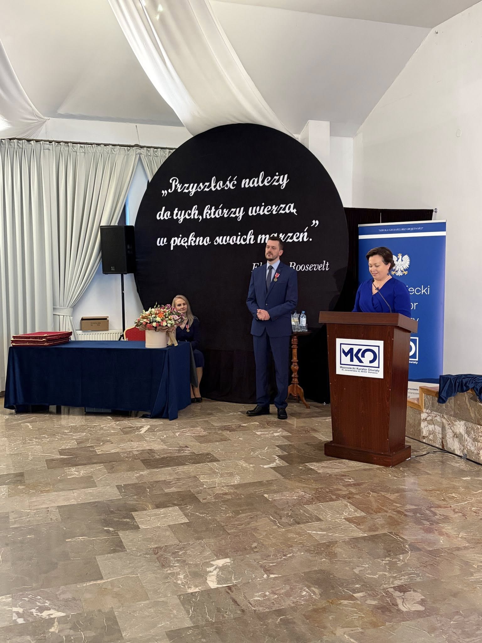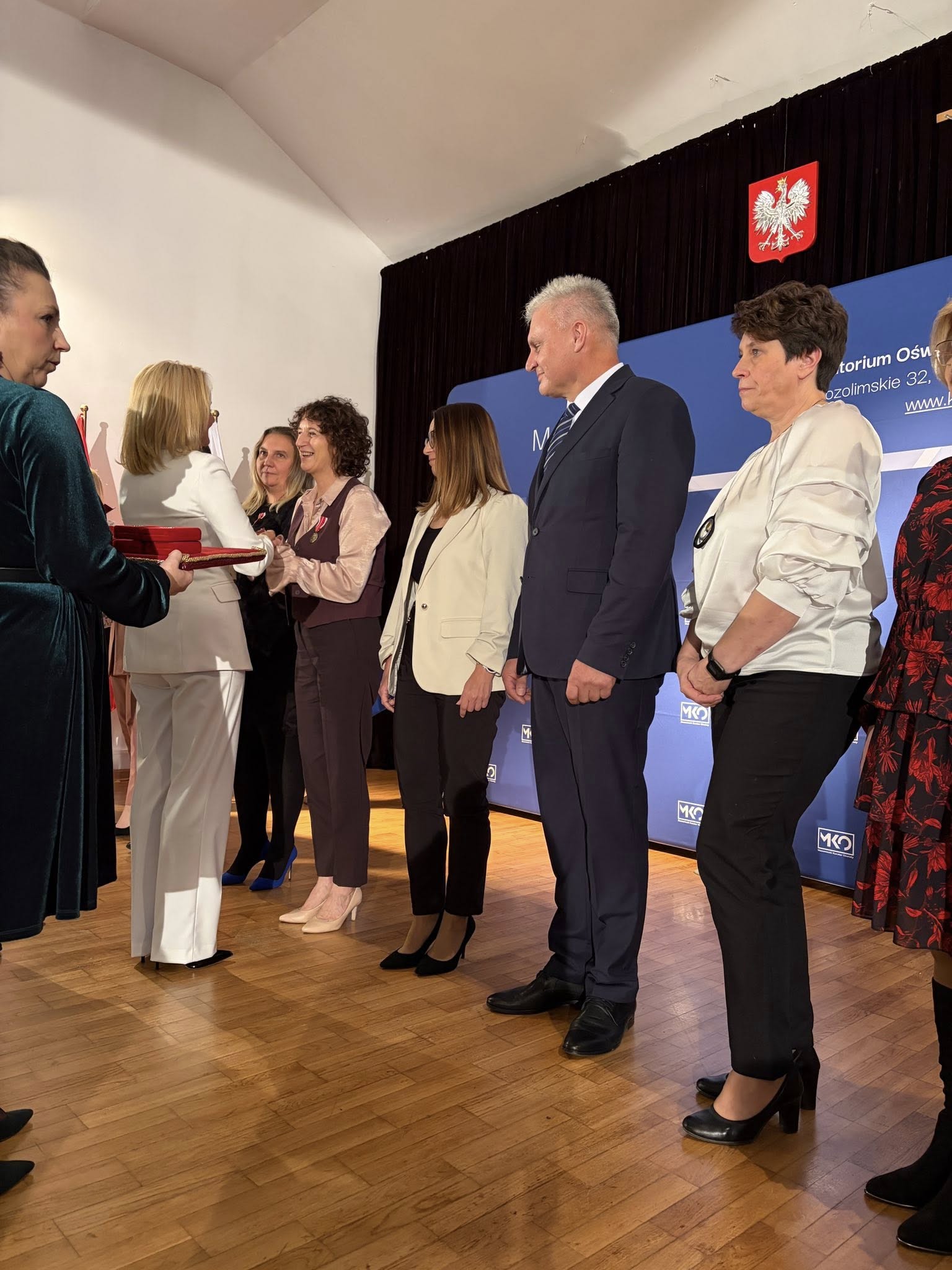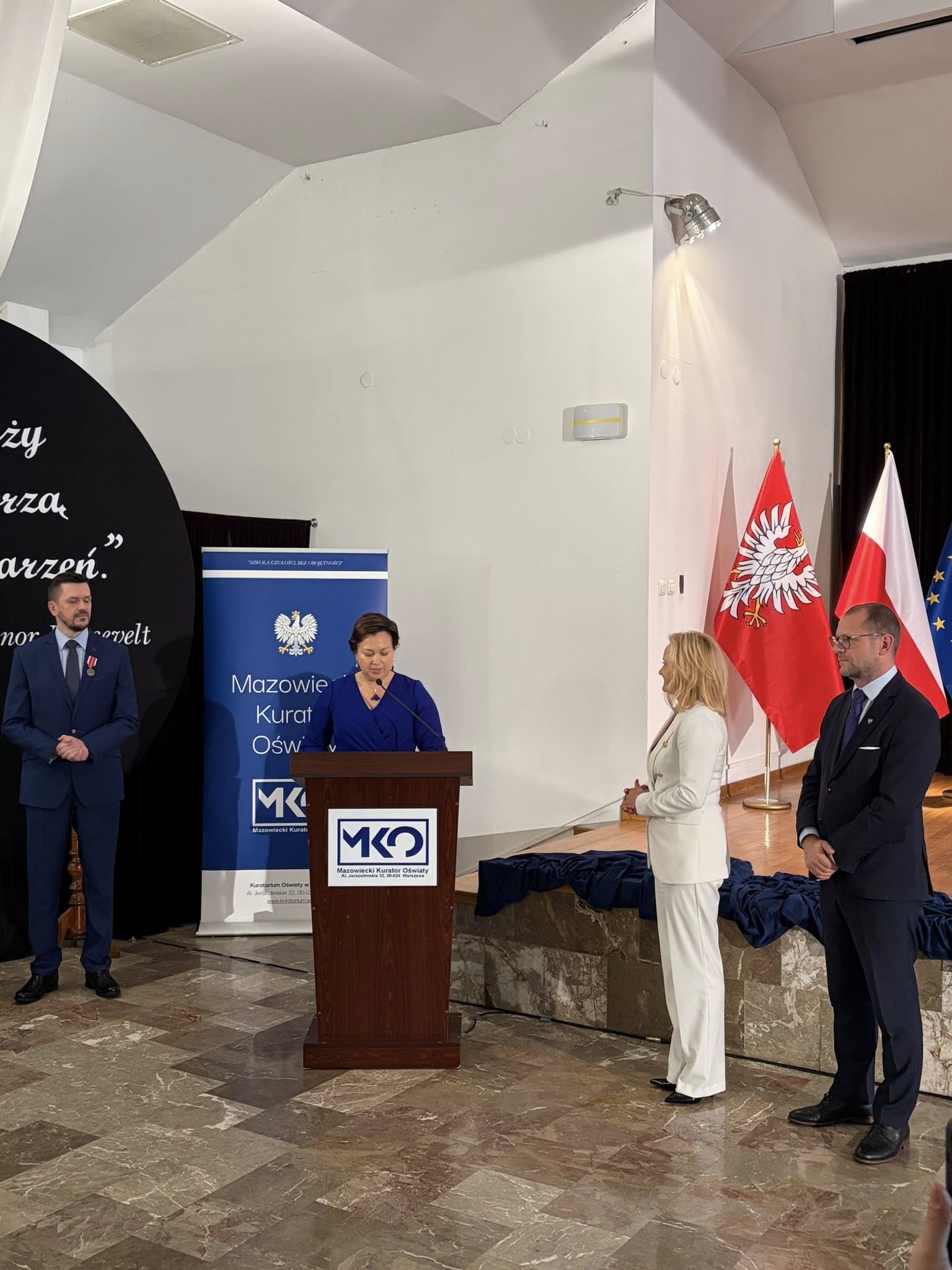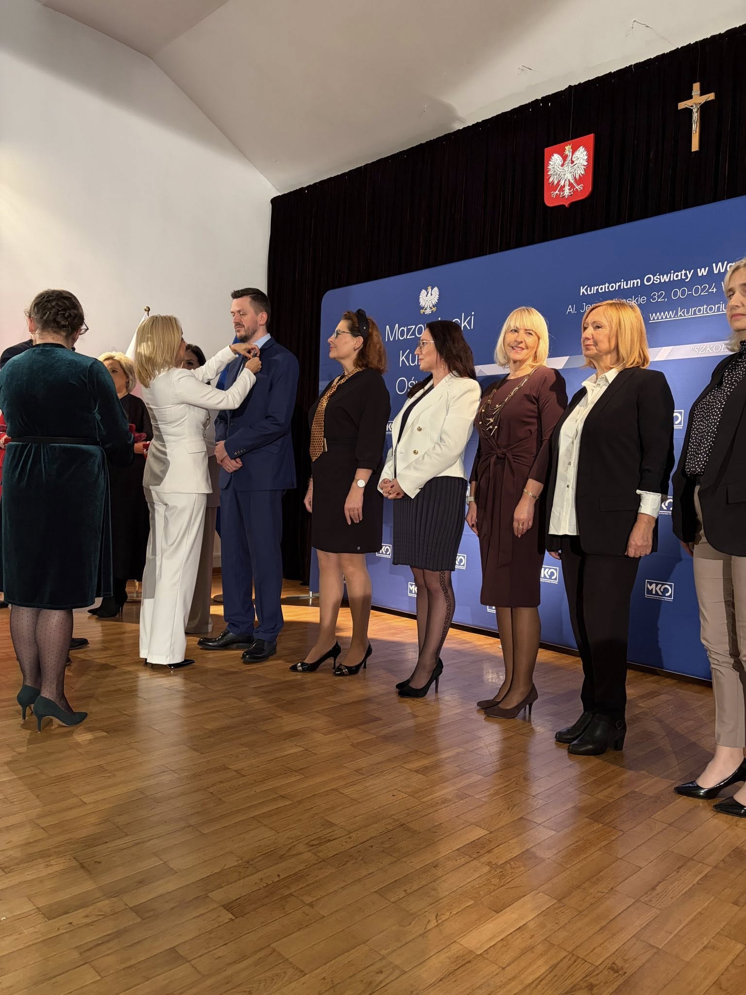Mazowiecka Kurator Oświaty Pani Wioletta Krzyżanowska dokonała wręczenia odznaczeń.