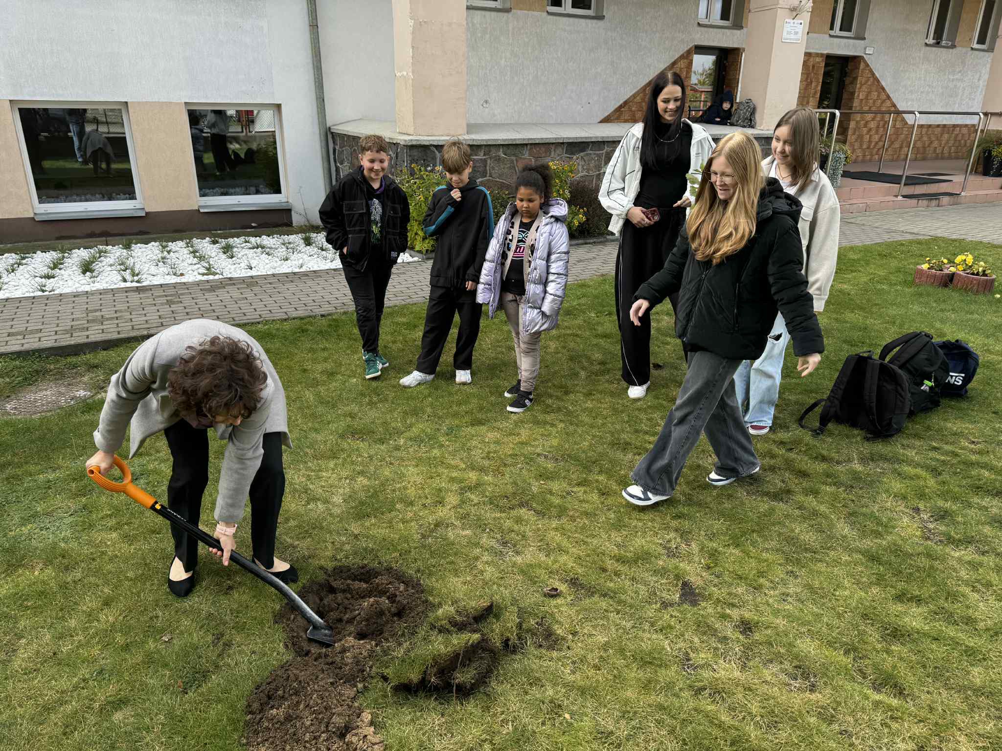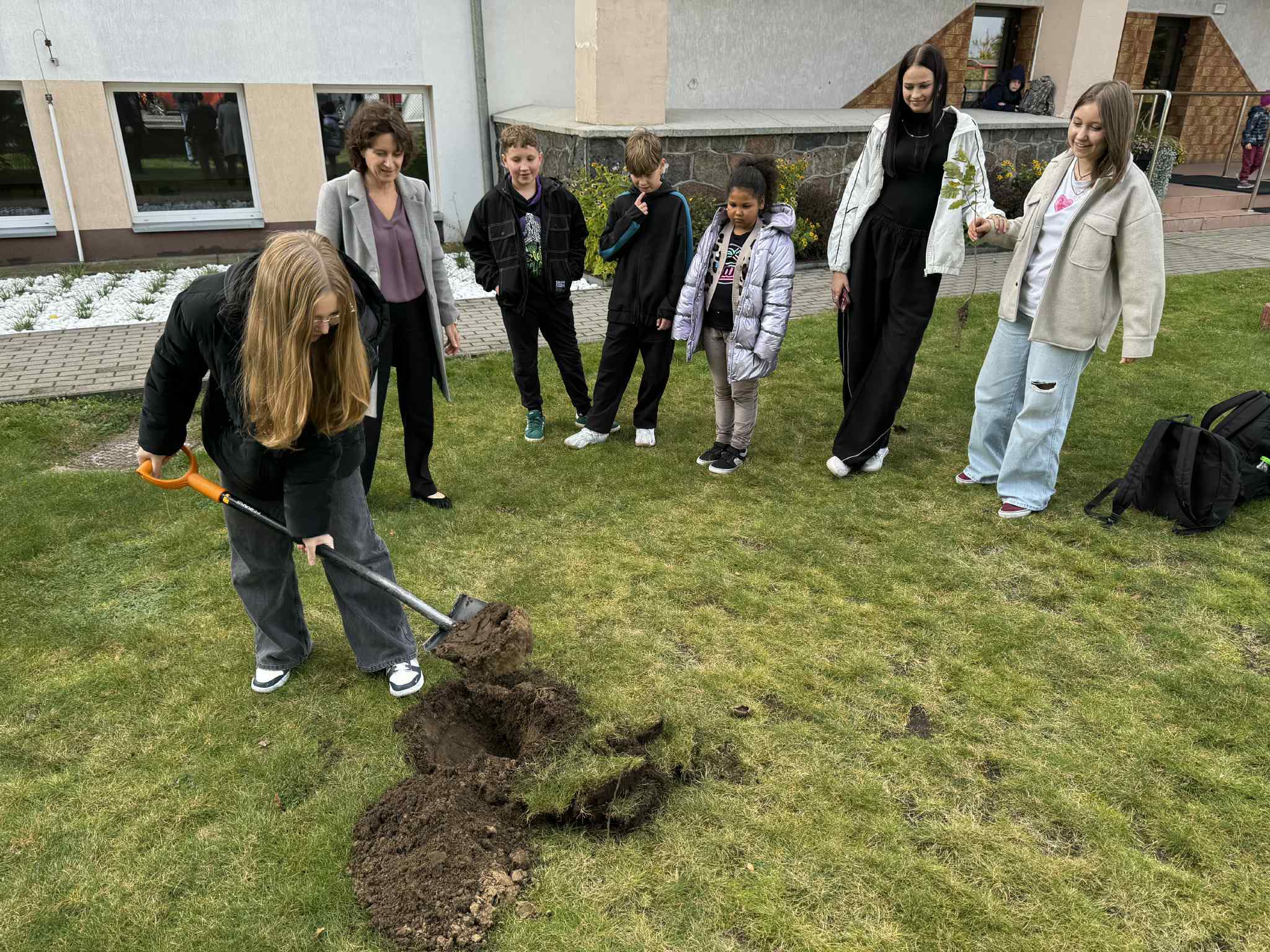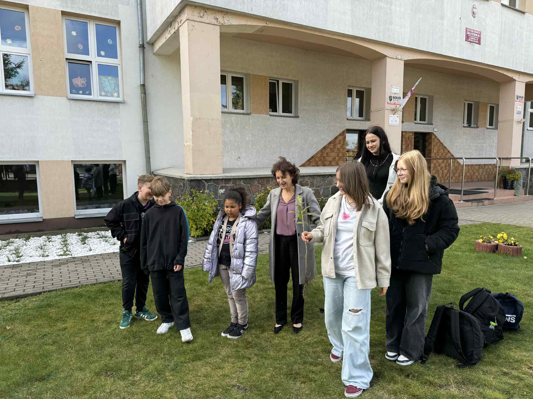 Otrzymaliśmy również sadzonkę dębu, który został posadzony na szkolnym terenie.
