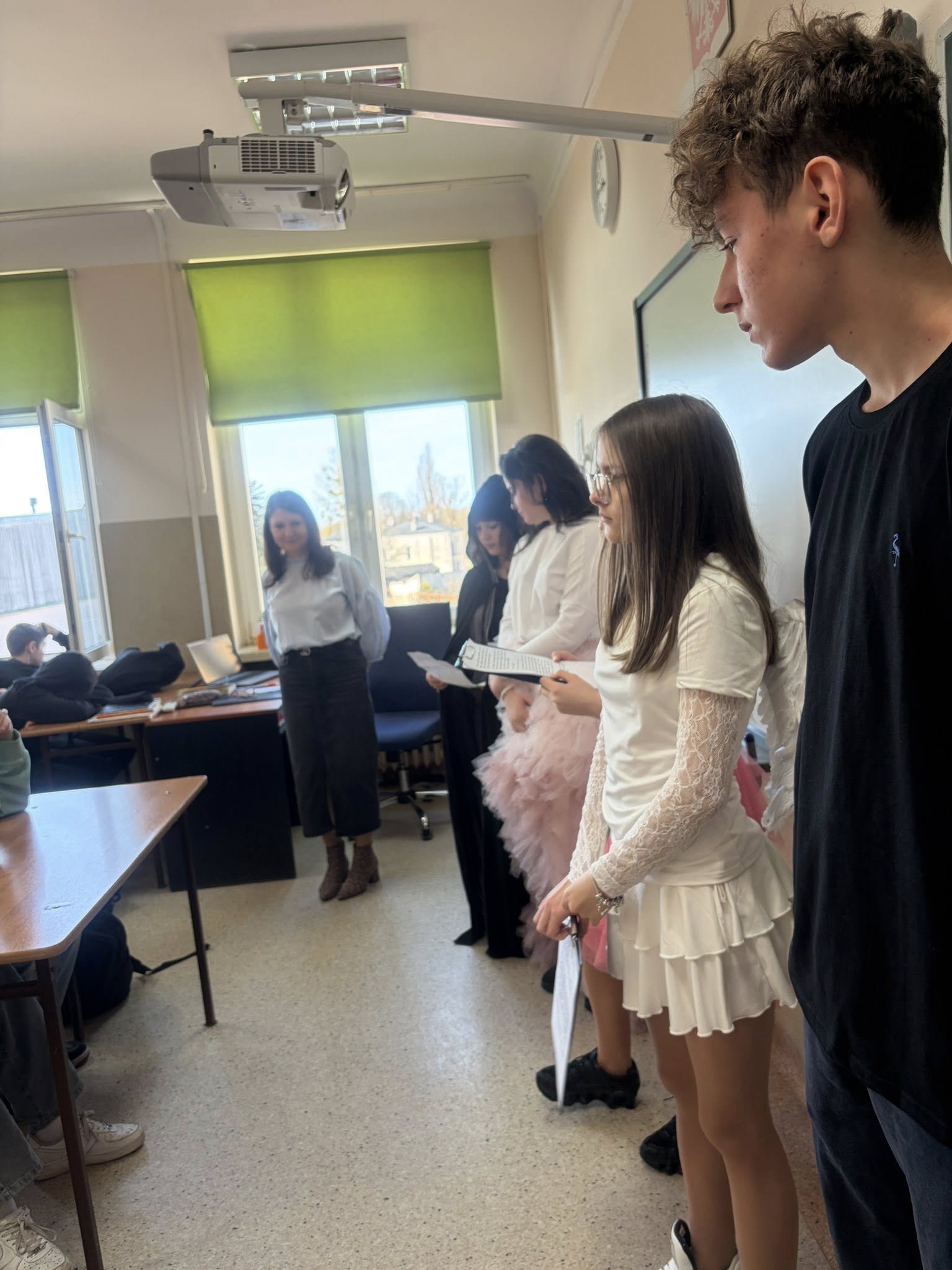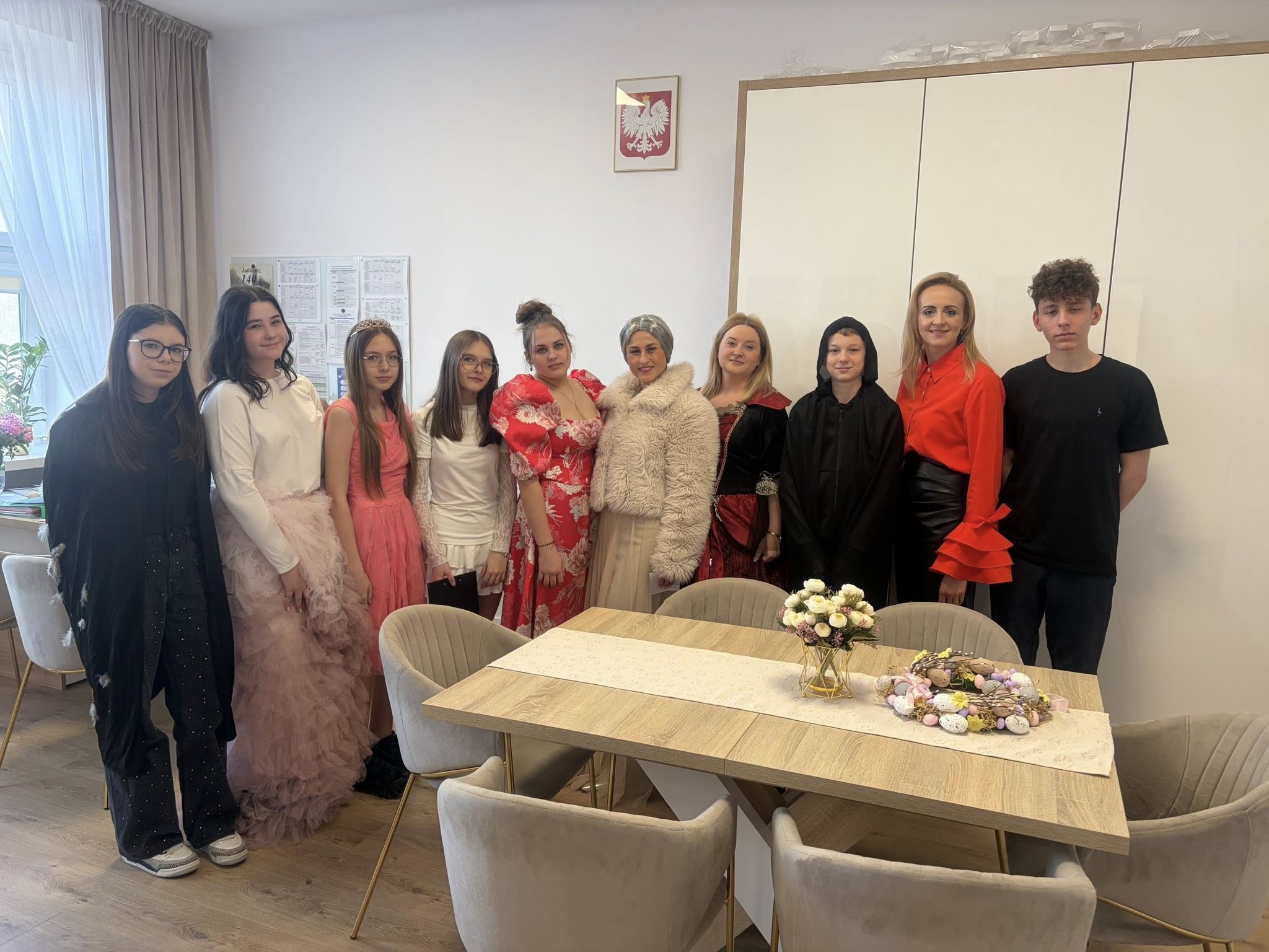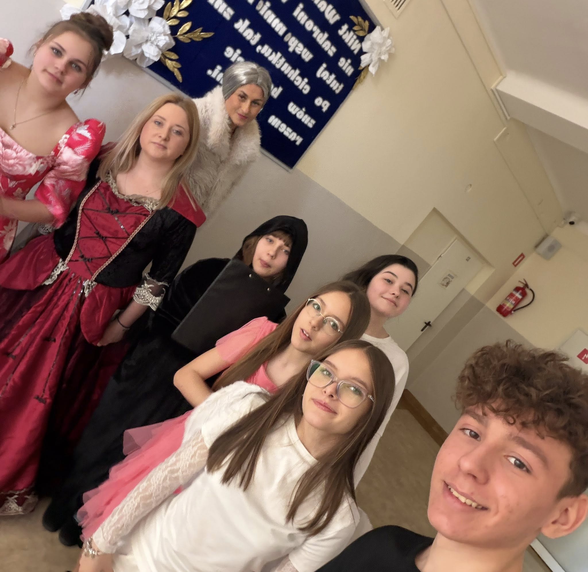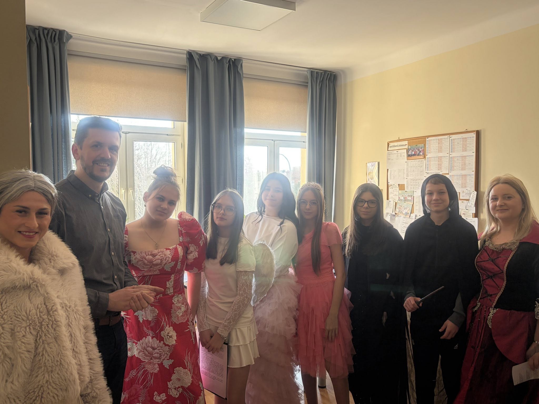 Dlatego uczniowie koła teatralnego zaglądając dziś do sal szkolnych, starali się pokazać, że teatr to cudowne miejsce...dla każdego....nawet dorosłych pań, które na co dzień odgrywają w tej szkole zupełnie inne ROLE