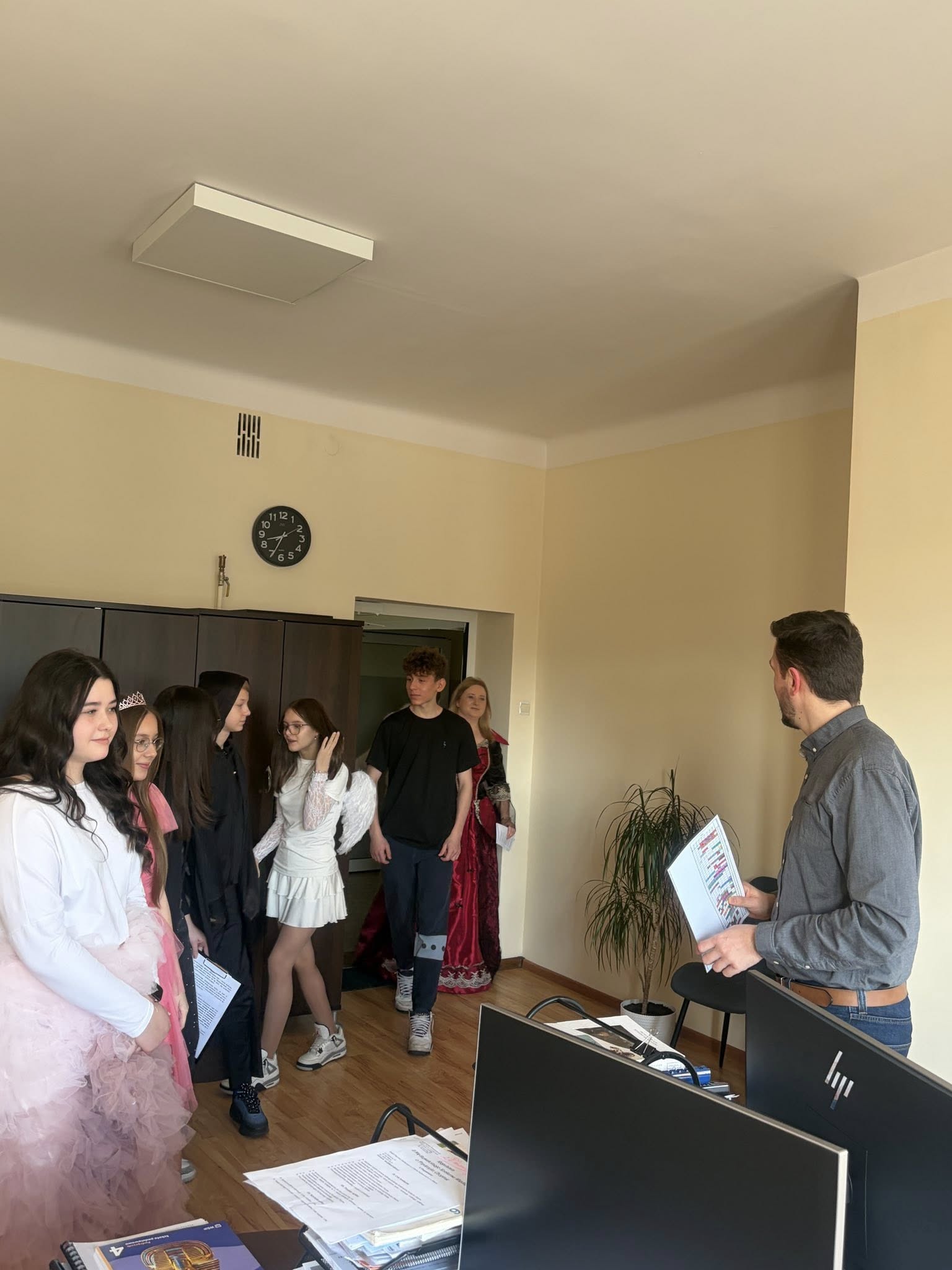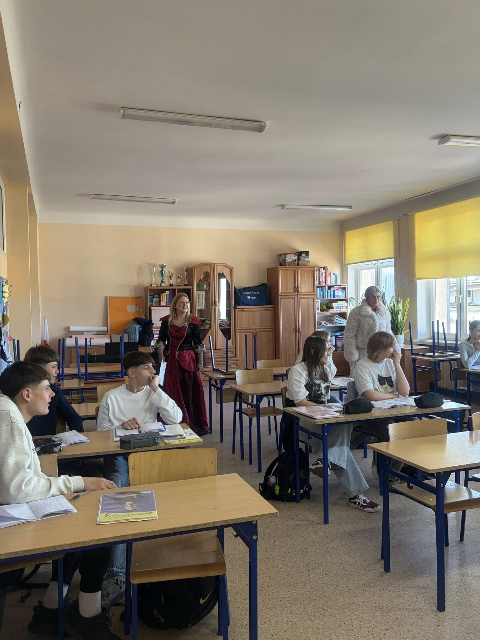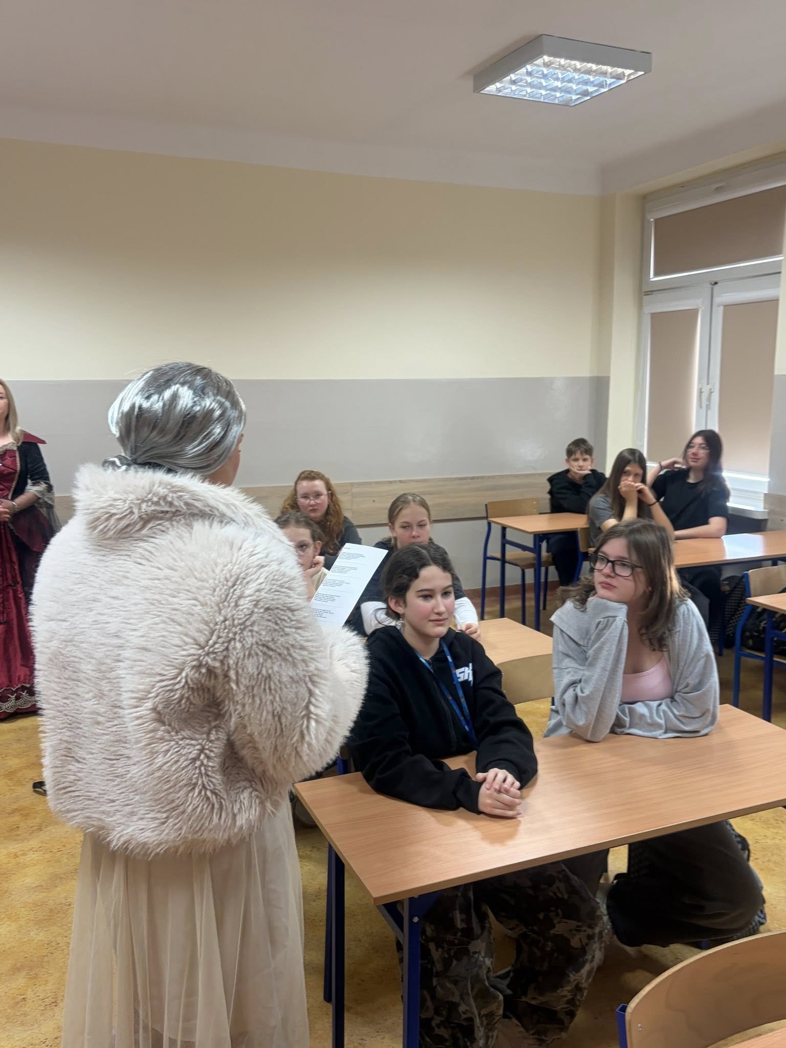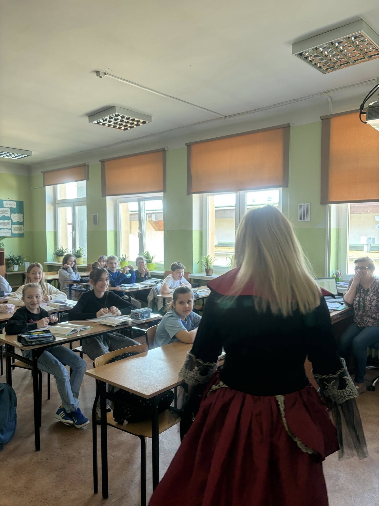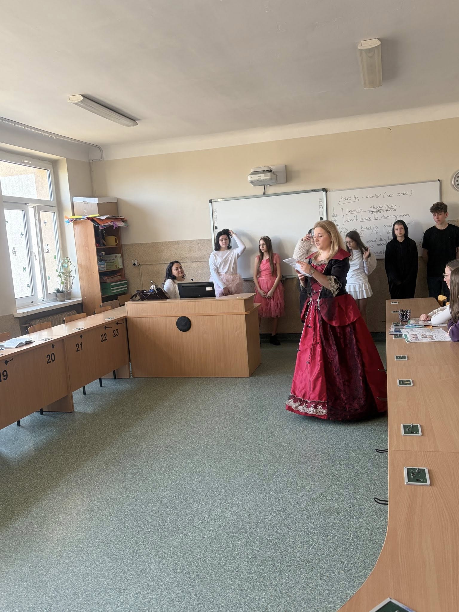 Dlatego uczniowie koła teatralnego zaglądając dziś do sal szkolnych, starali się pokazać, że teatr to cudowne miejsce...dla każdego....nawet dorosłych pań, które na co dzień odgrywają w tej szkole zupełnie inne ROLE