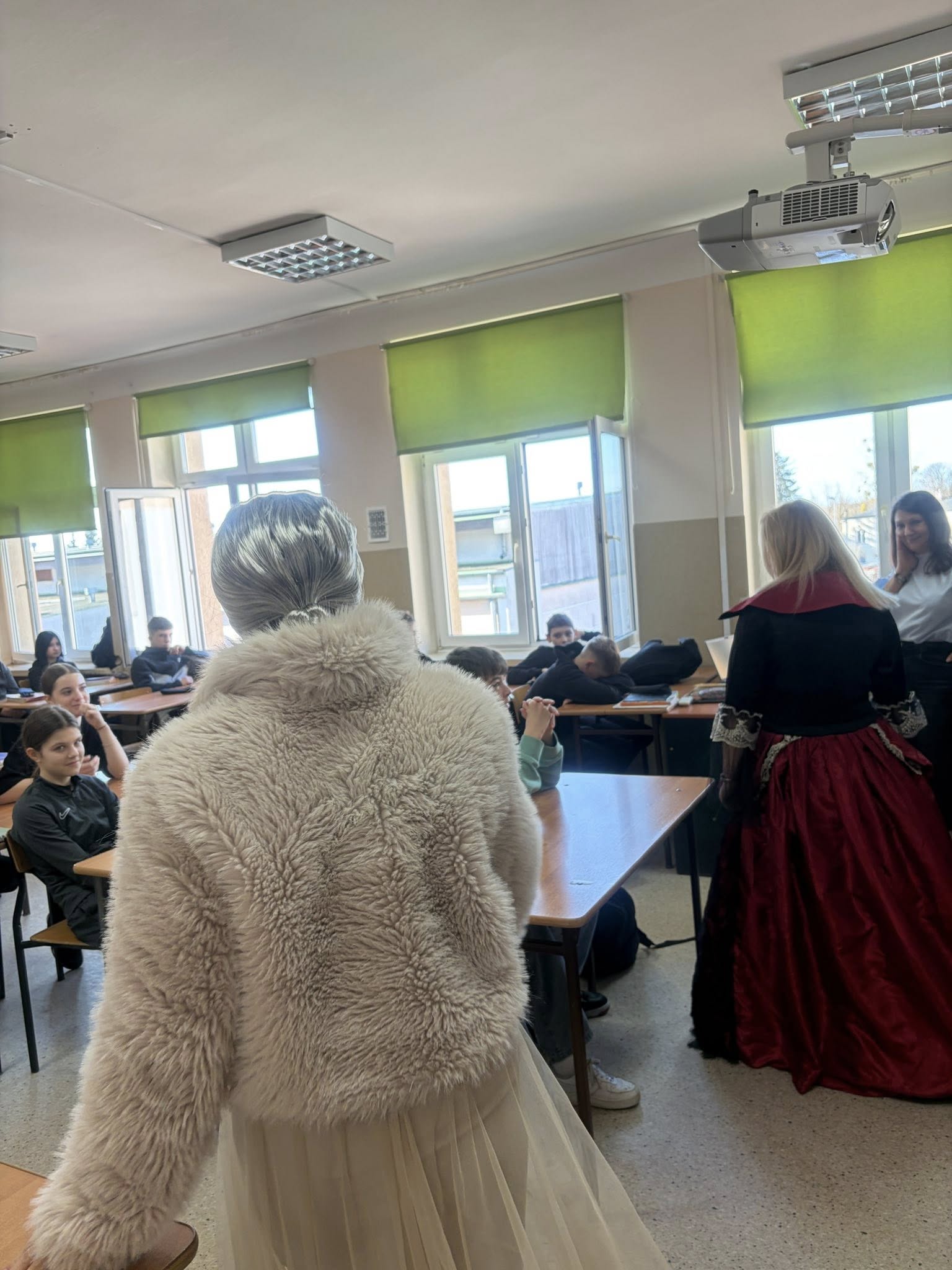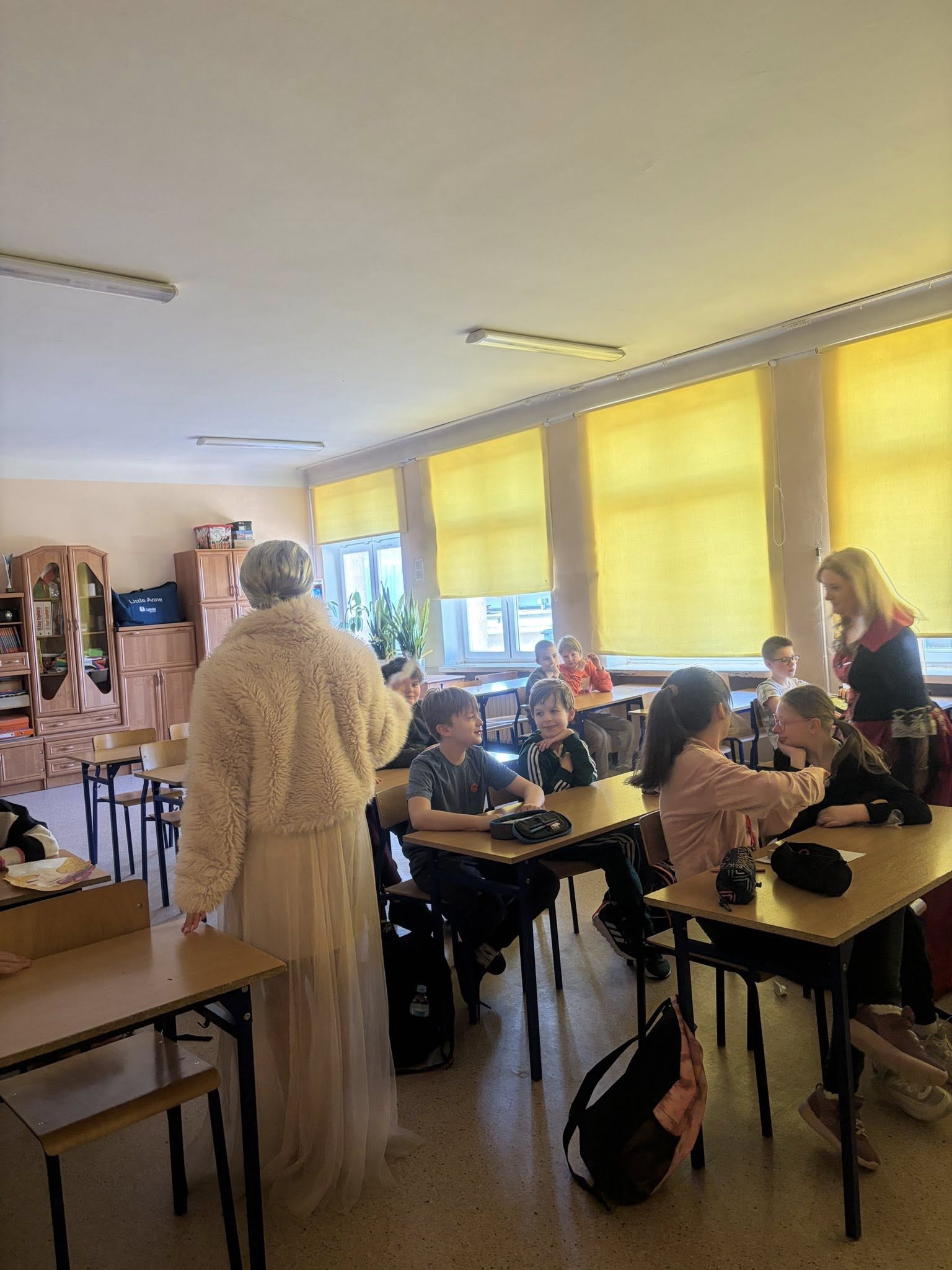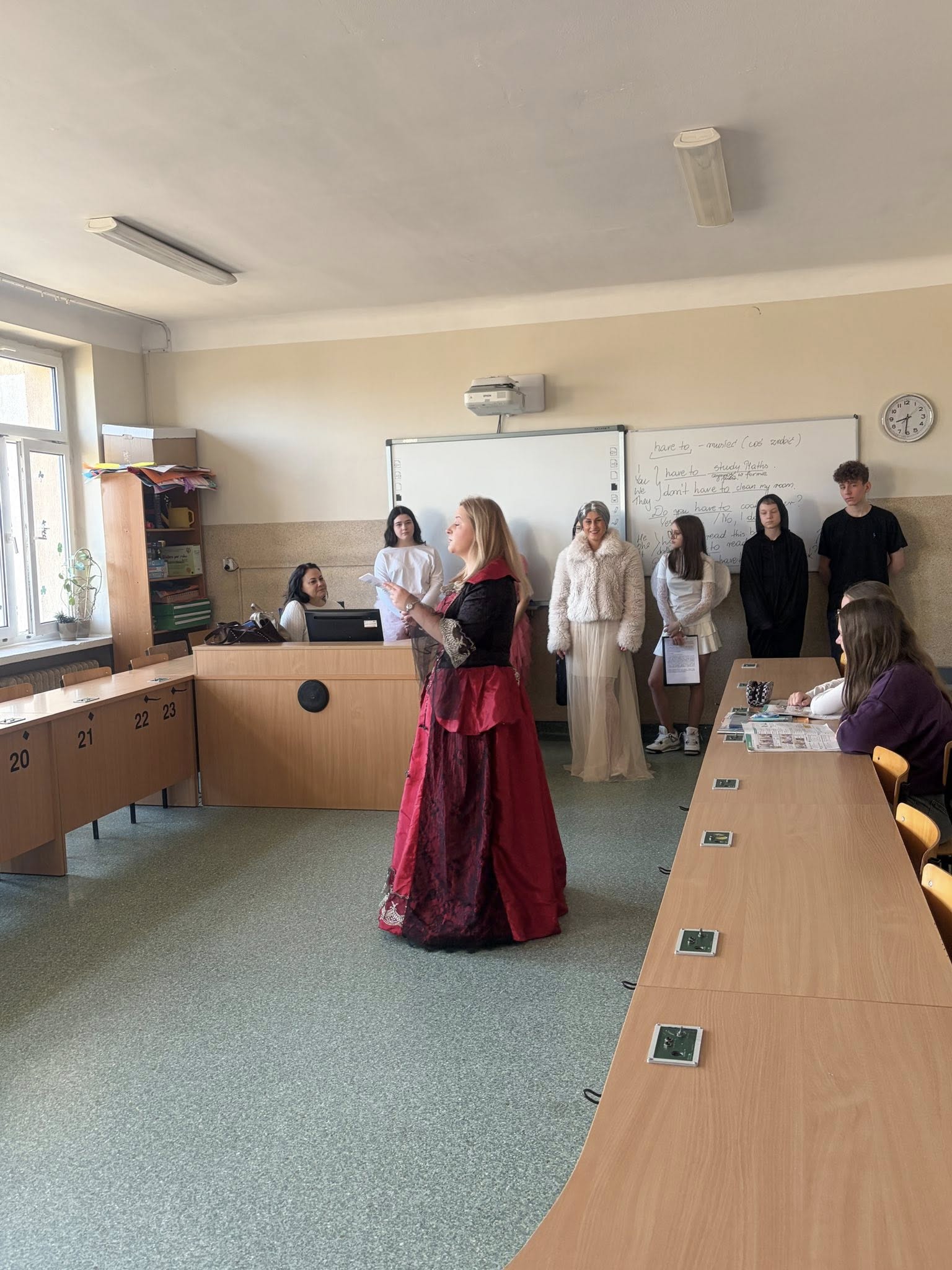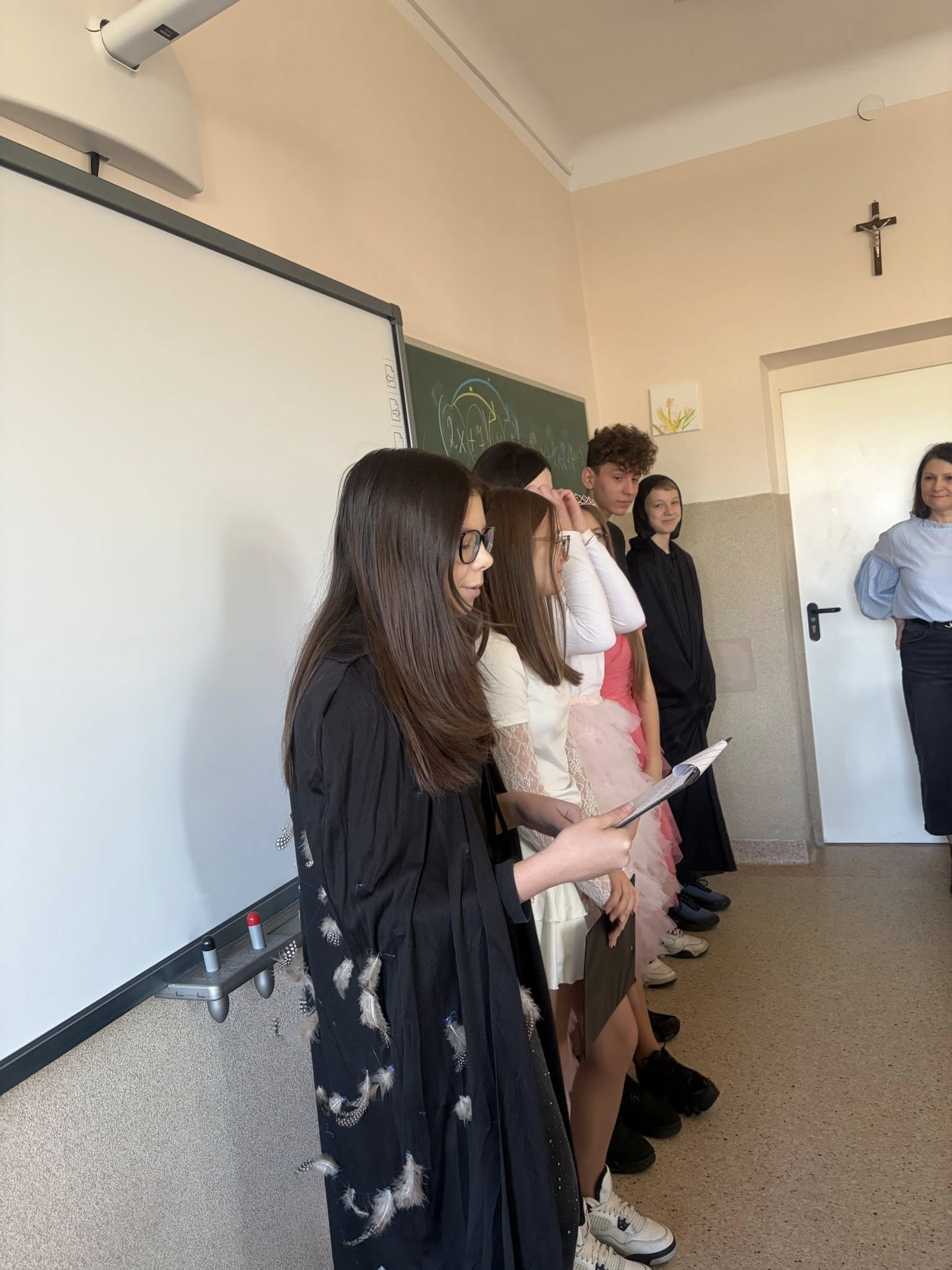 Dlatego uczniowie koła teatralnego zaglądając dziś do sal szkolnych, starali się pokazać, że teatr to cudowne miejsce...dla każdego....nawet dorosłych pań, które na co dzień odgrywają w tej szkole zupełnie inne ROLE