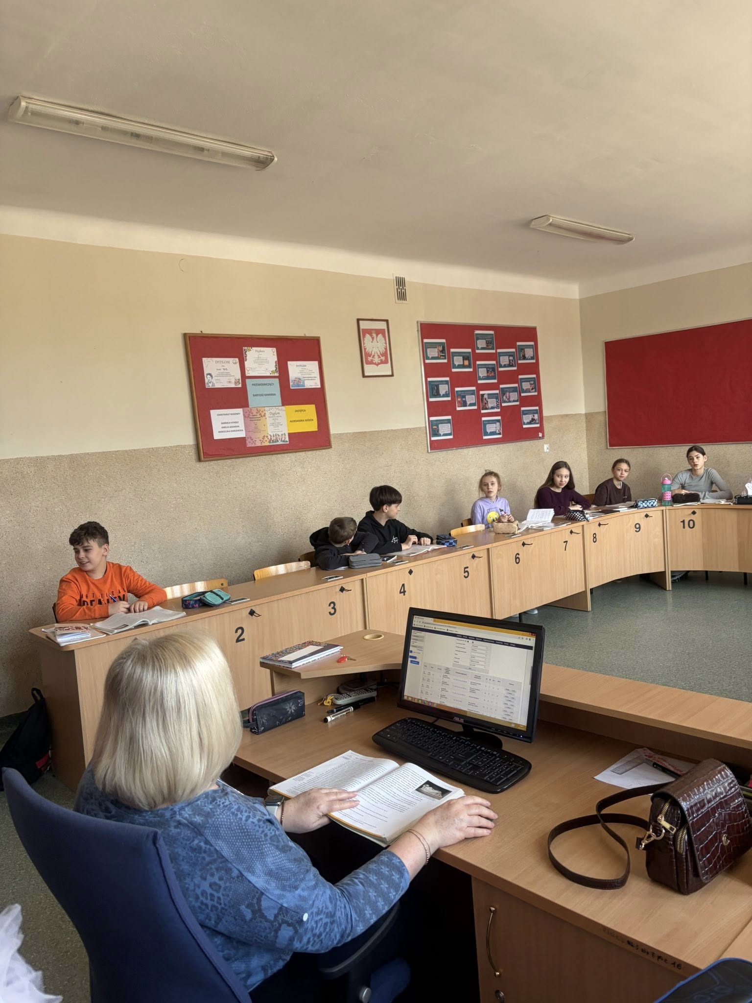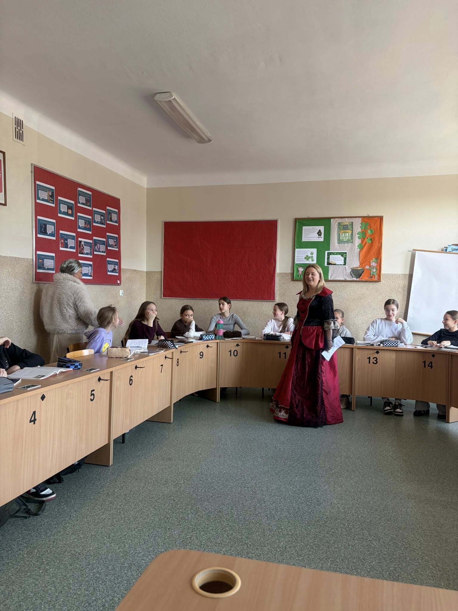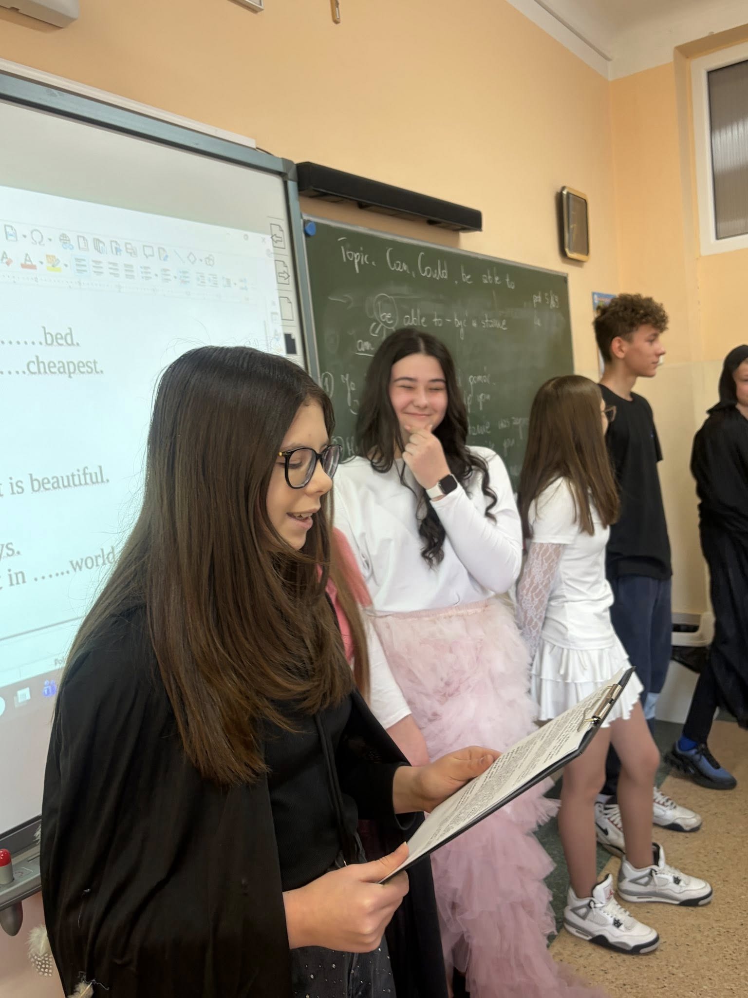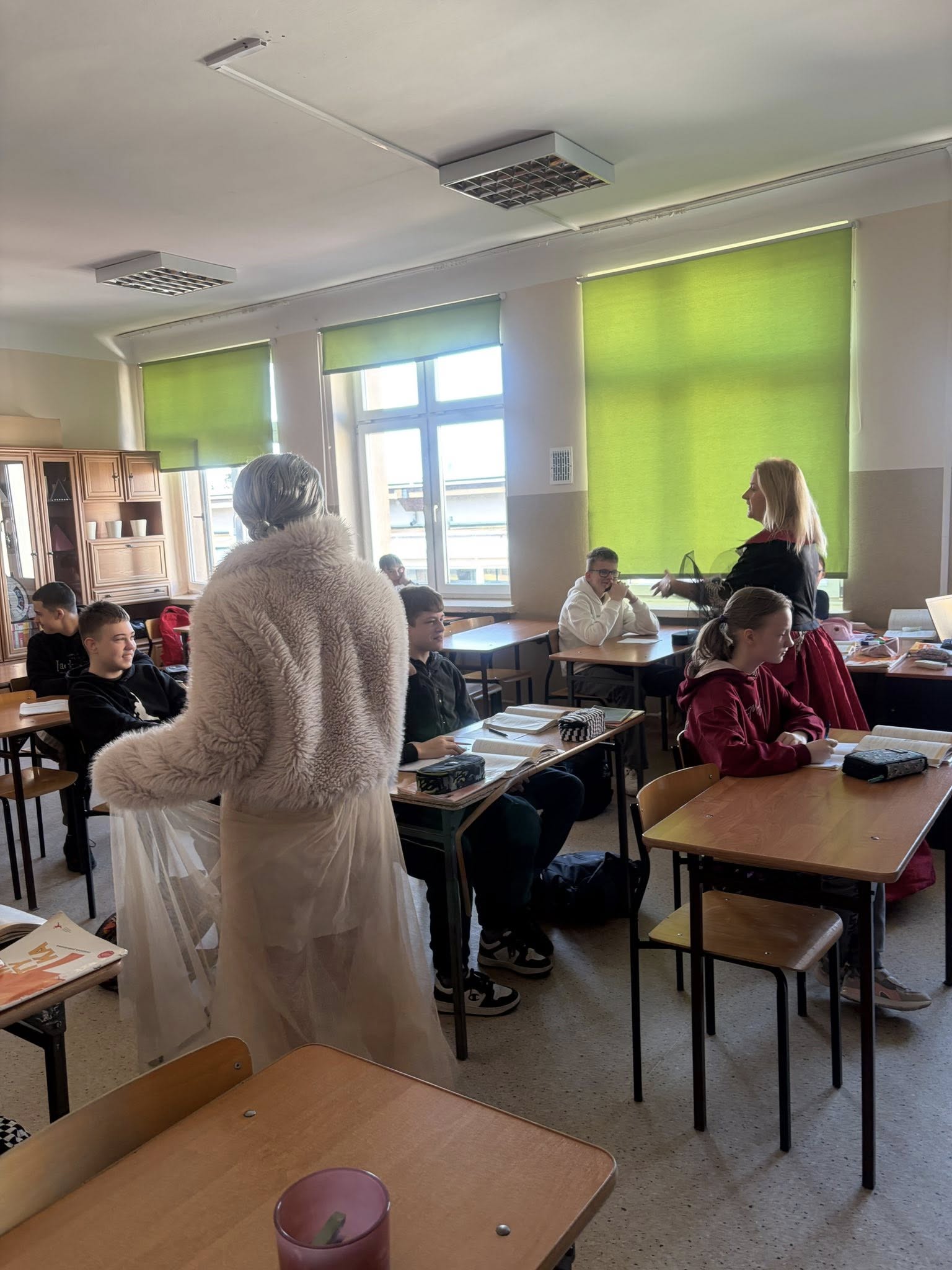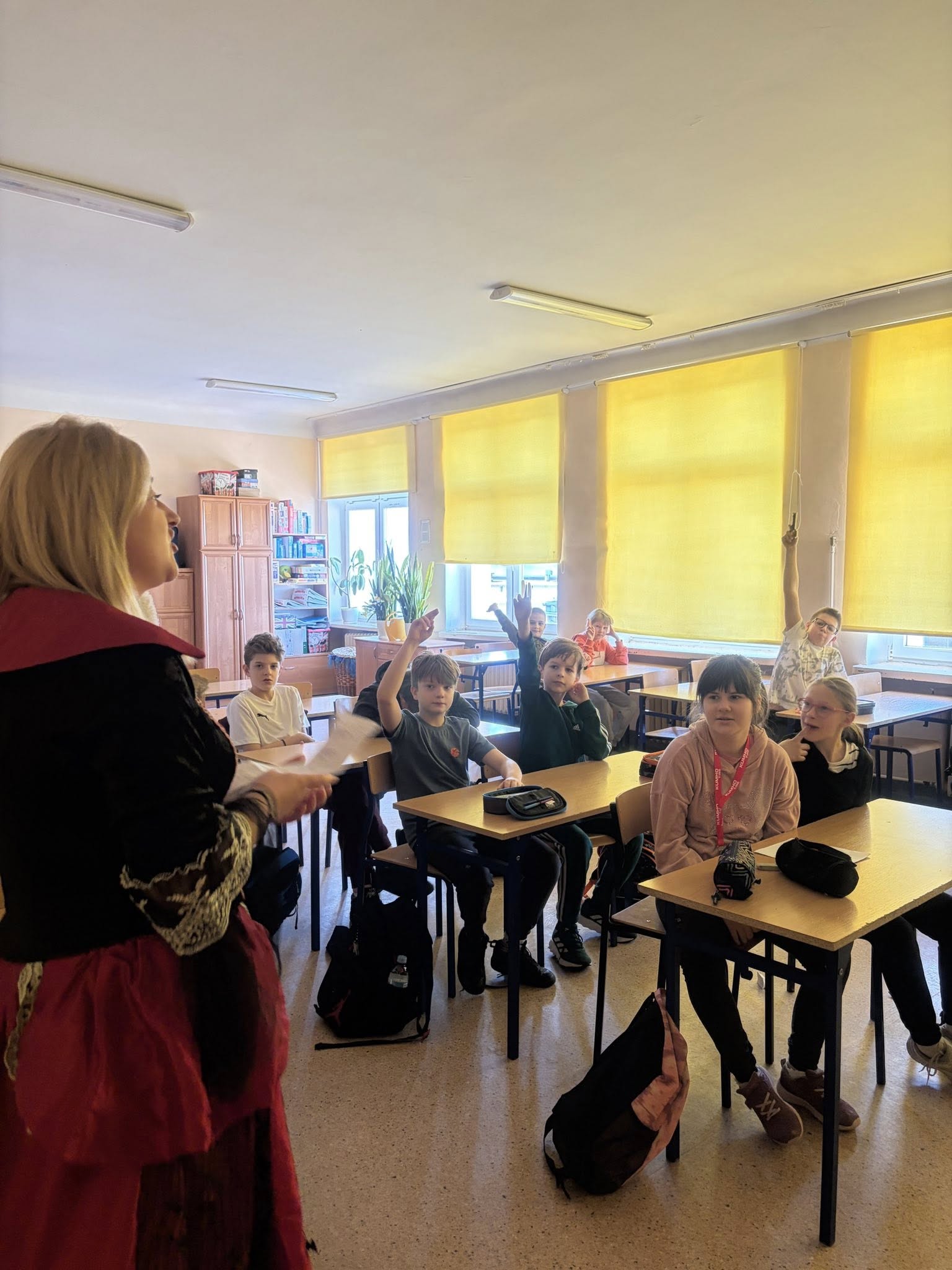 Dlatego uczniowie koła teatralnego zaglądając dziś do sal szkolnych, starali się pokazać, że teatr to cudowne miejsce...dla każdego....nawet dorosłych pań, które na co dzień odgrywają w tej szkole zupełnie inne ROLE