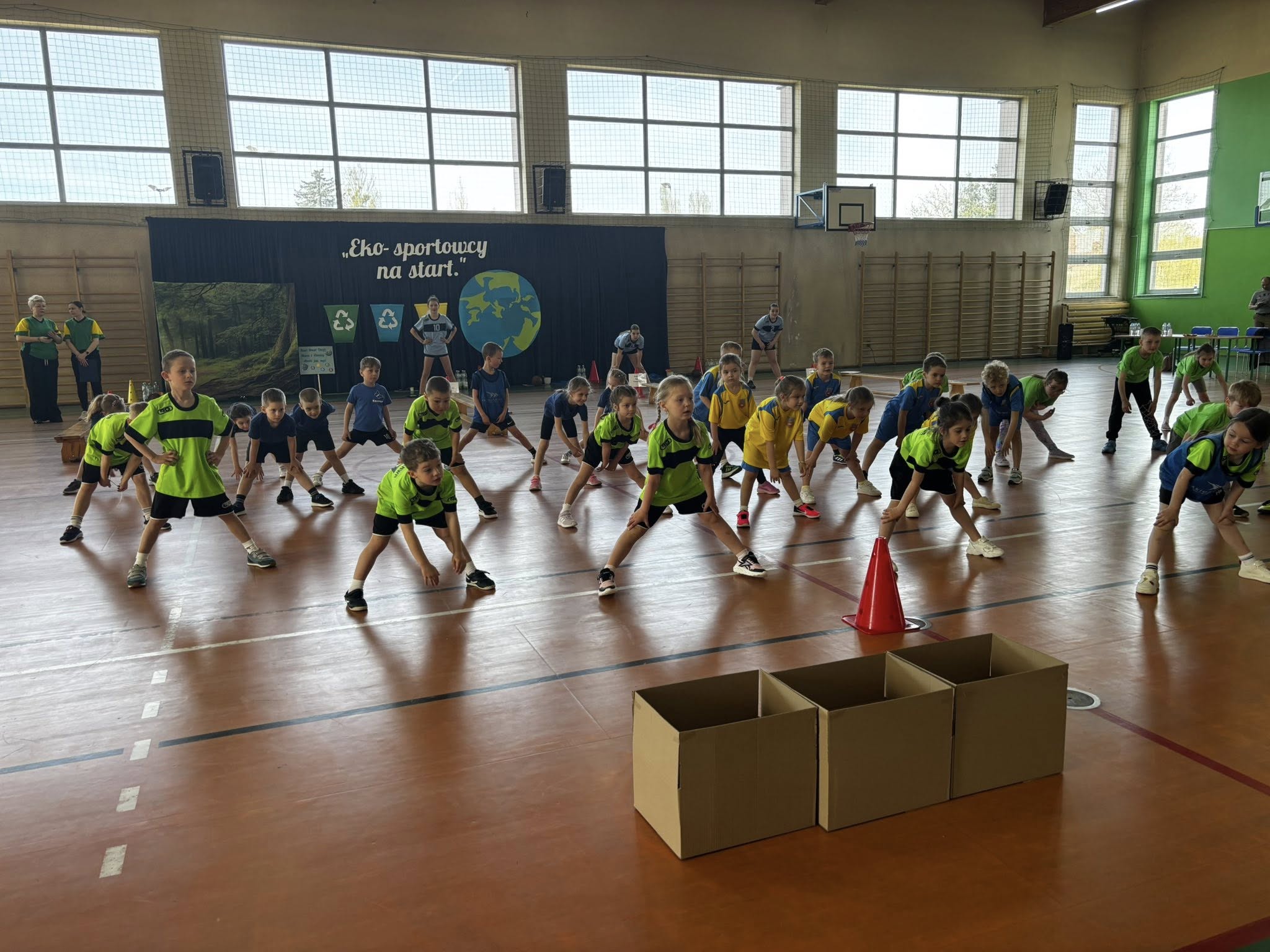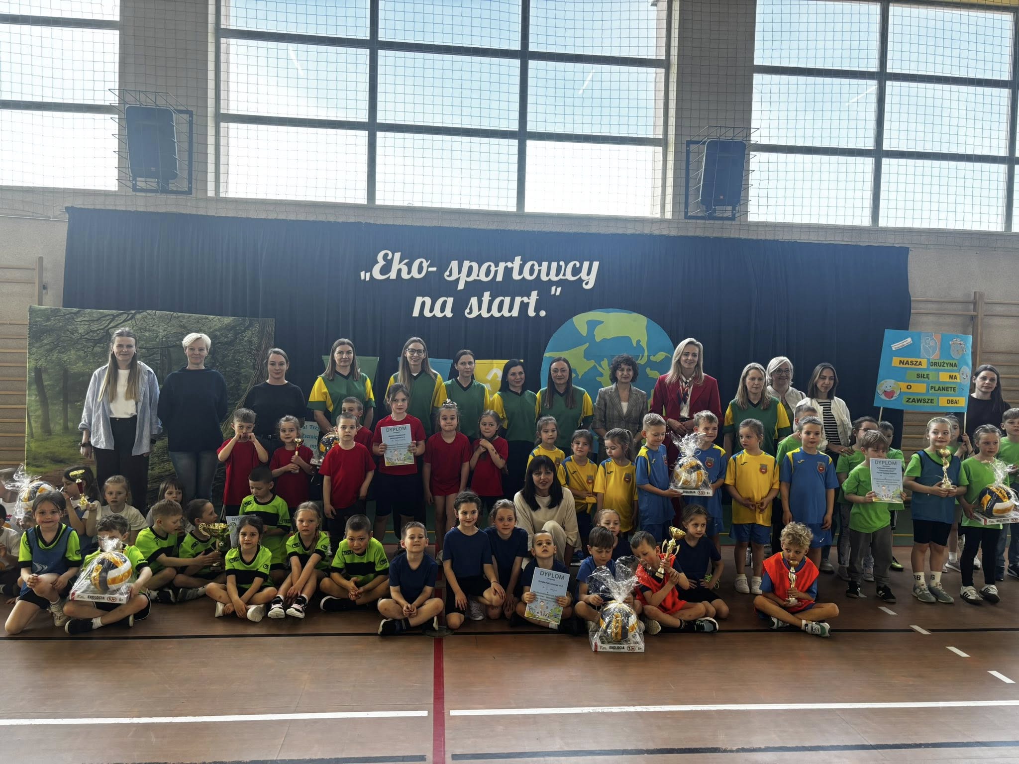 Dzień Ziemi , to święto obchodzone 22 kwietnia, którego celem jest promowanie ochrony środowiska i troski o naszą planetę. W tym dniu w naszej placówce, odbył się Międzyprzedszkolny Turniej Sportowo - Ekologiczny „Eko - Sportowcy na Start!”, wydarzenie łączące aktywność fizyczną z nauką o ochronie środowiska. Jego celem było kształtowanie u dzieci świadomości ekologicznej poprzez zabawę i ruch, a także integrację przedszkolaków z różnych placówek, uczenie współpracy, przestrzegania zasad i zdrowej rywalizacji.