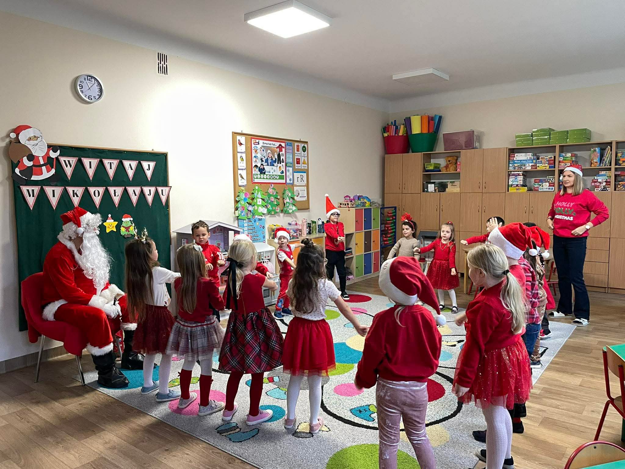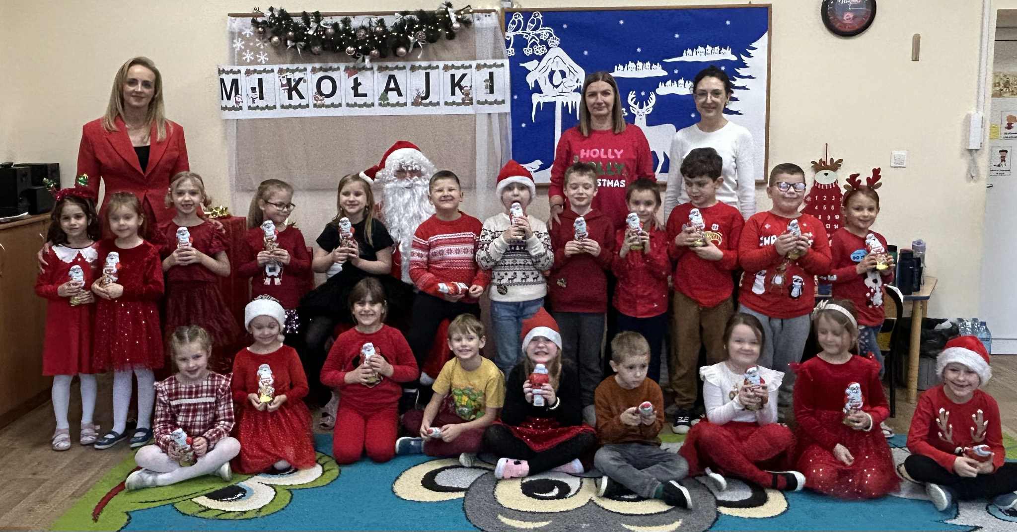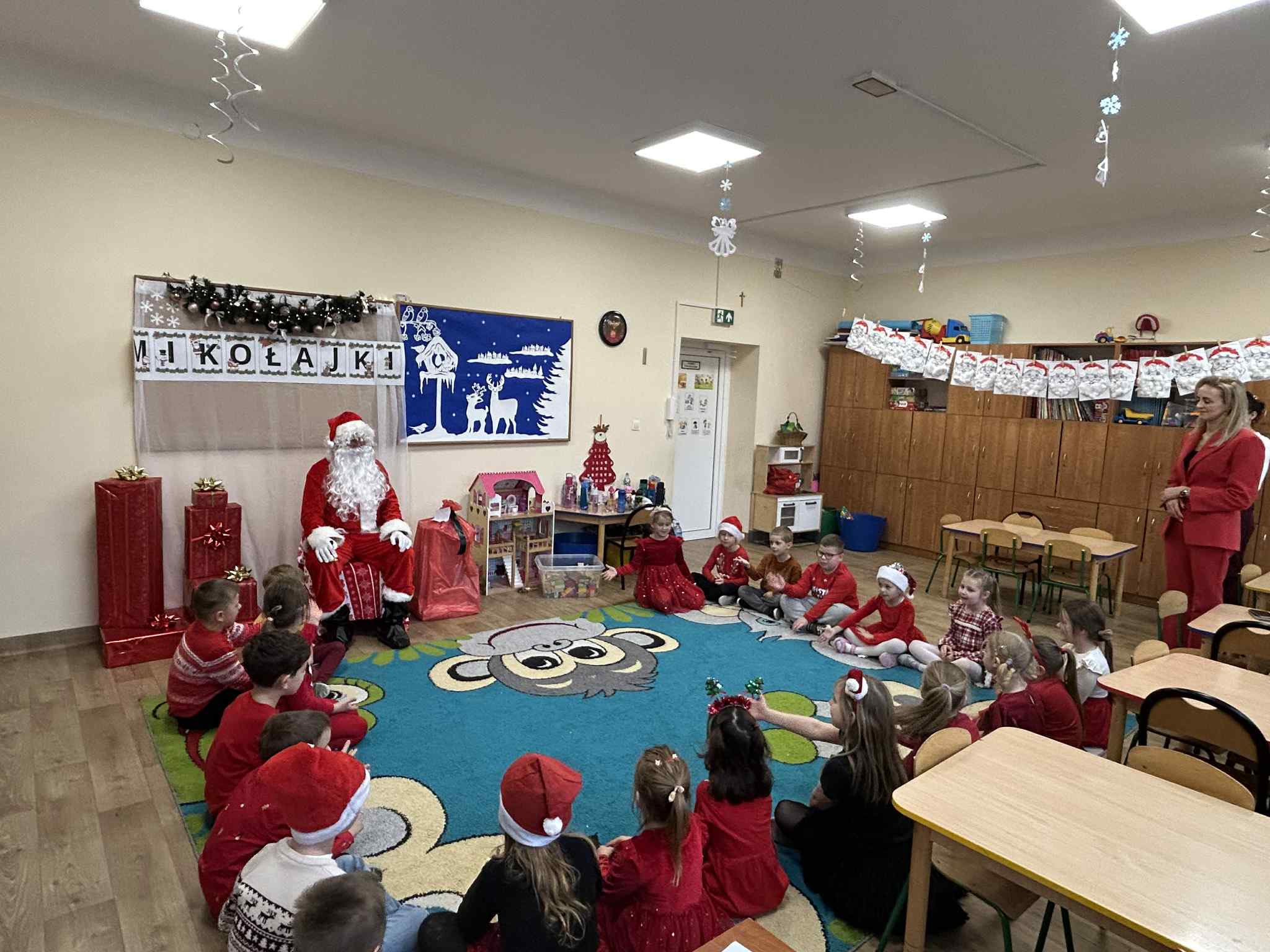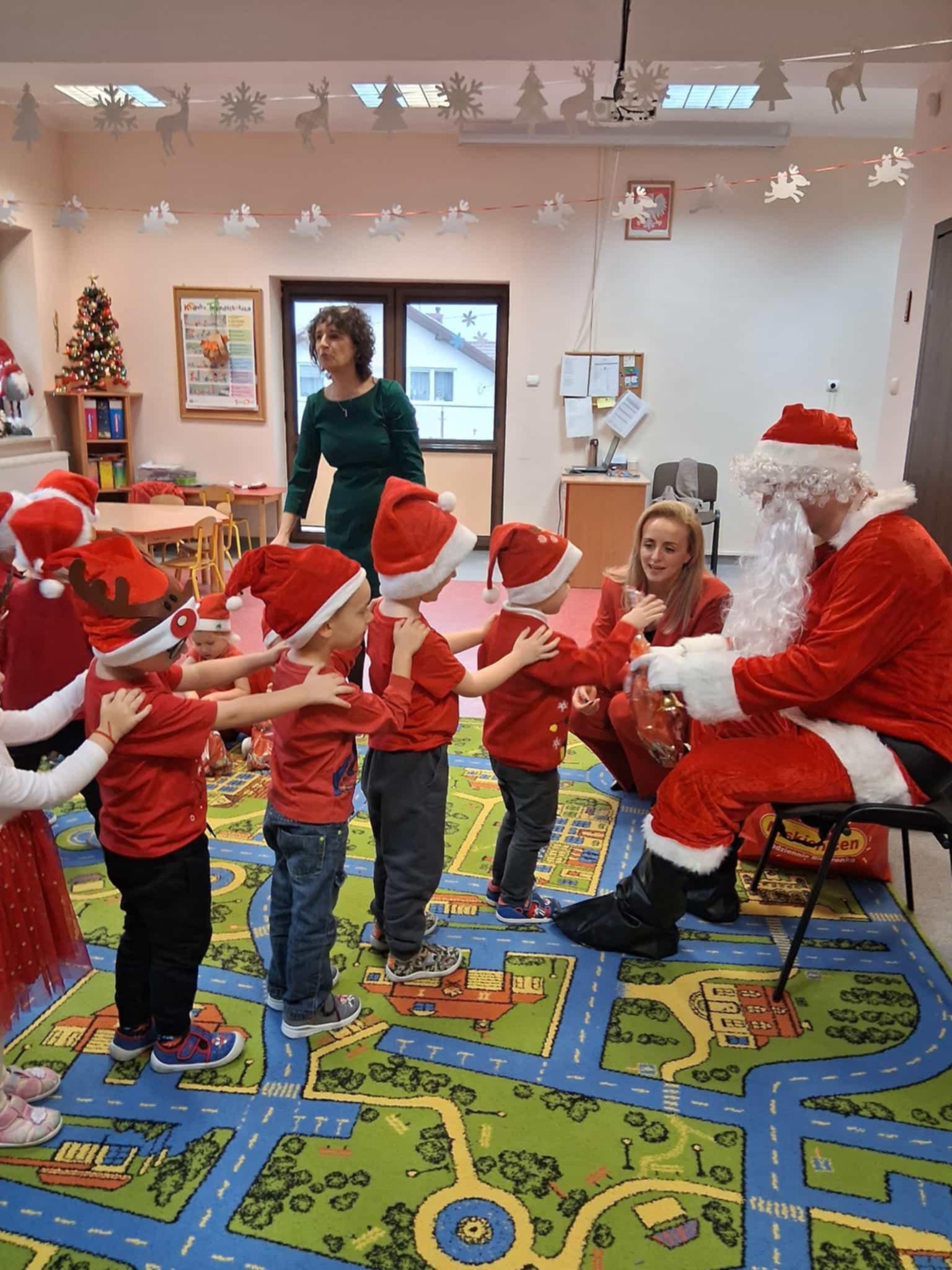 Mikołajki są jednym z najbardziej wyczekiwanych dni w roku przez wszystkie dzieci. Dziś Mikołaj odwiedził wszystkie grupy przedszkolne, towarzyszyły mu Pani Dyrektor oraz Pani Wicedyrektor. Dzieci otrzymały upominki, za które podziękowały pięknie śpiewając i recytując wiersze dla wspaniałych gości. Po wizycie w salach przedszkolnych, odbyło się równie piękne spotkanie z Panem Burmistrzem i jego Pomocnikami, którzy obdarowali naszych najmłodszych wspaniałymi prezentami. Był to niezwykle radosny dzień, który na długo pozostanie w pamięci dzieci.