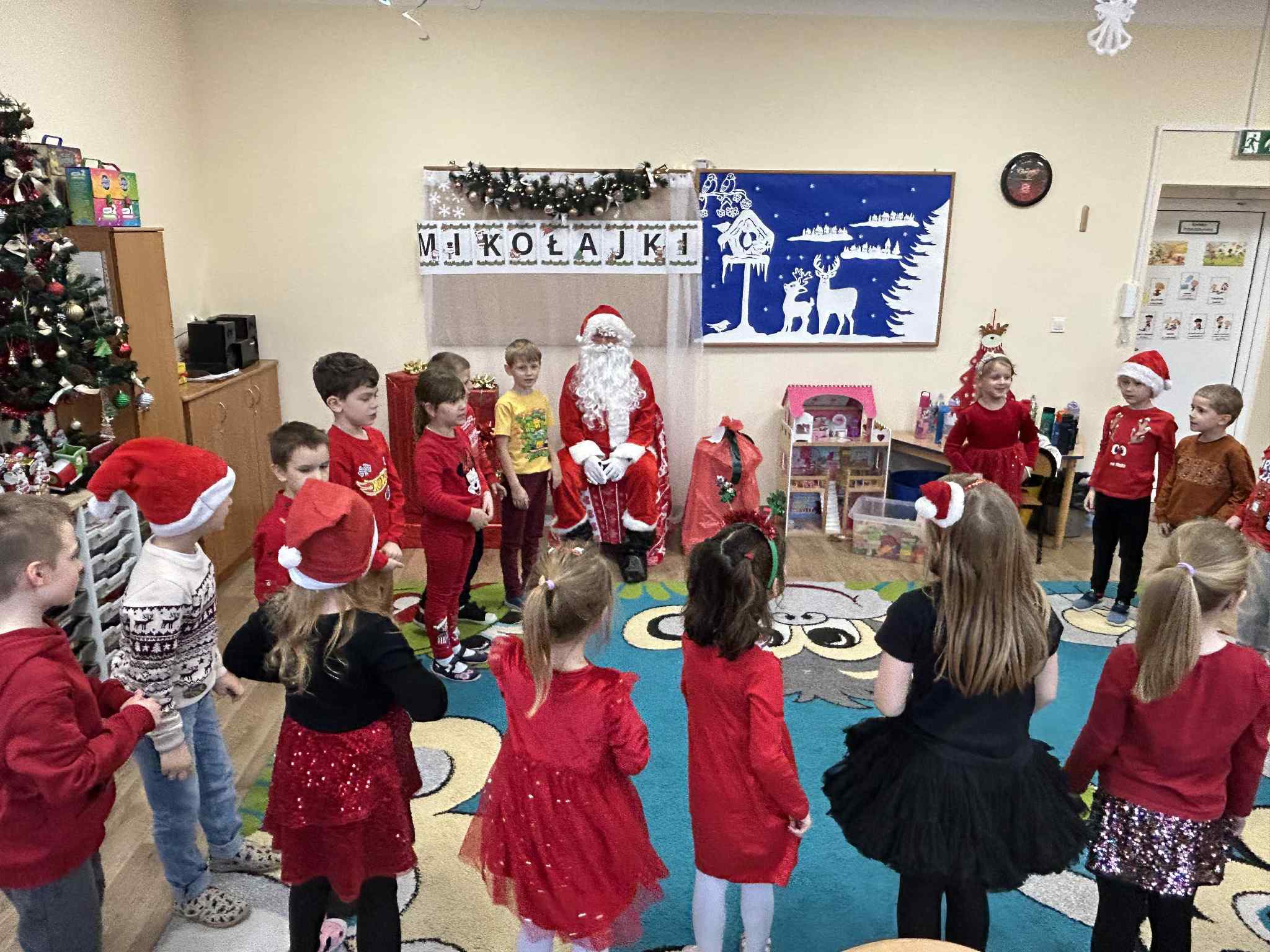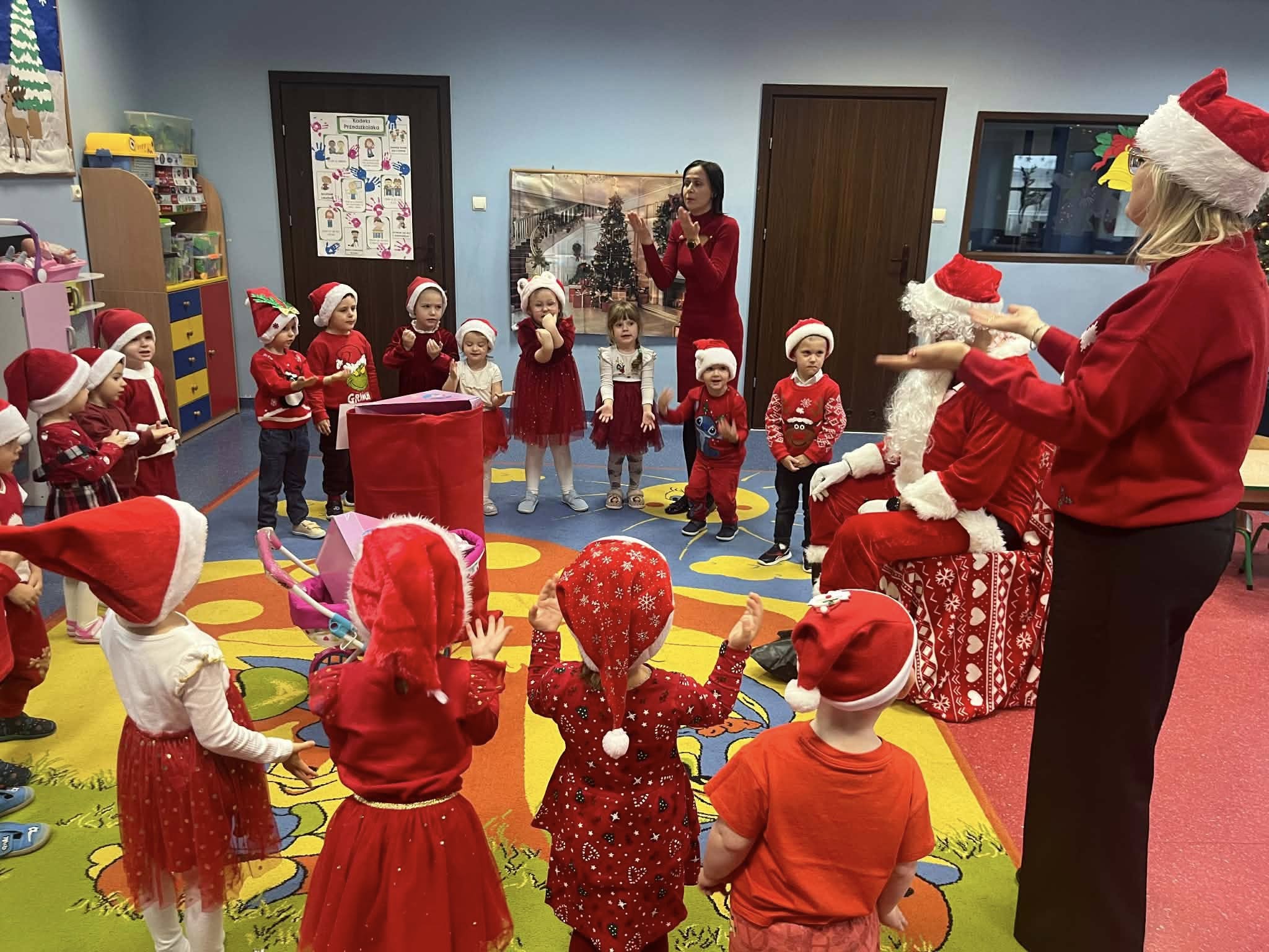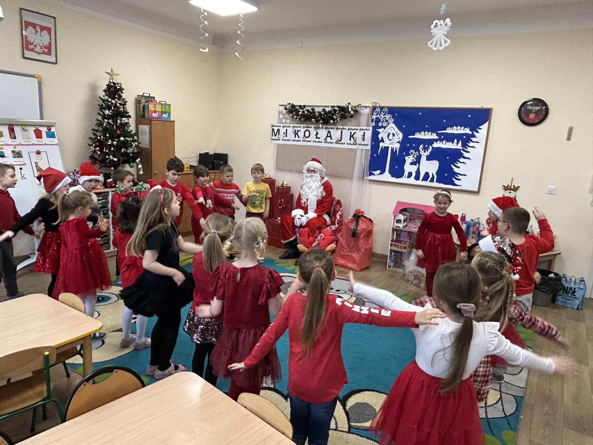 Mikołajki są jednym z najbardziej wyczekiwanych dni w roku przez wszystkie dzieci. Dziś Mikołaj odwiedził wszystkie grupy przedszkolne, towarzyszyły mu Pani Dyrektor oraz Pani Wicedyrektor. Dzieci otrzymały upominki, za które podziękowały pięknie śpiewając i recytując wiersze dla wspaniałych gości. Po wizycie w salach przedszkolnych, odbyło się równie piękne spotkanie z Panem Burmistrzem i jego Pomocnikami, którzy obdarowali naszych najmłodszych wspaniałymi prezentami. Był to niezwykle radosny dzień, który na długo pozostanie w pamięci dzieci.