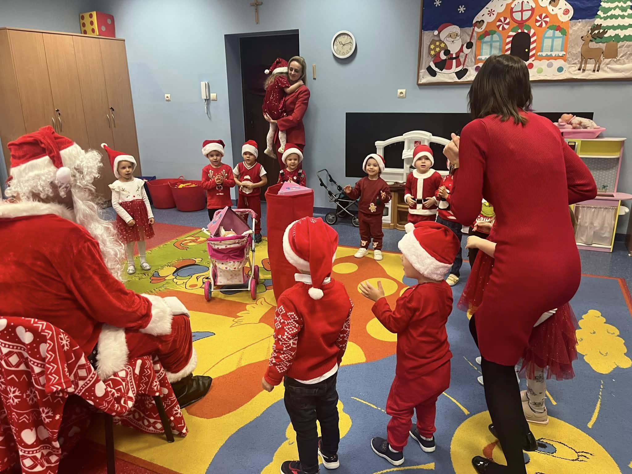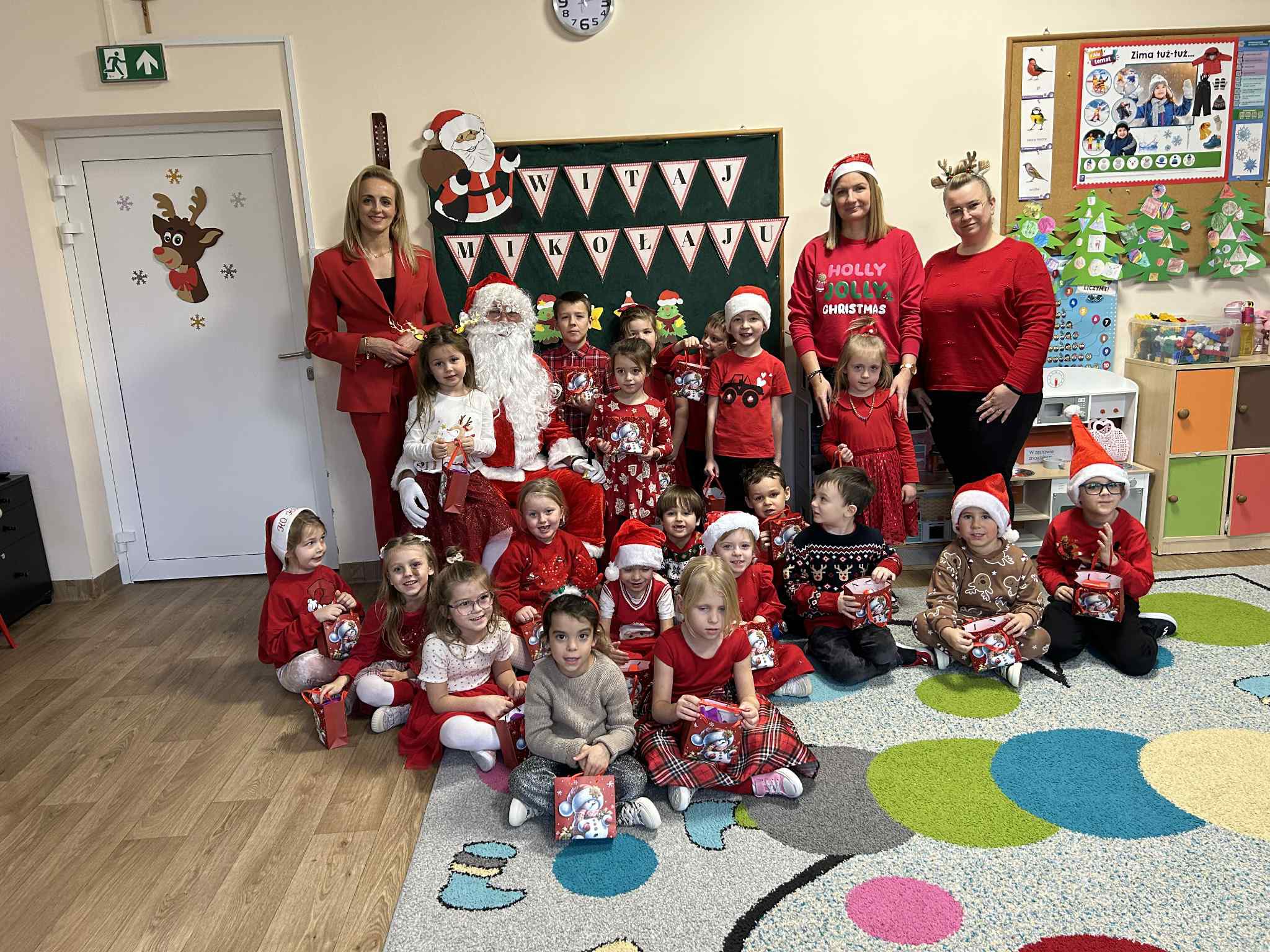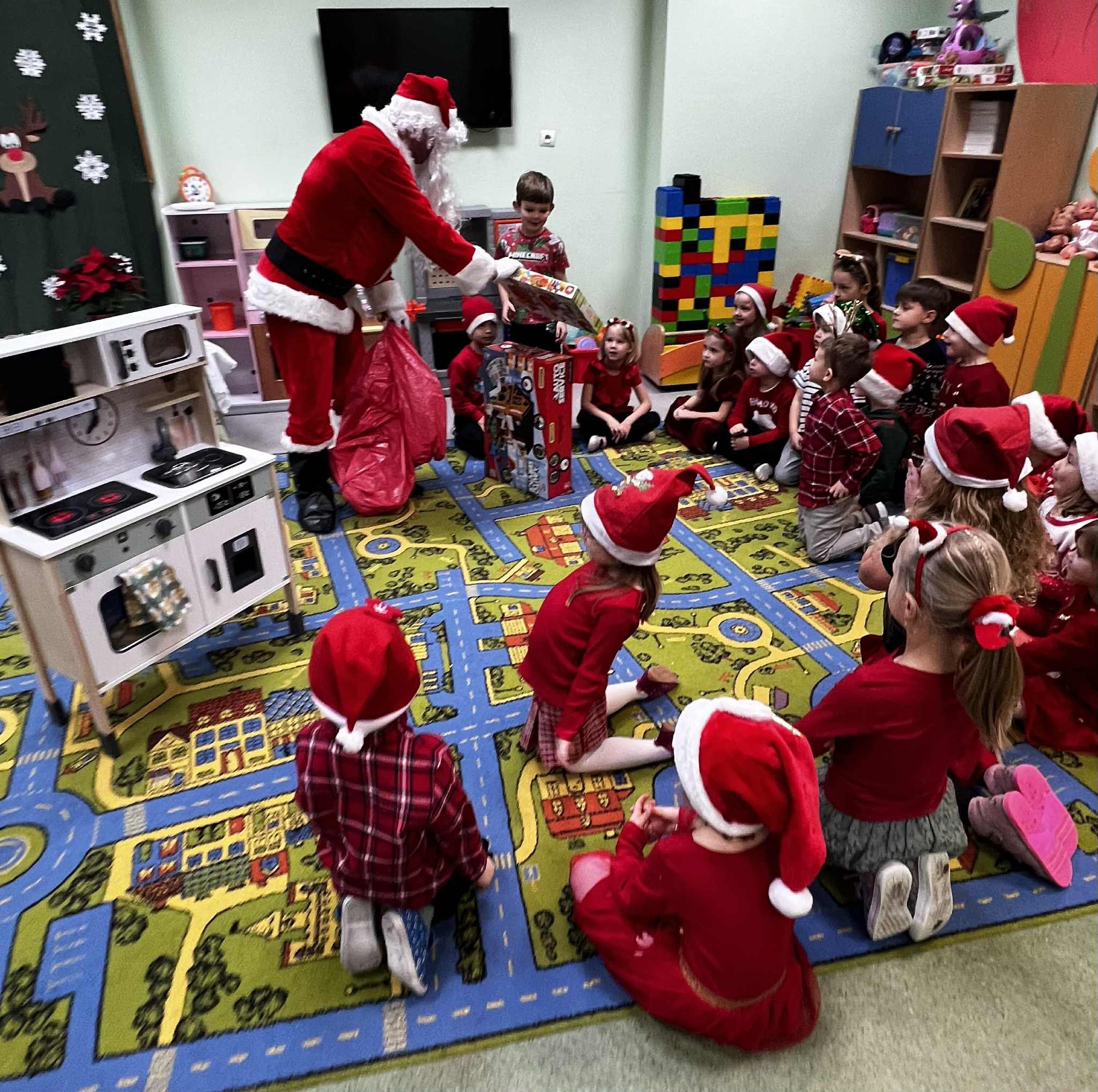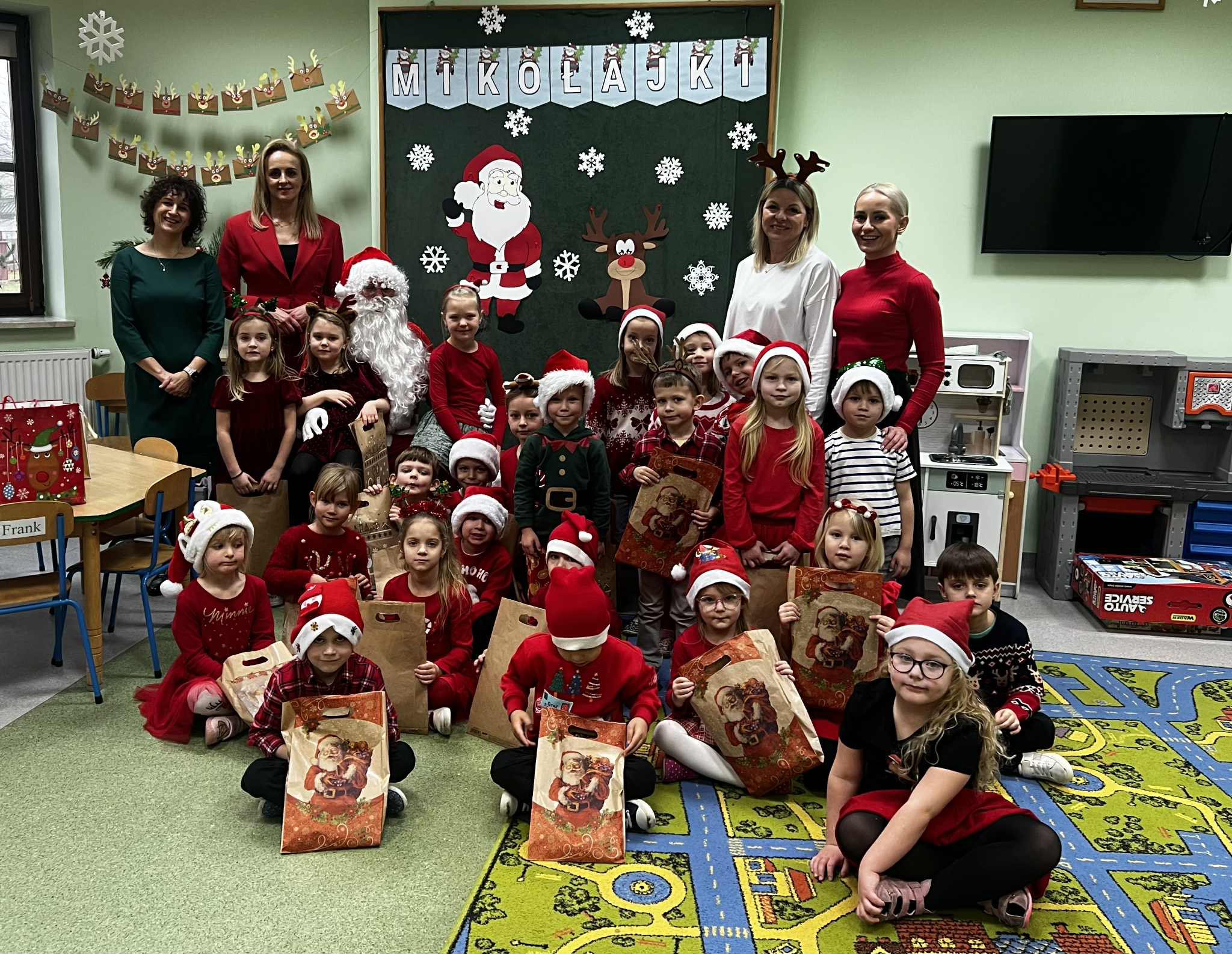Mikołajki są jednym z najbardziej wyczekiwanych dni w roku przez wszystkie dzieci. Dziś Mikołaj odwiedził wszystkie grupy przedszkolne, towarzyszyły mu Pani Dyrektor oraz Pani Wicedyrektor. Dzieci otrzymały upominki, za które podziękowały pięknie śpiewając i recytując wiersze dla wspaniałych gości. Po wizycie w salach przedszkolnych, odbyło się równie piękne spotkanie z Panem Burmistrzem i jego Pomocnikami, którzy obdarowali naszych najmłodszych wspaniałymi prezentami. Był to niezwykle radosny dzień, który na długo pozostanie w pamięci dzieci.