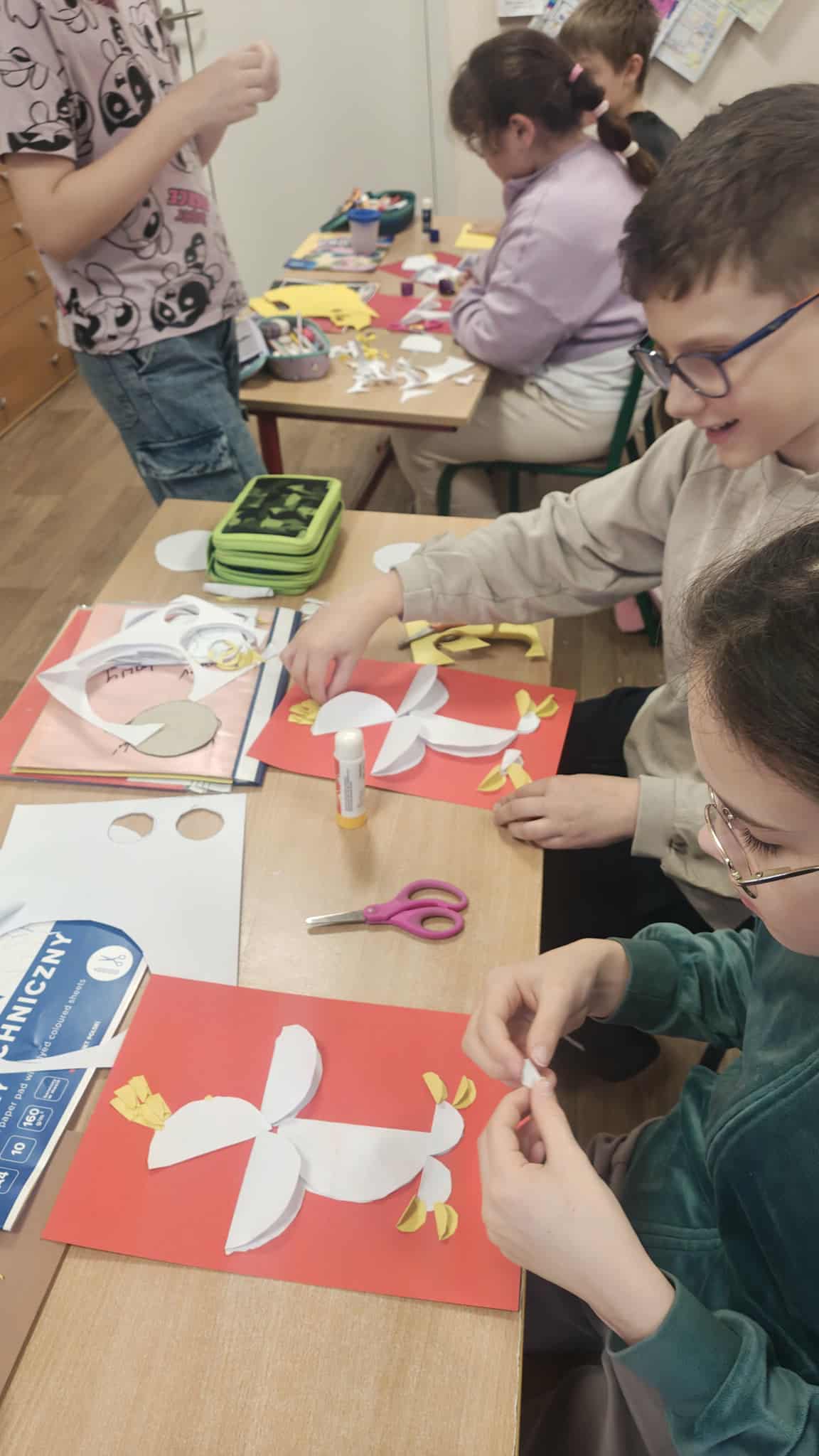 Uczniowie wykonali biało - czerwone kotyliony, Białego Orła z origami i udekorowali klasę barwami narodowymi. Zaśpiewali również piosenki dla Polski. To był dzień pełen refleksji i dumy z bycia Polakiem.
