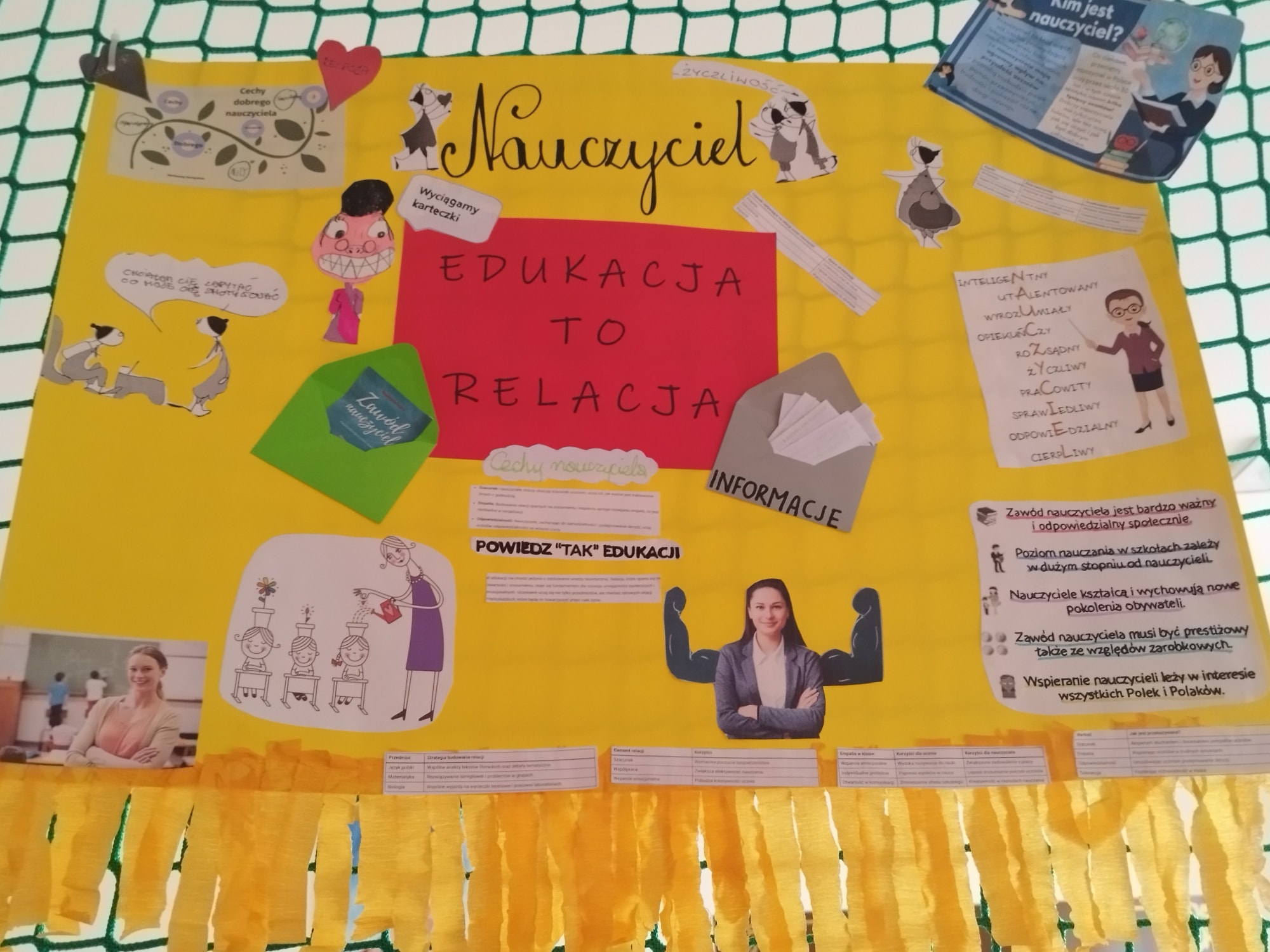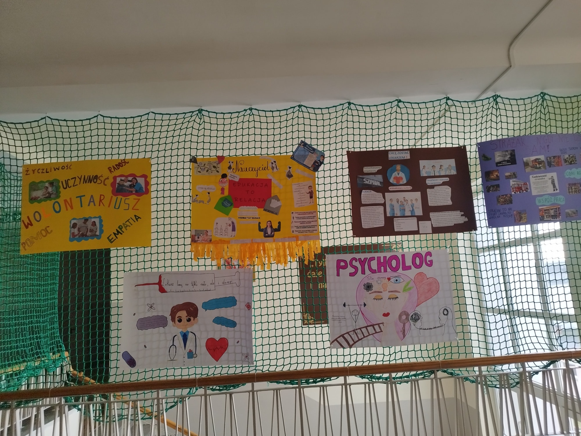 Uczniowie przygotowali plakaty przedstawiające profesje wymagające szczególnej wrażliwości i umiejętności pracy z ludźmi. Kreatywność i dojrzałe podejście bardzo nas zachwyciły!