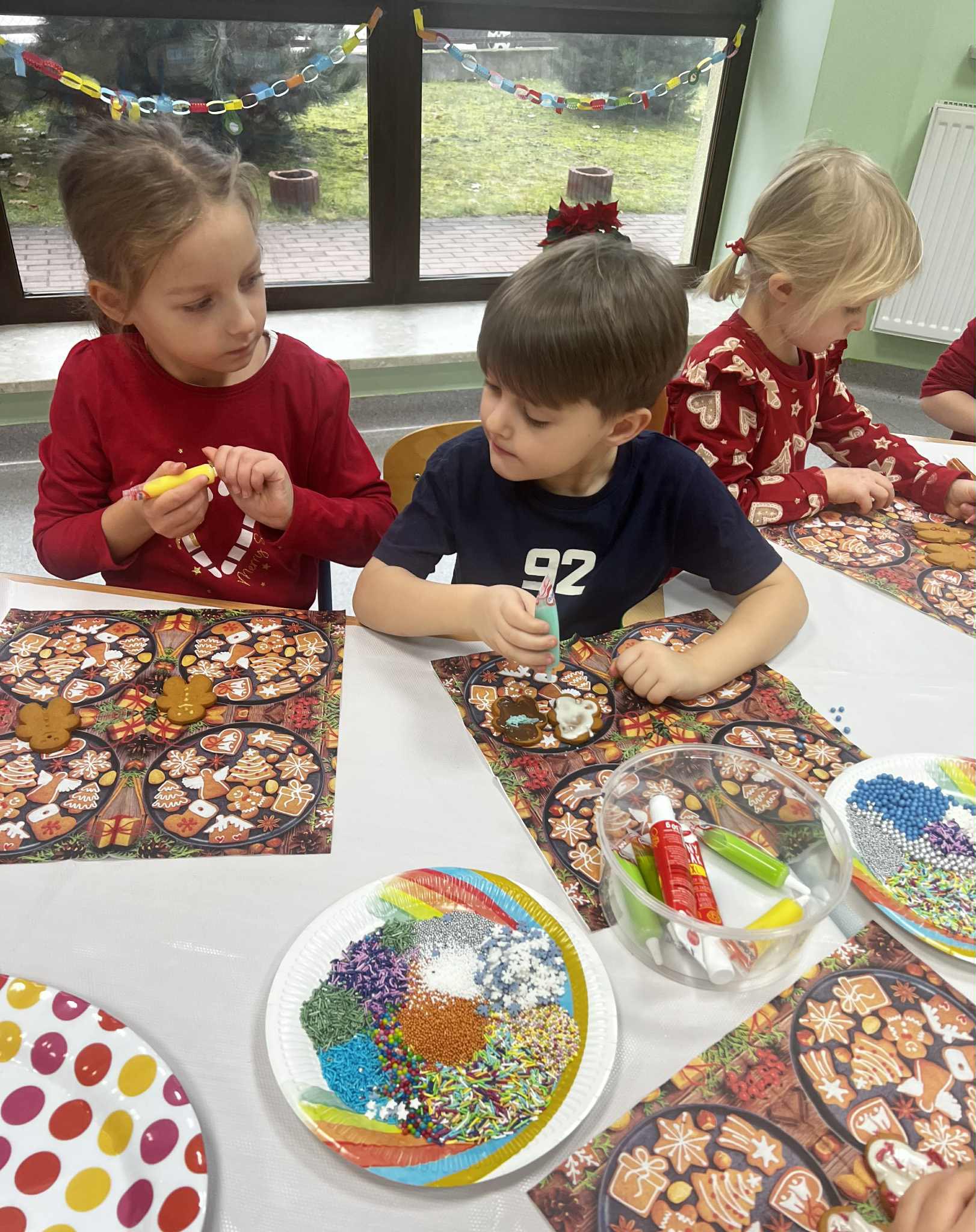 W naszym przedszkolu od pewnego czasu, pięknie pachnie piernikami, a wszystko to dlatego, że nasze dzieci z grupy Pszczółki, Motylki, Biedronki i Słoneczka najbardziej na świecie uwielbiają kolorowe posypki, słodkie lukry i smaczne ciasteczka. Przedszkolaki są mistrzami zdobienia pierników, ich kreatywność nie zna granic.