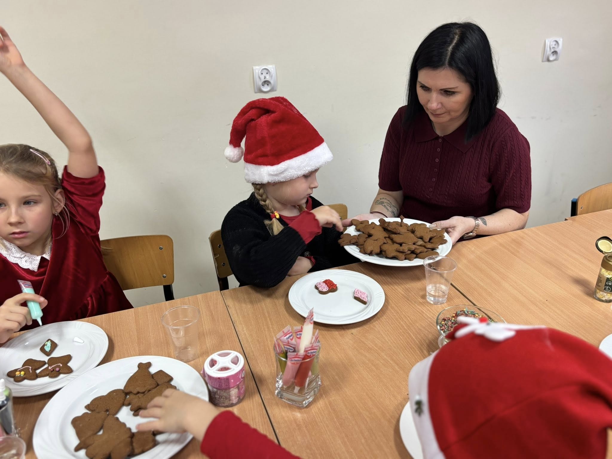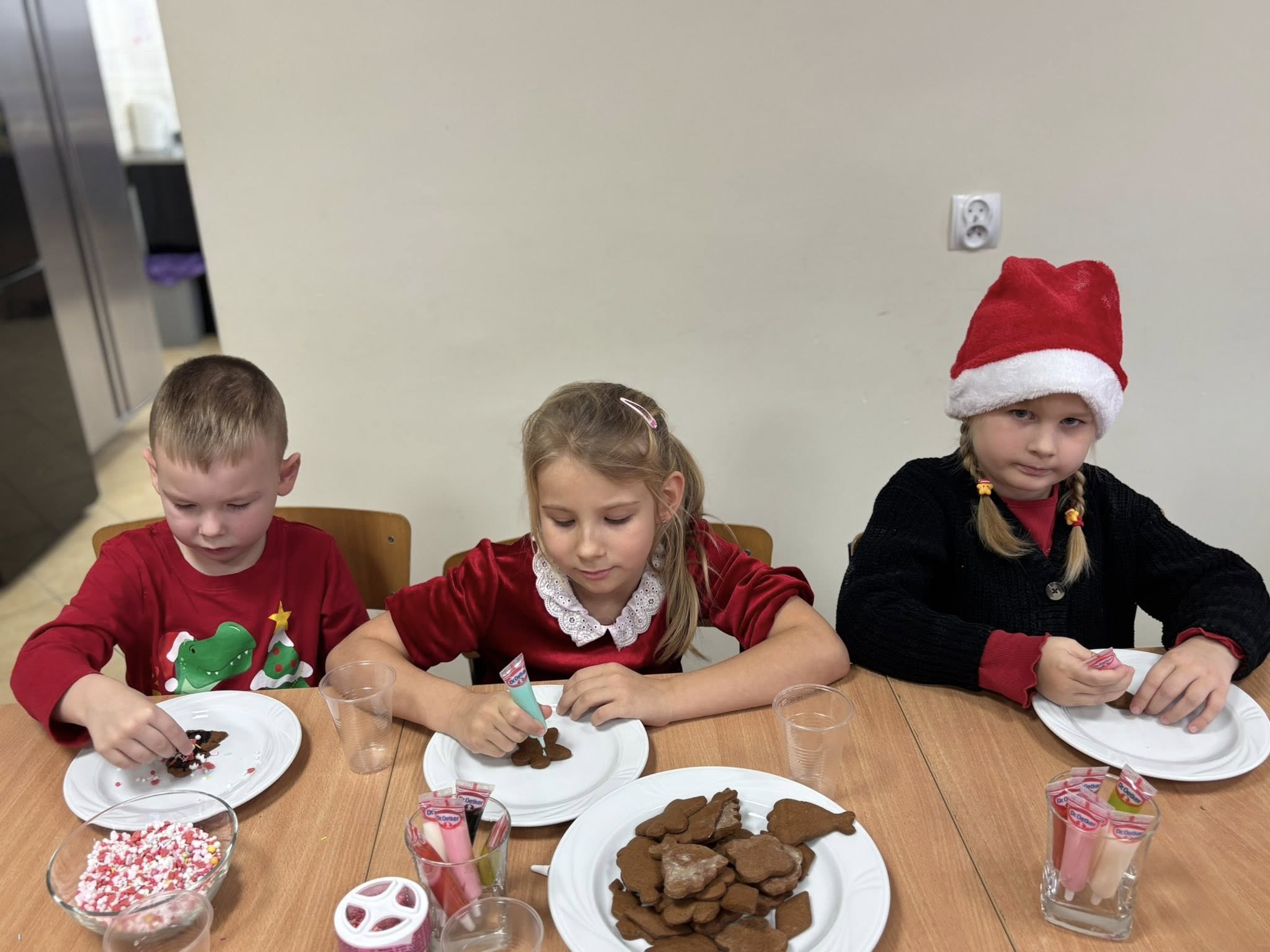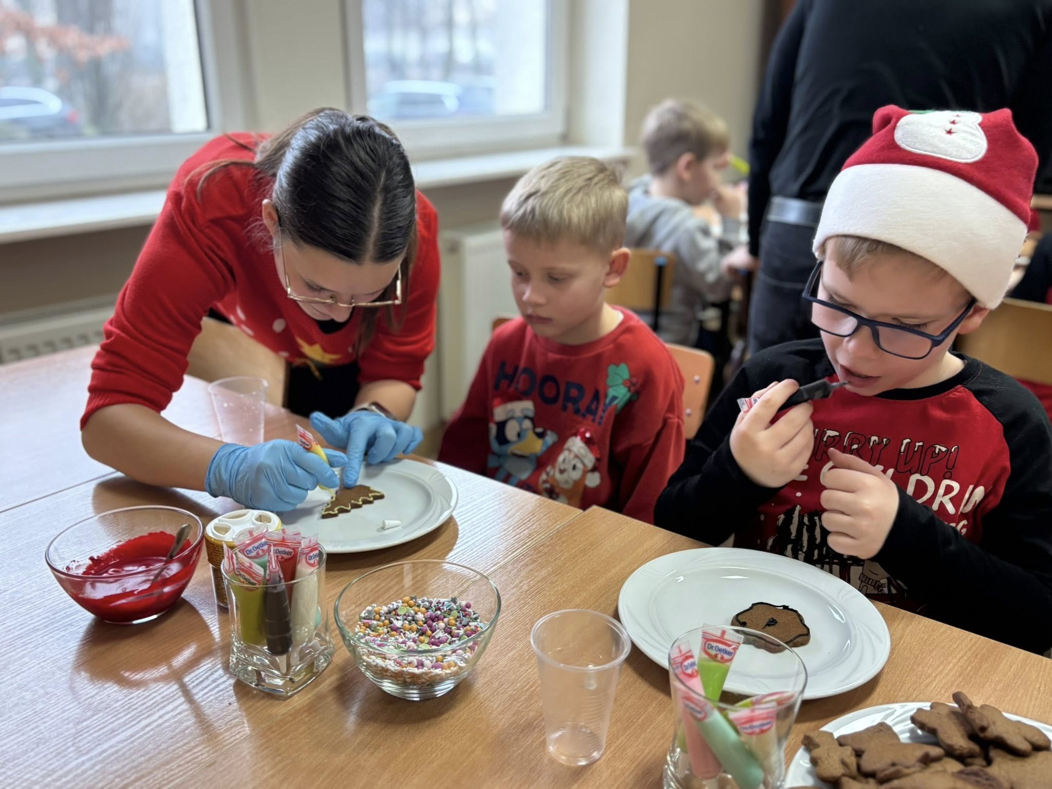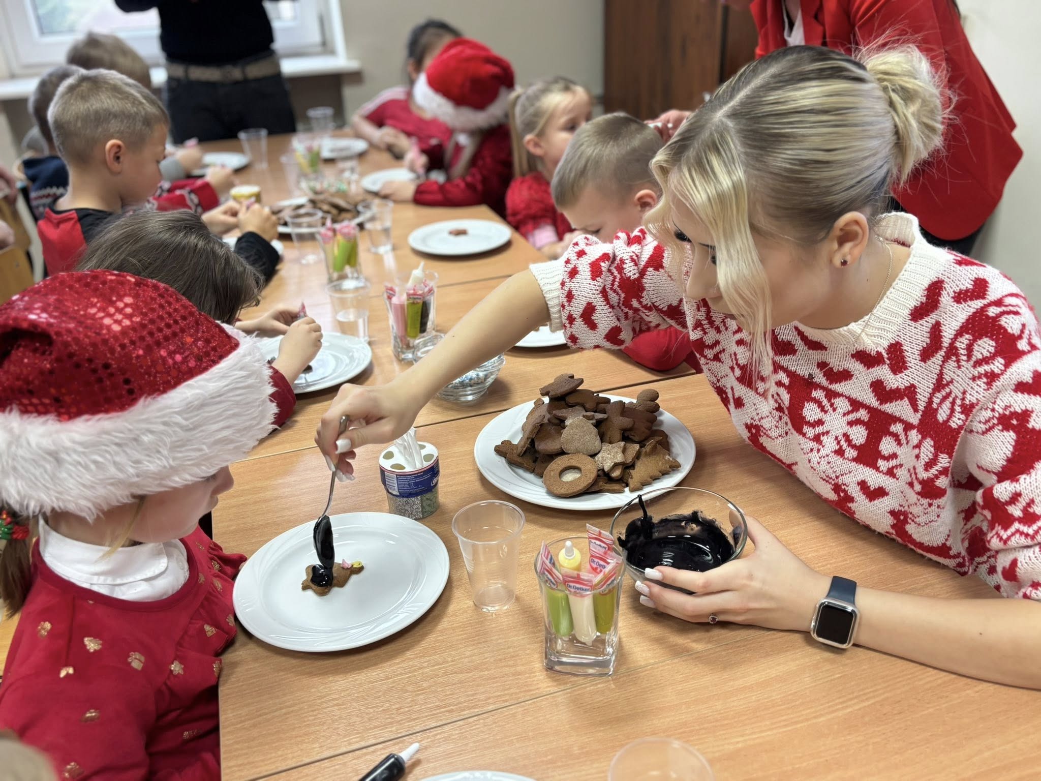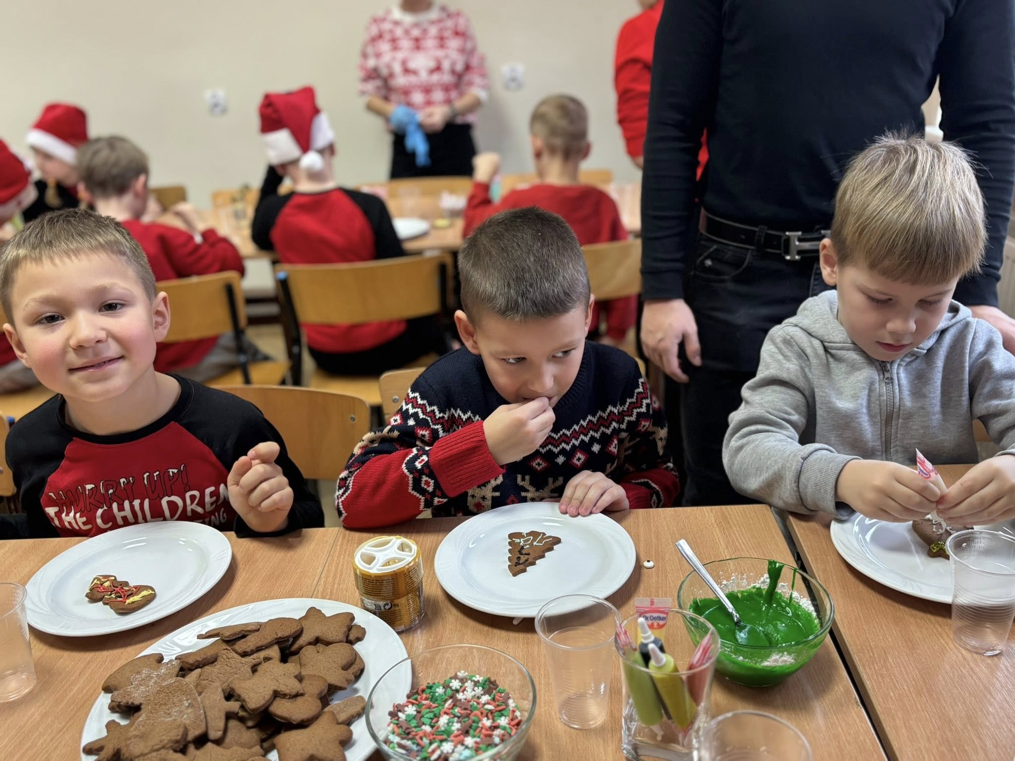 W dniu 16 grudnia, przedszkolaki z grupy „Sówki” wybrały się do Zespołu Szkół nr 2 w Mławie na wspólne piernikowanie. Dzieci wałkowały ciasto, wykrawały świąteczne kształty, a później upieczone pierniczki ozdabiały słodkim lukrem i kolorowymi posypkami. Zapach pierników wypełnił całą szkołę, wprowadzając magiczną, świąteczną atmosferę. Bardzo dziękujemy Pani Jowicie Fijałkowskiej i klasie III LA za wspaniale poprowadzone warsztaty i ciepłe przyjęcie