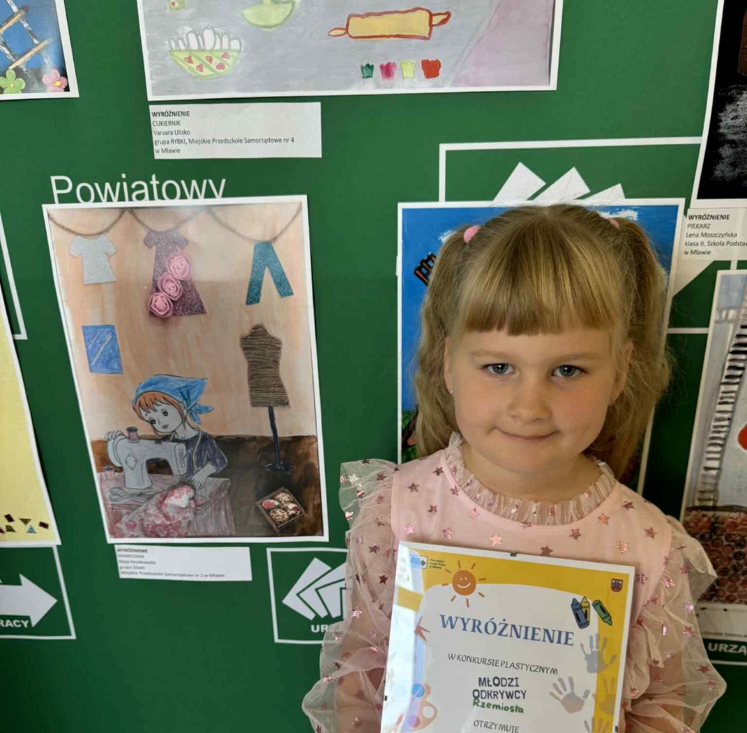 Dnia 22 października 2025 r. w auli Wydziału Nauk Technicznych i Społecznych w Mławie podczas konferencji „Most pokoleń - doradca zawodowy w świecie pracy” , odbyło się uroczyste wręczenie nagród laureatom konkursu pt: „Młodzi odkrywcy Rzemiosła” . Wśród nagrodzonych decyzją jury konkursowego znalazła się Maja Kosakowska z grupy „Sówki” z Miejskiego Przedszkola Samorządowego nr 2 w Mławie. Serdecznie gratulujemy !