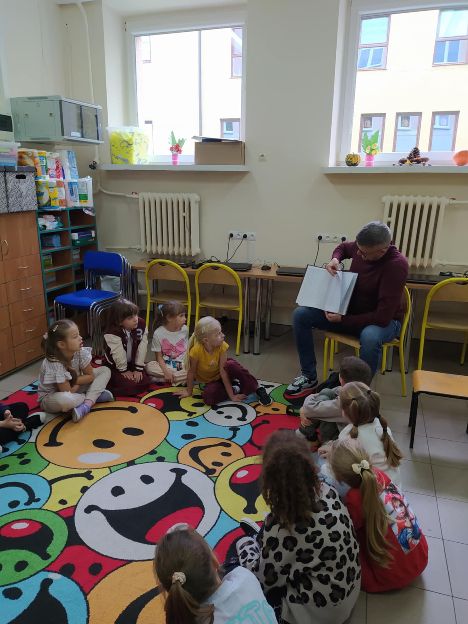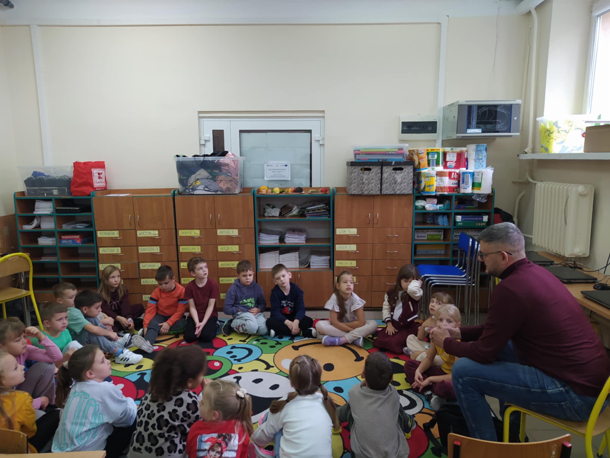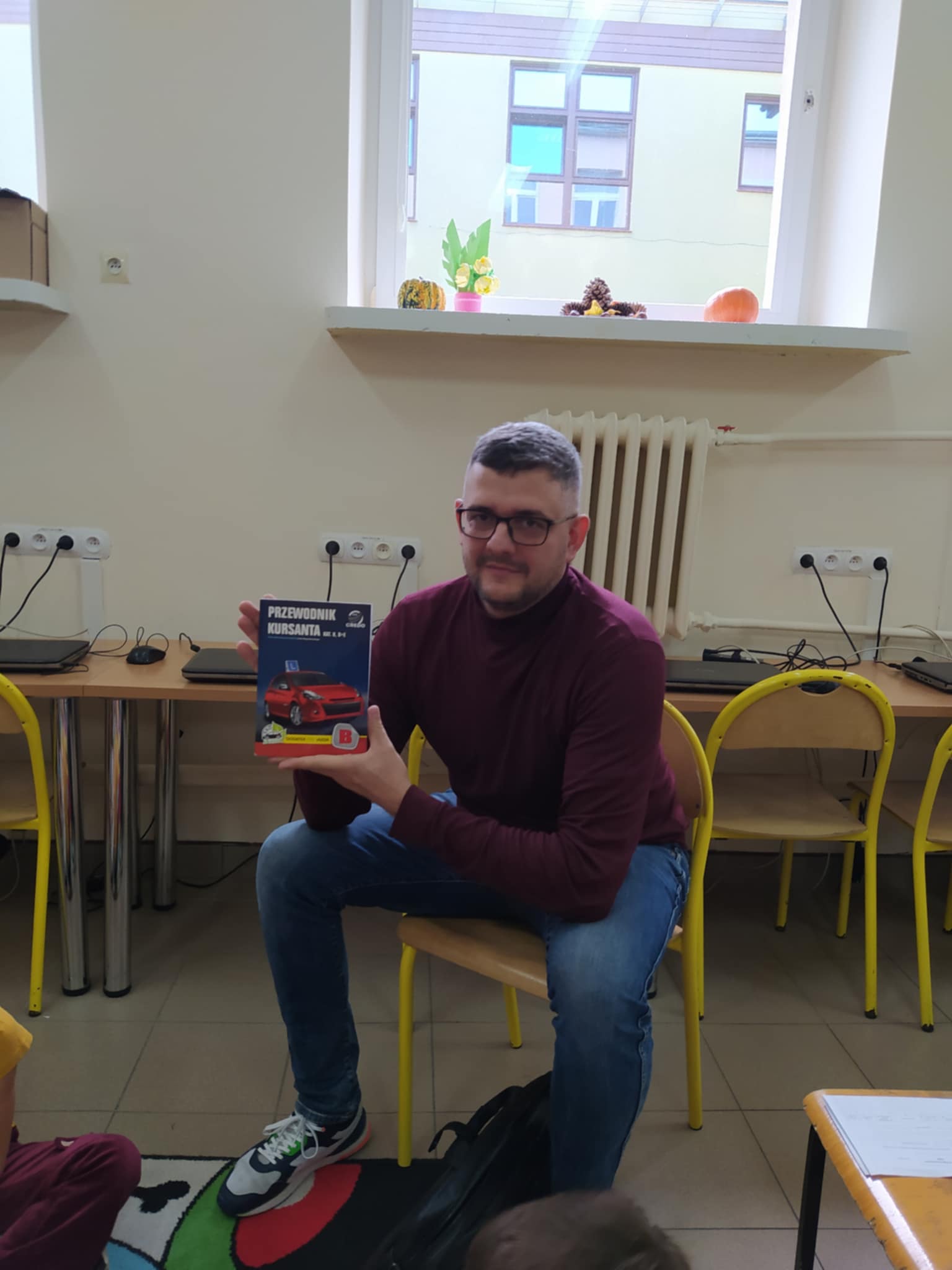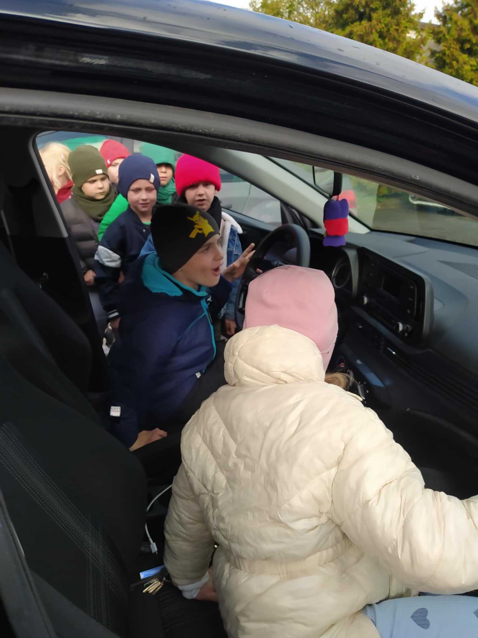10 października klasę 1b odwiedził jeden z rodziców- Pan Andrzej Smoliński - instruktor nauki jazdy, który opowiedział o swojej pracy i zasadach bezpiecznego poruszania się po drogach. Dzieci dowiedziały się, jak ważna jest znajomość przepisów ruchu drogowego i odpowiedzialność kierowcy. Wszyscy uczniowie mogli obejrzeć z bliska samochód, w którym odbywa się nauka jazdy. Po rozwiązaniu wielu zagadek, w bagażniku dla dzieci czekała niespodzianka. Spotkanie było ciekawe i zachęcało uczniów do myślenia o przyszłych zawodach.