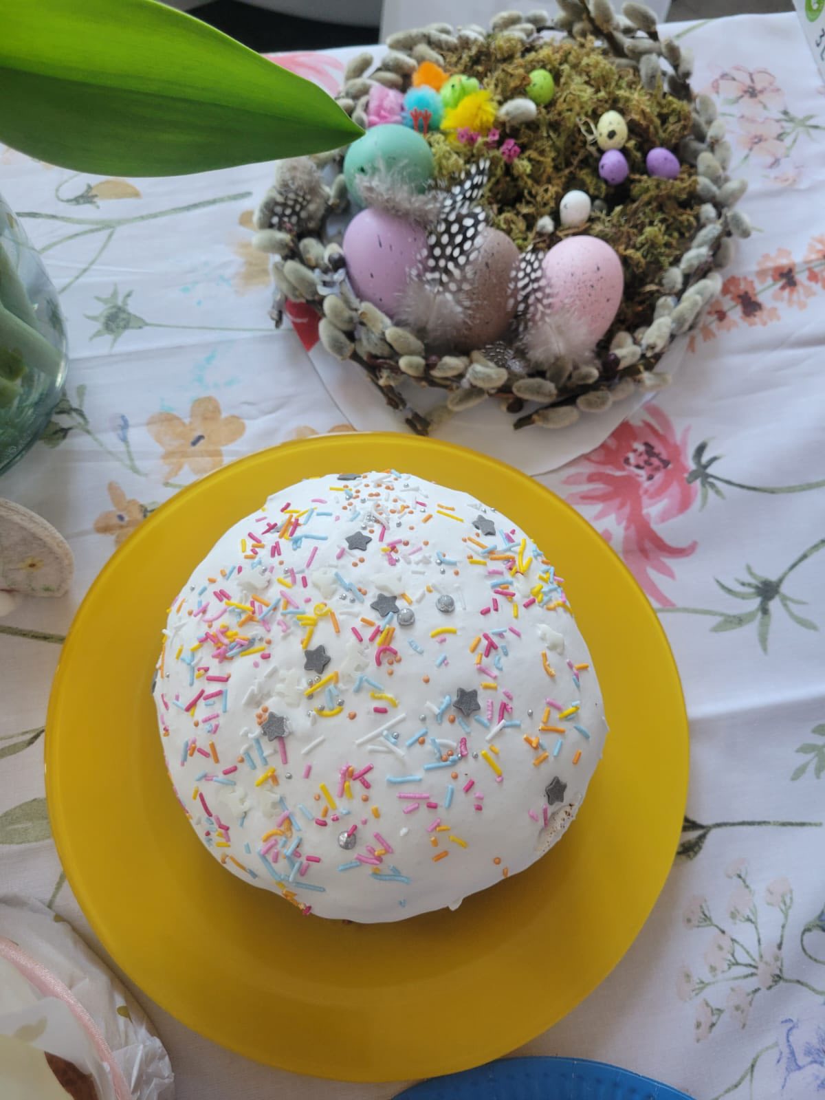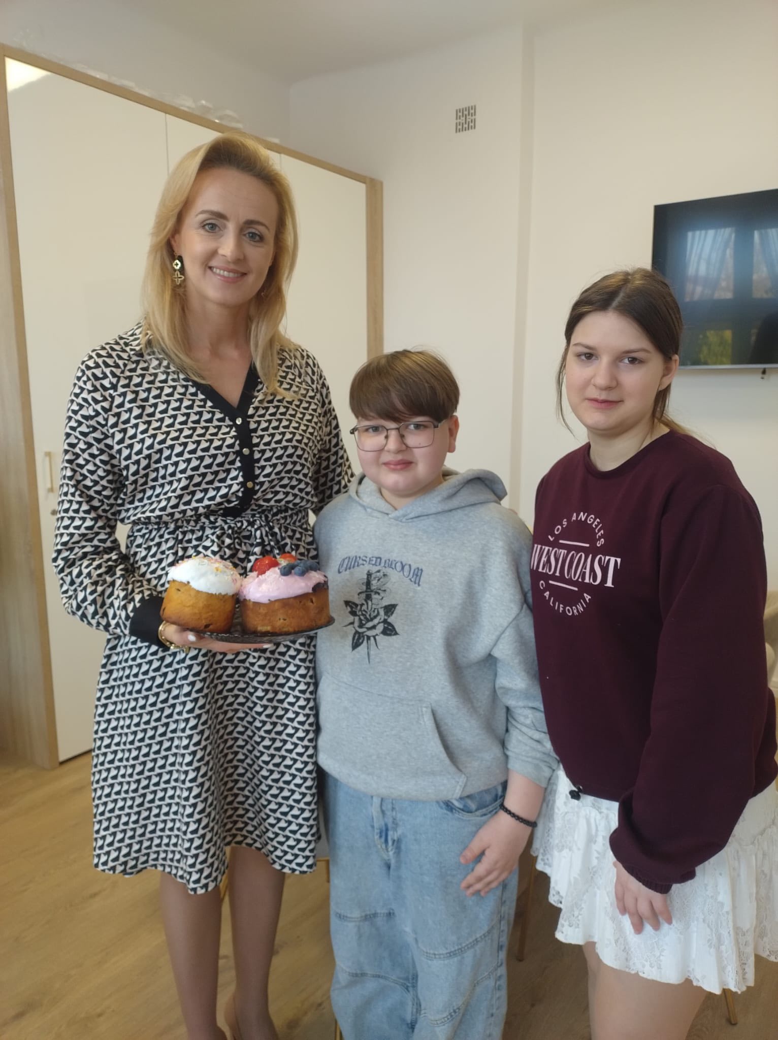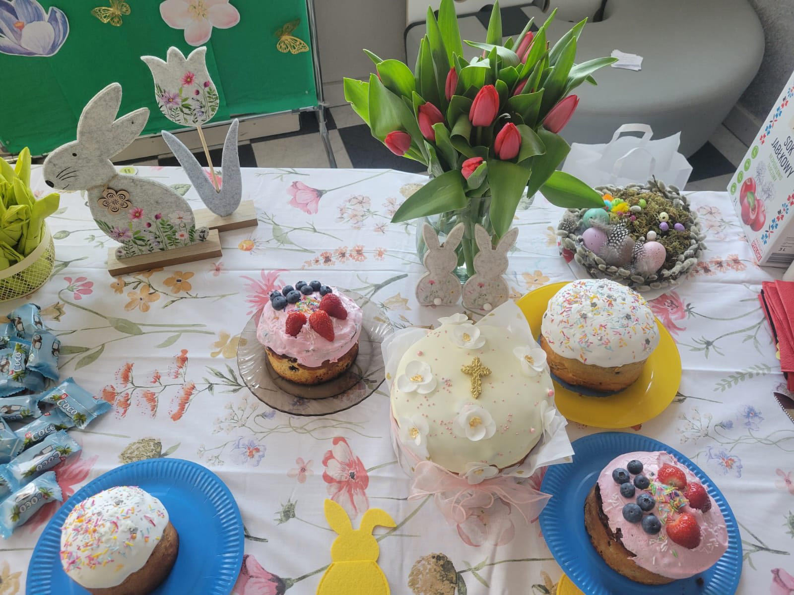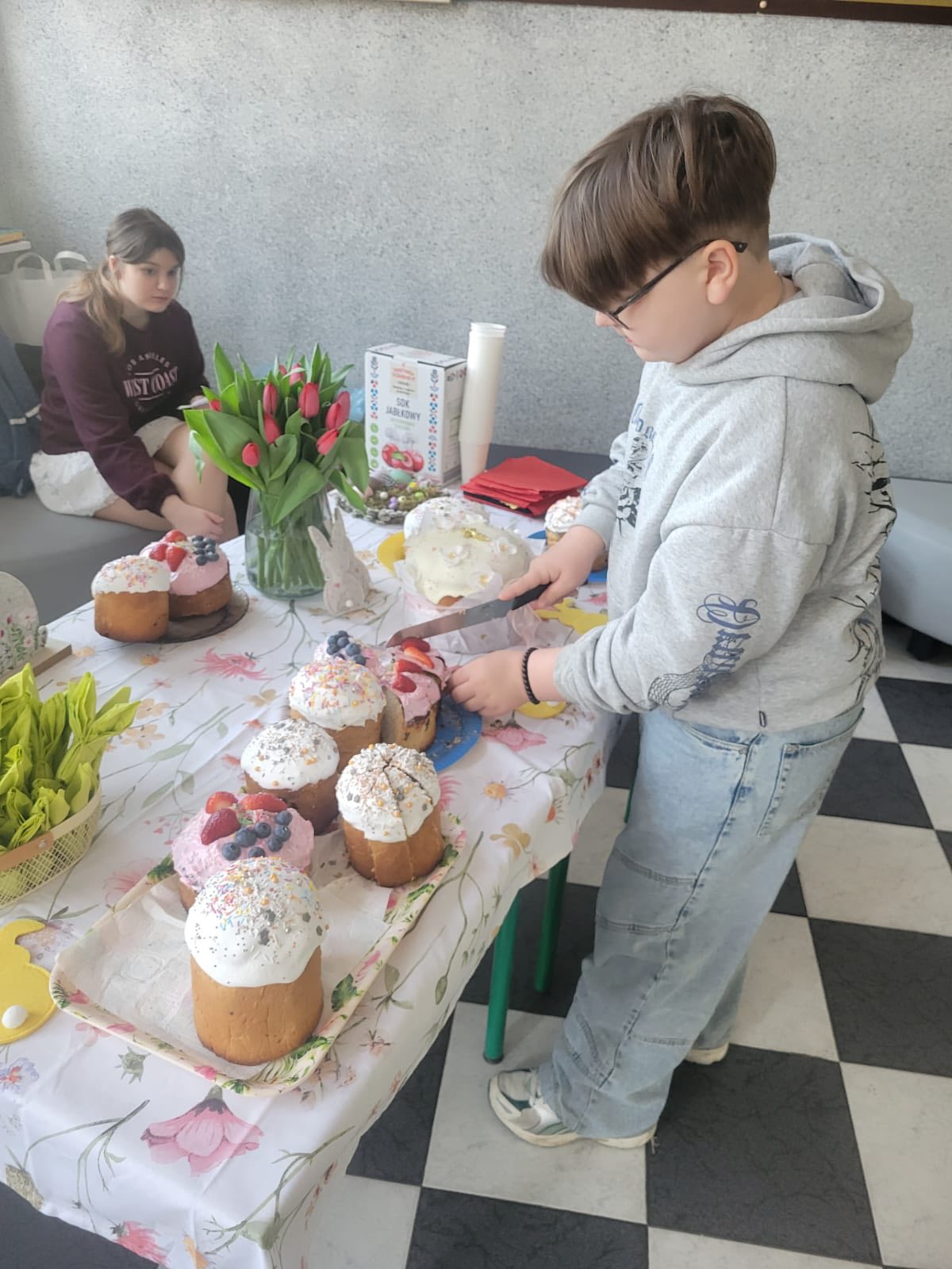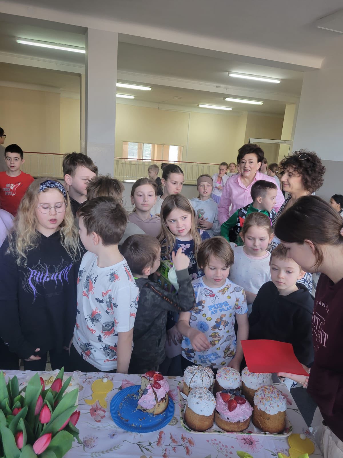 Z okazji radosnych Świąt Wielkanocnych nasi uczniowie z Ukrainy zaprezentowali tradycyjną wielkanocną potrawę – paschę, którą z ogromną serdecznością częstowali nauczycieli oraz koleżanki i kolegów. Był to nie tylko poczęstunek, ale przede wszystkim gest dzielenia się swoją kulturą i budowania wzajemnej bliskości.