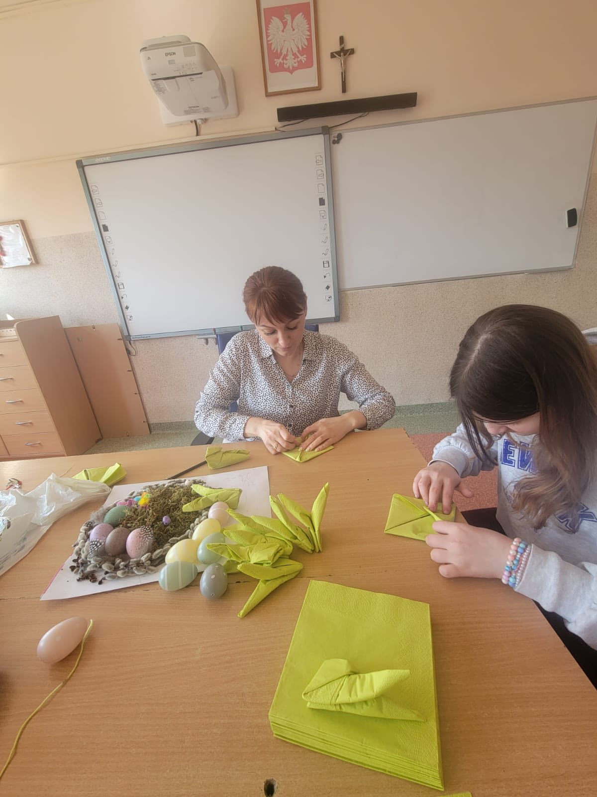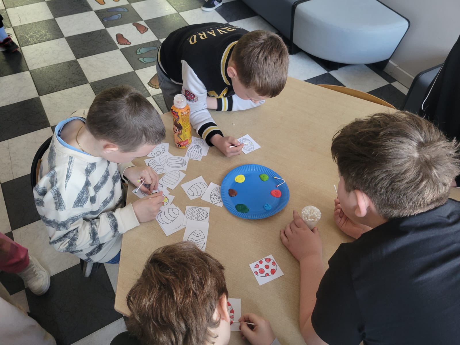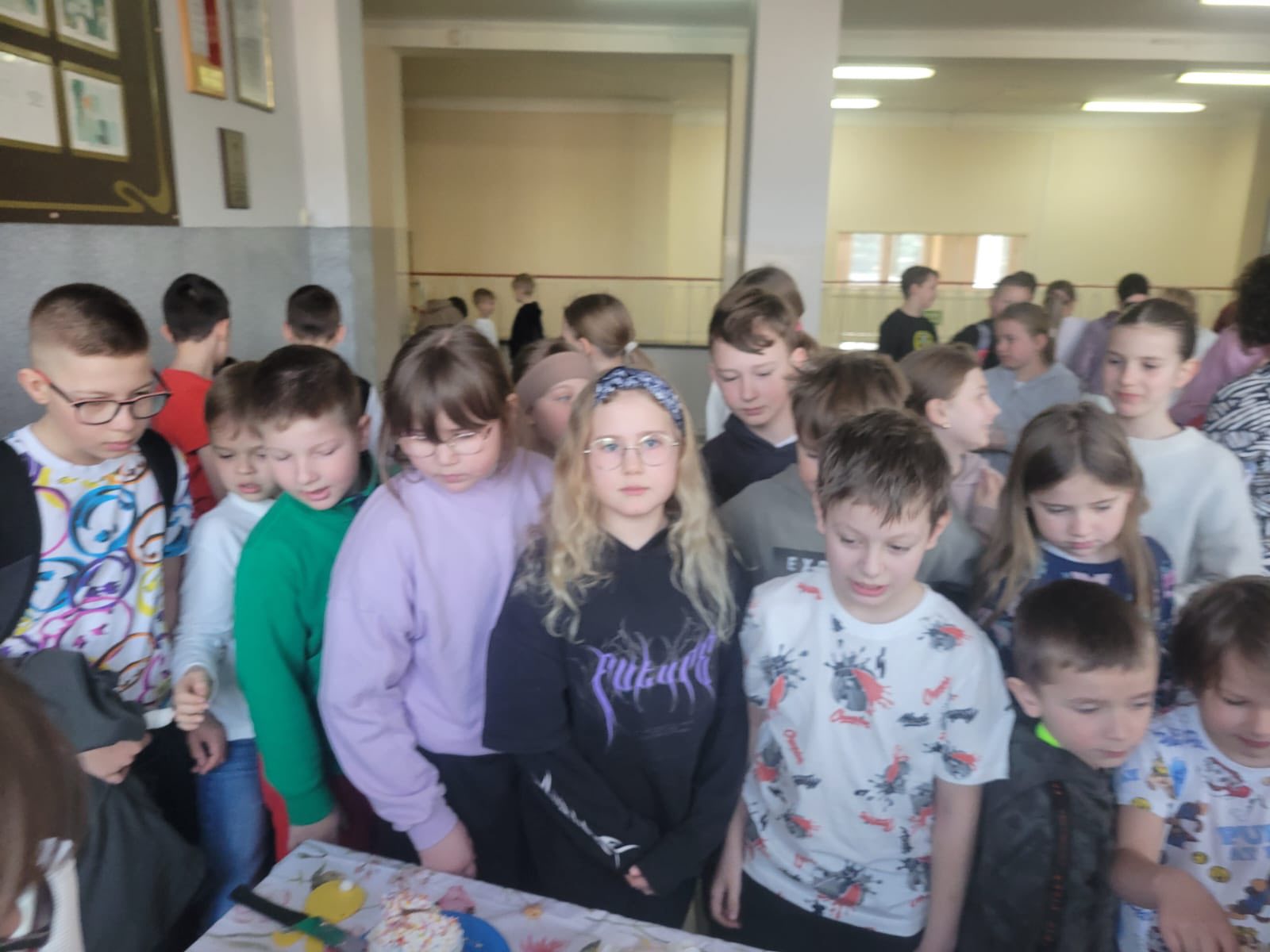 Dla najmłodszych uczniów zorganizowano konkurs „Malowanie pisanek”, który wywołał wiele radości i uśmiechów. Kolorowe, pomysłowe prace zostały nagrodzone słodkimi upominkami w postaci czekoladowych zajączków, co sprawiło dzieciom ogromną frajdę.