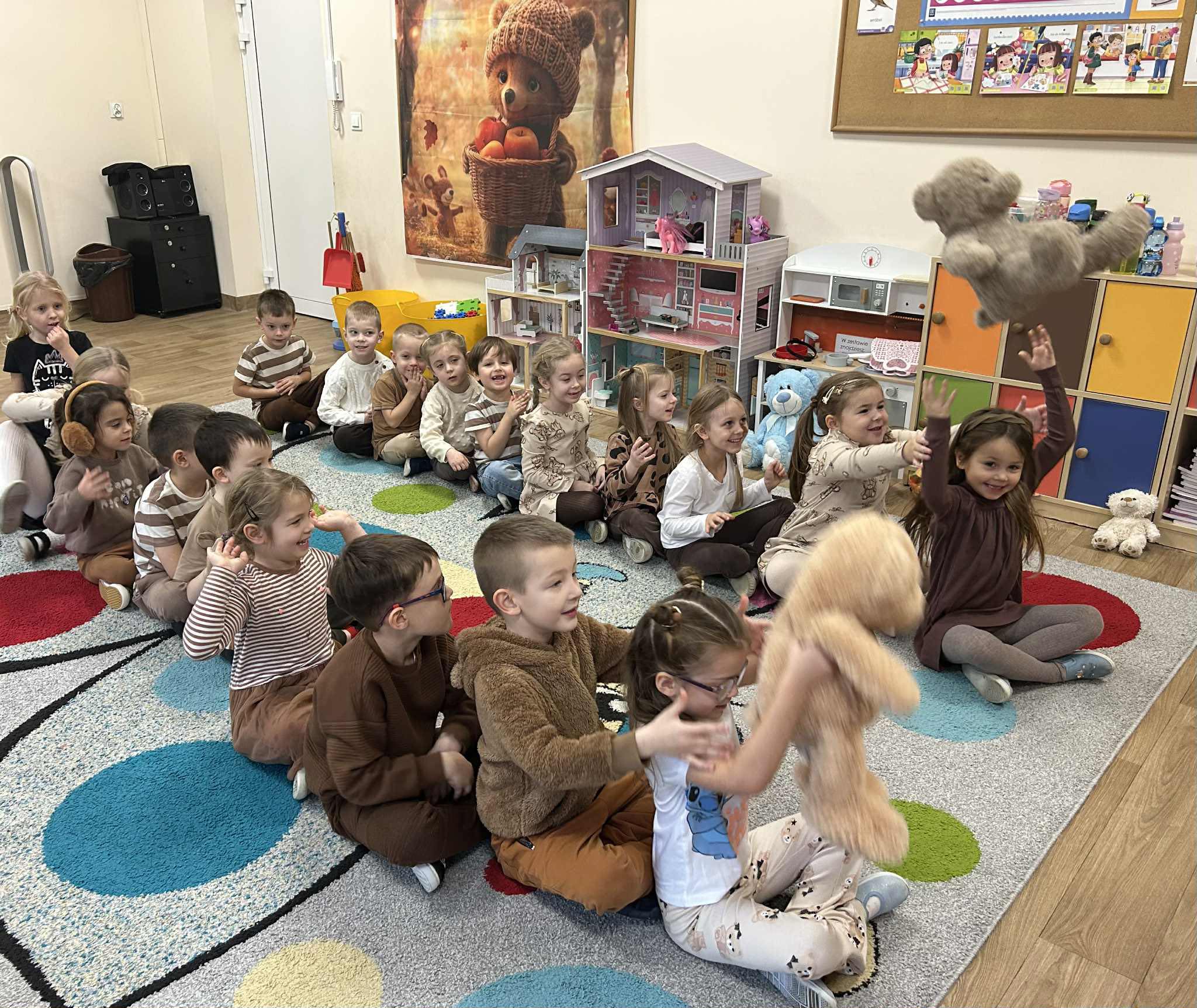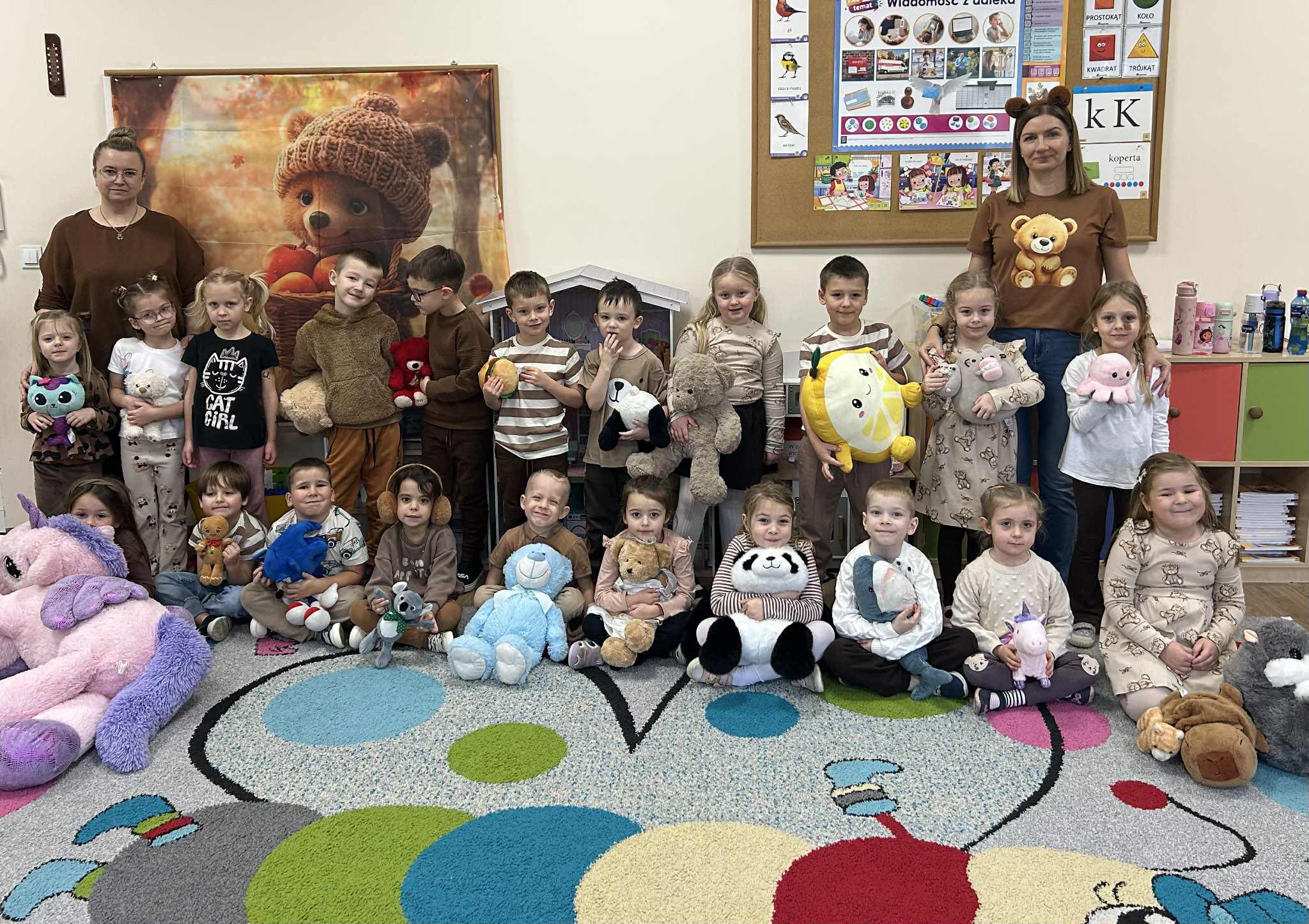 25 listopada obchodziliśmy jedno z najsłodszych i najbardziej lubianych przez dzieci świąt - Dzień Pluszowego Misia! To była doskonała okazja, by dzieci mogły przynieść do przedszkola miękkich, pluszowych przyjaciół i wspólnie z nimi celebrować przyjaźń, ciepło i dziecięcą radość. Tego dnia było mnóstwo uśmiechu, dobrej zabawy i wspólnych przeżyć - a to najważniejsze w tym wyjątkowym dniu.