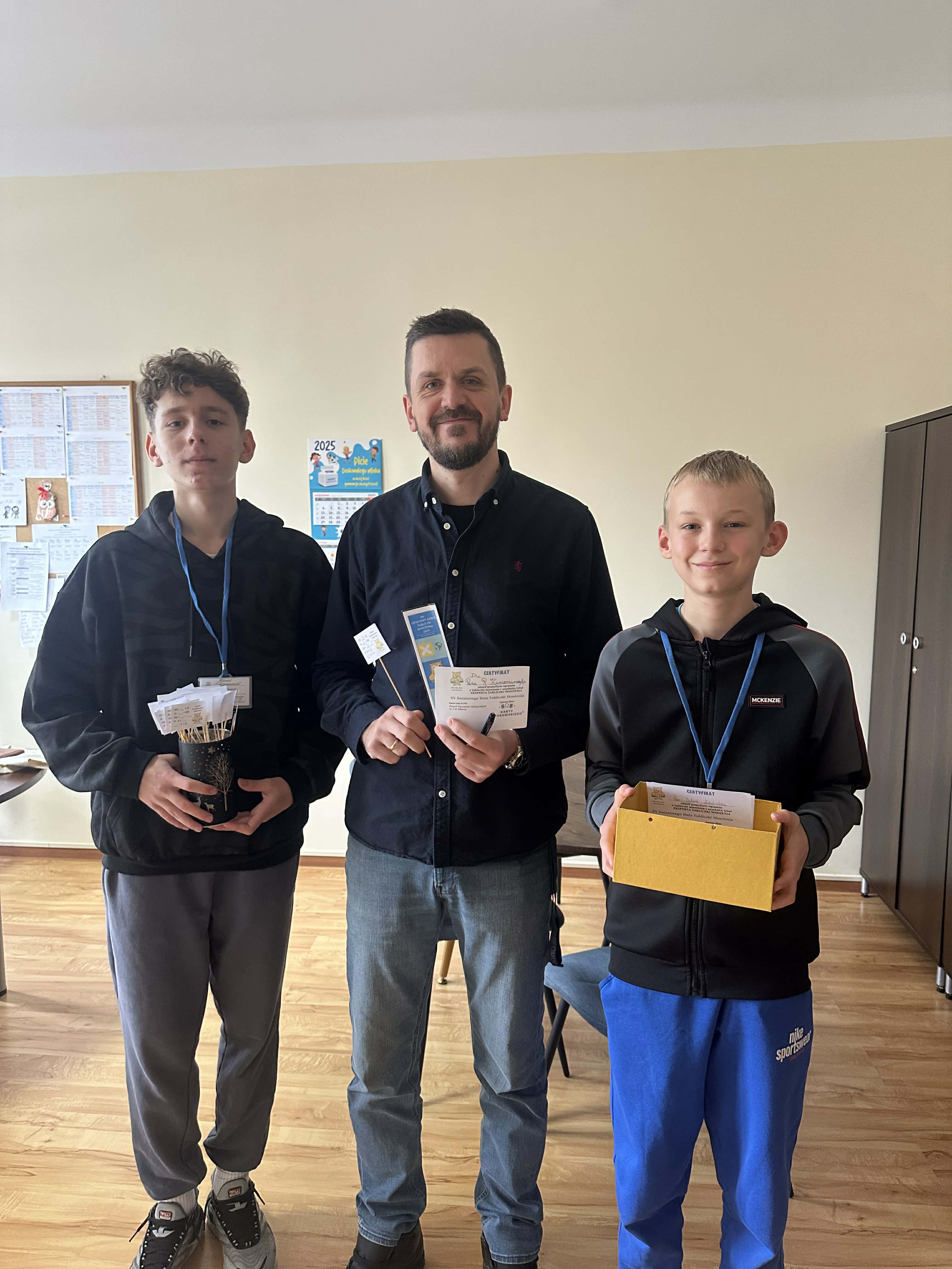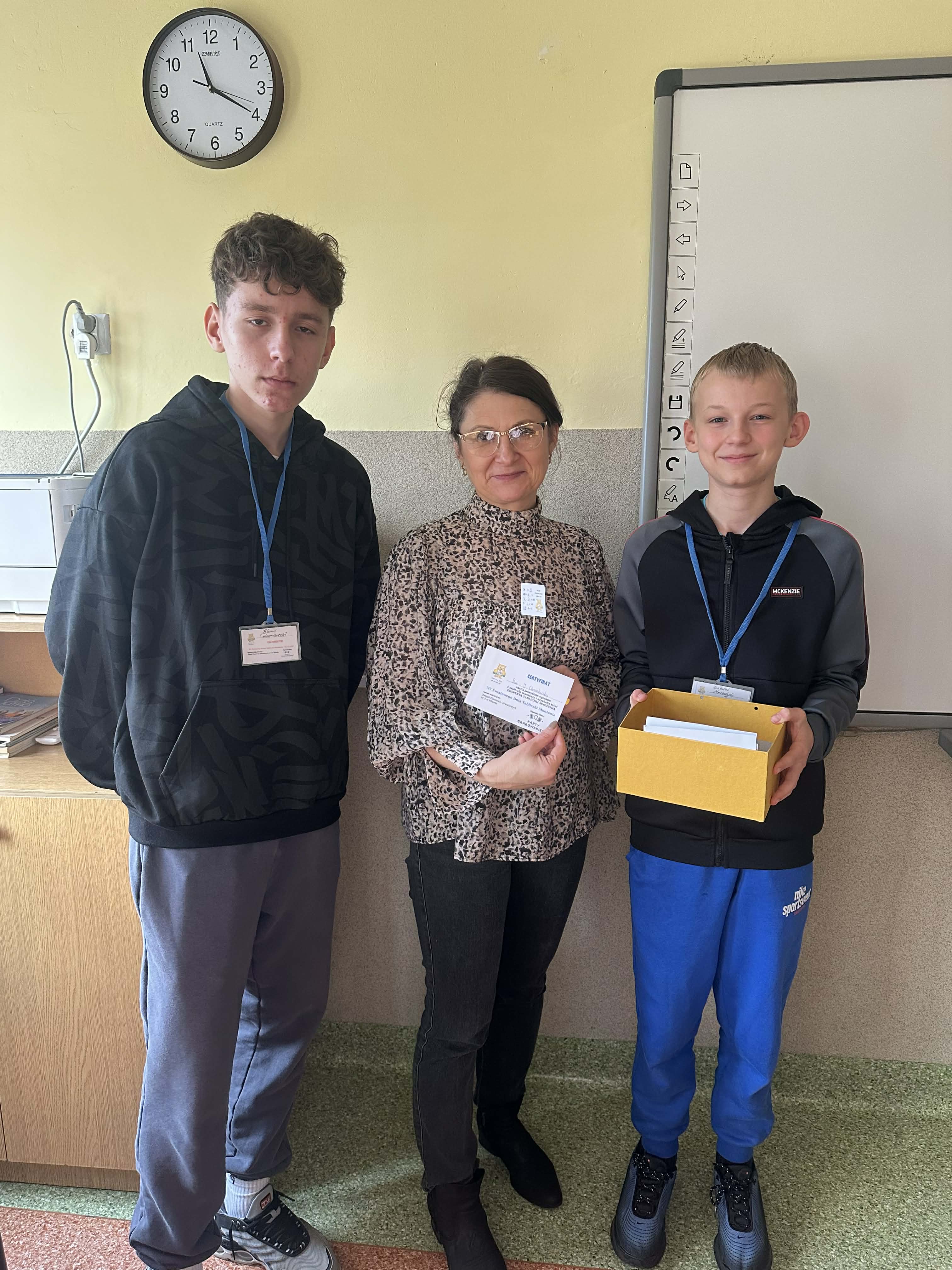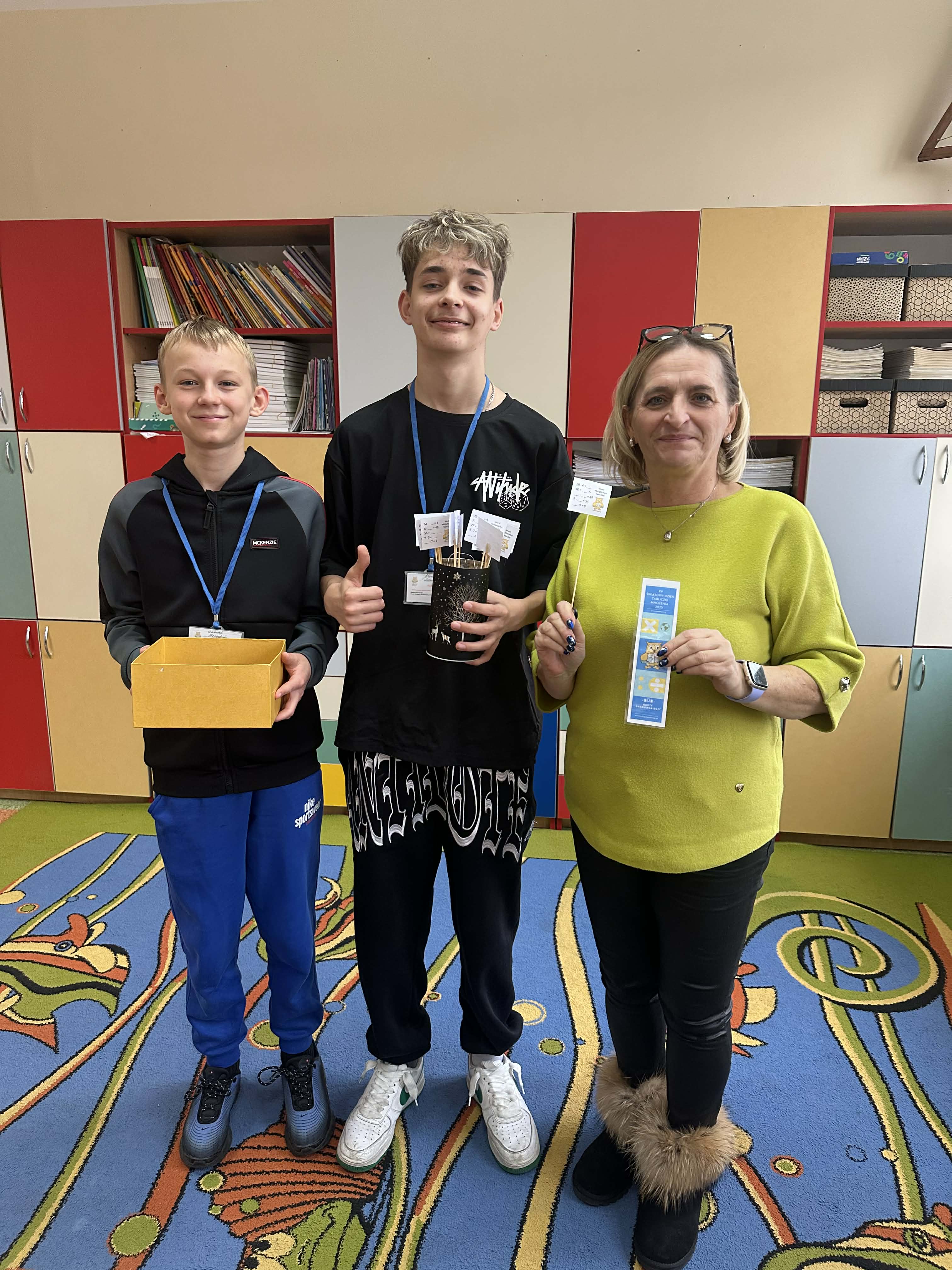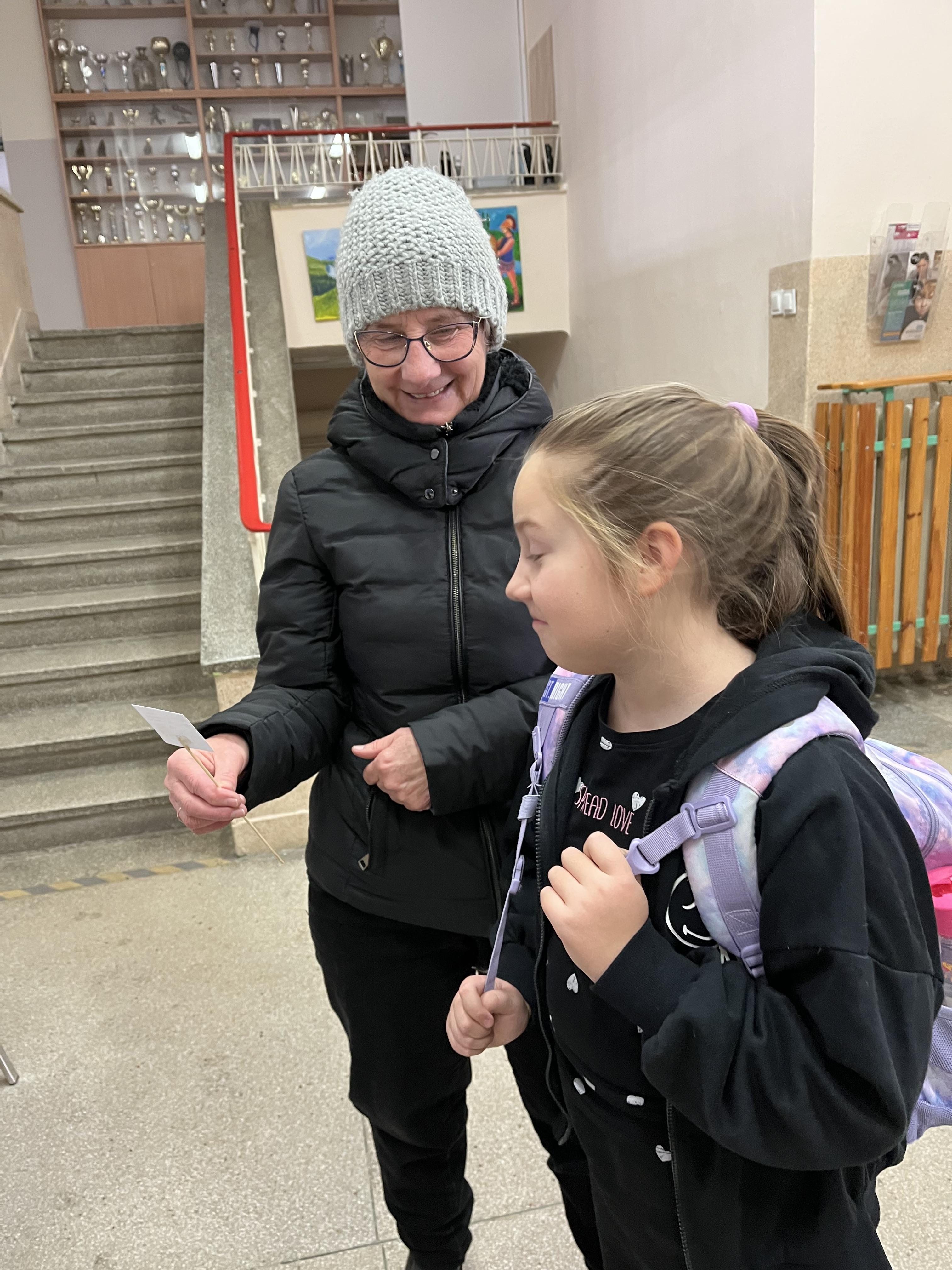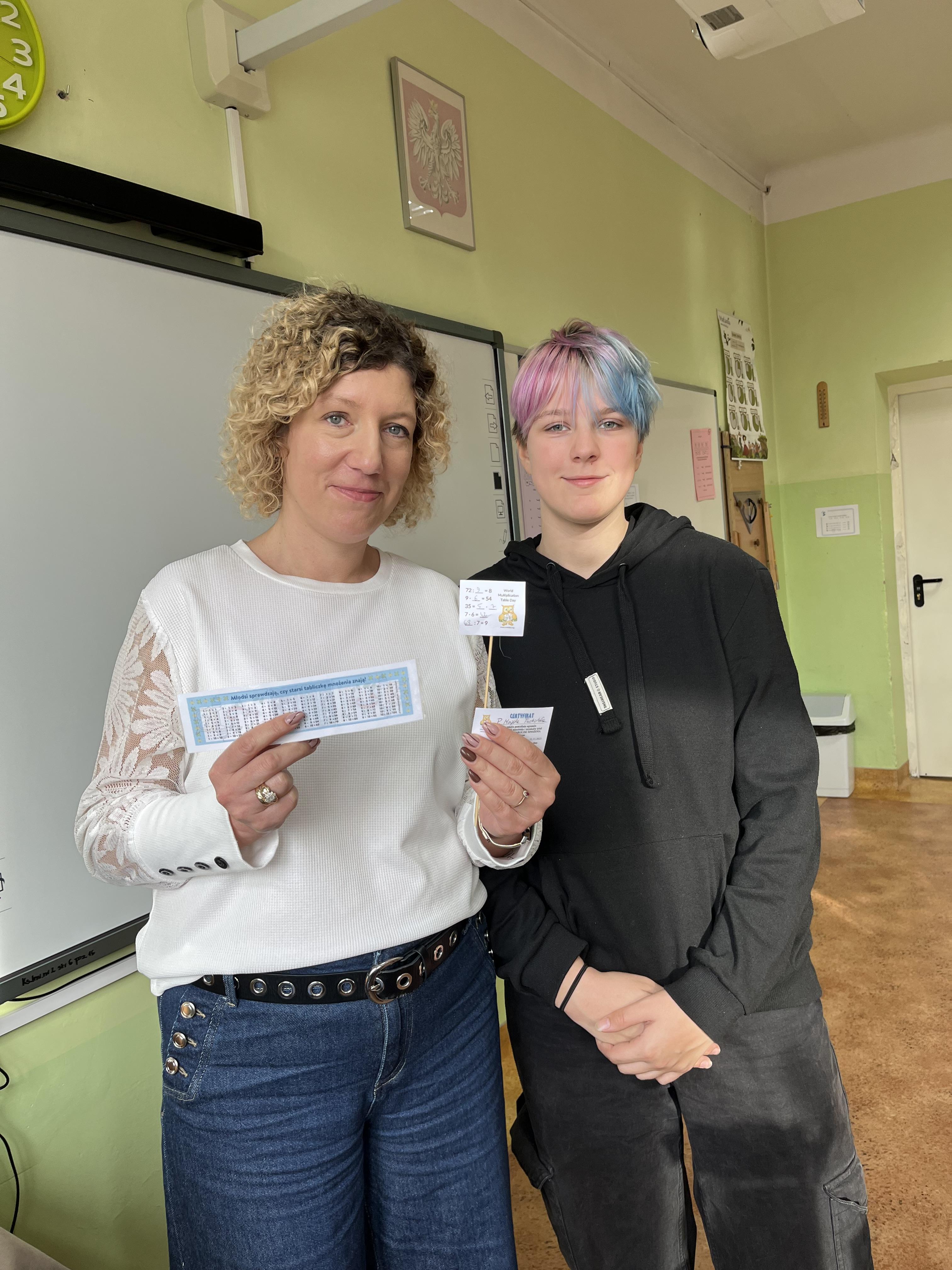 Dodatkowo grupa uczniów–egzaminatorów wyruszyła poza teren szkoły, aby włączyć do zabawy lokalną społeczność. Przechodnie podejmowali wyzwanie, a atmosfera wspólnej zabawy sprawiła, że matematyka na chwilę zagościła także na ulicach naszej dzielnicy.