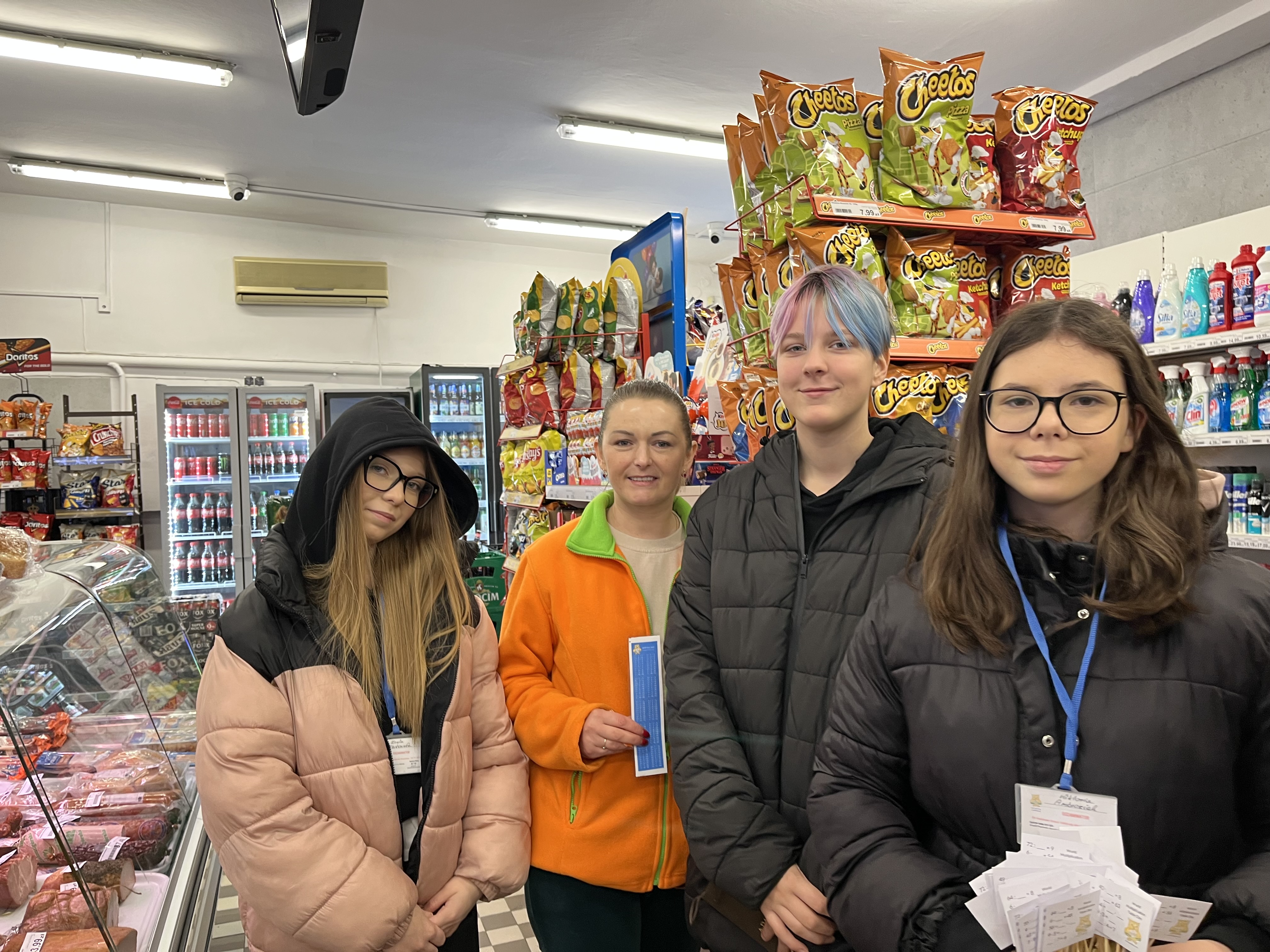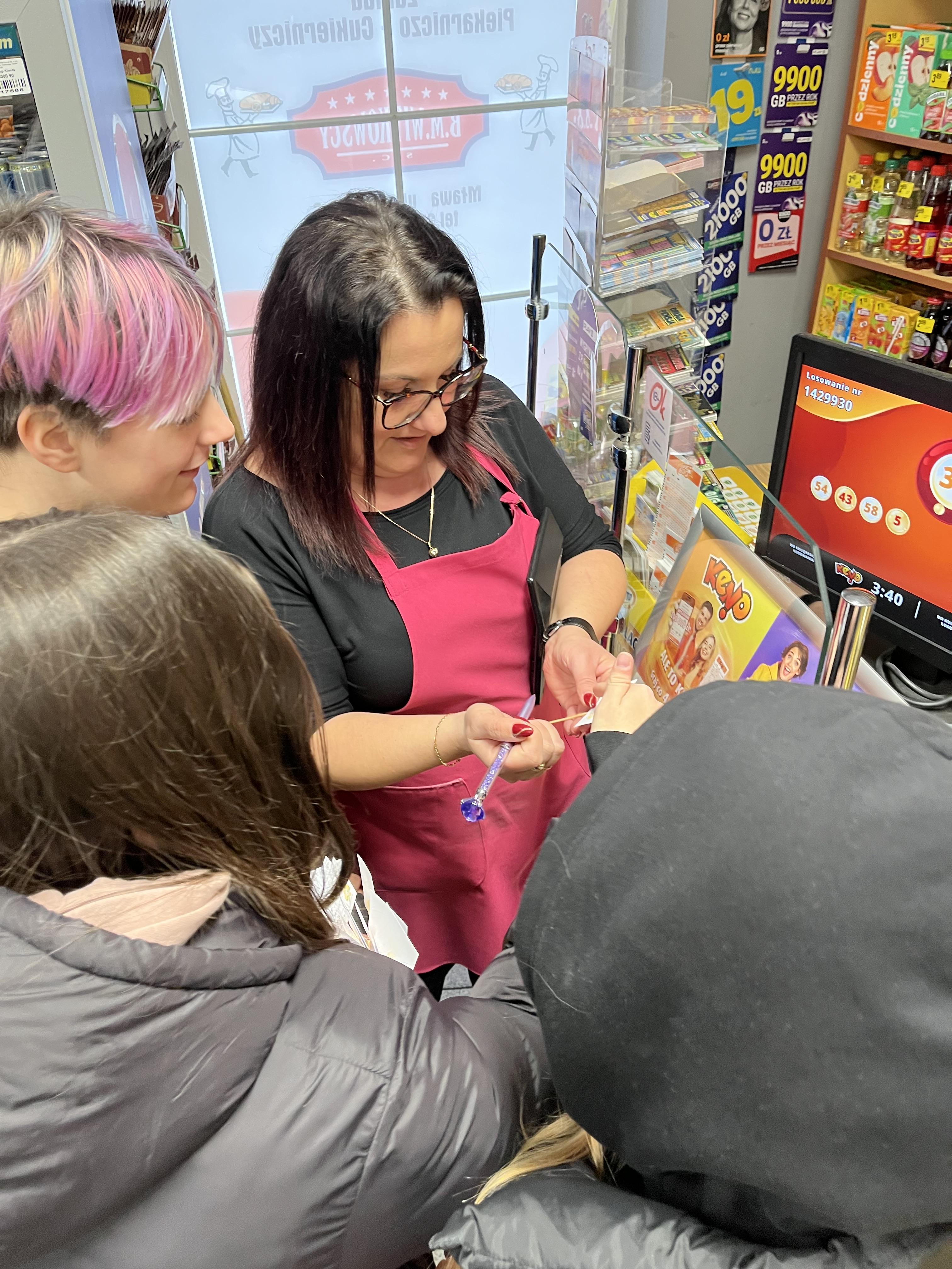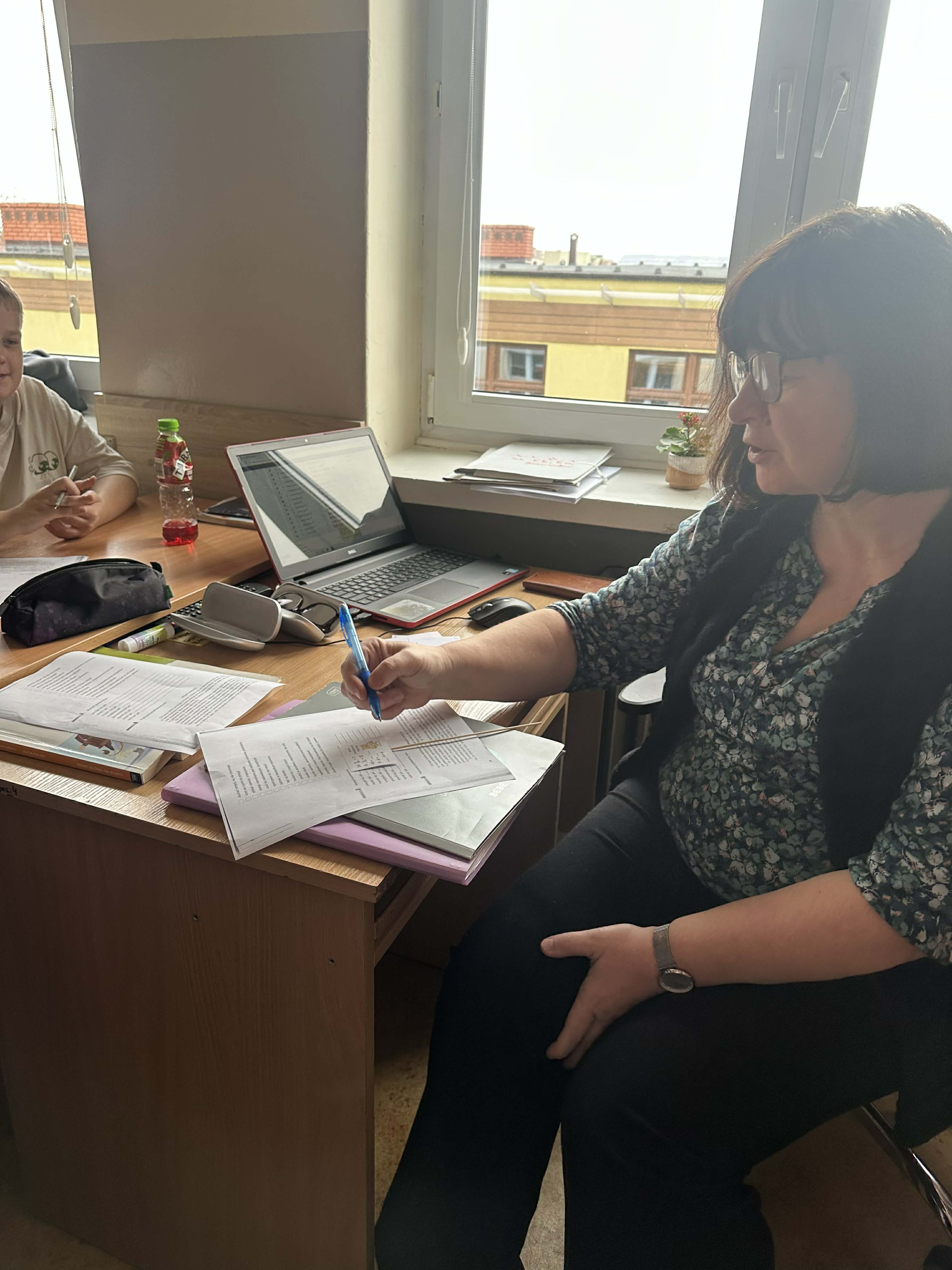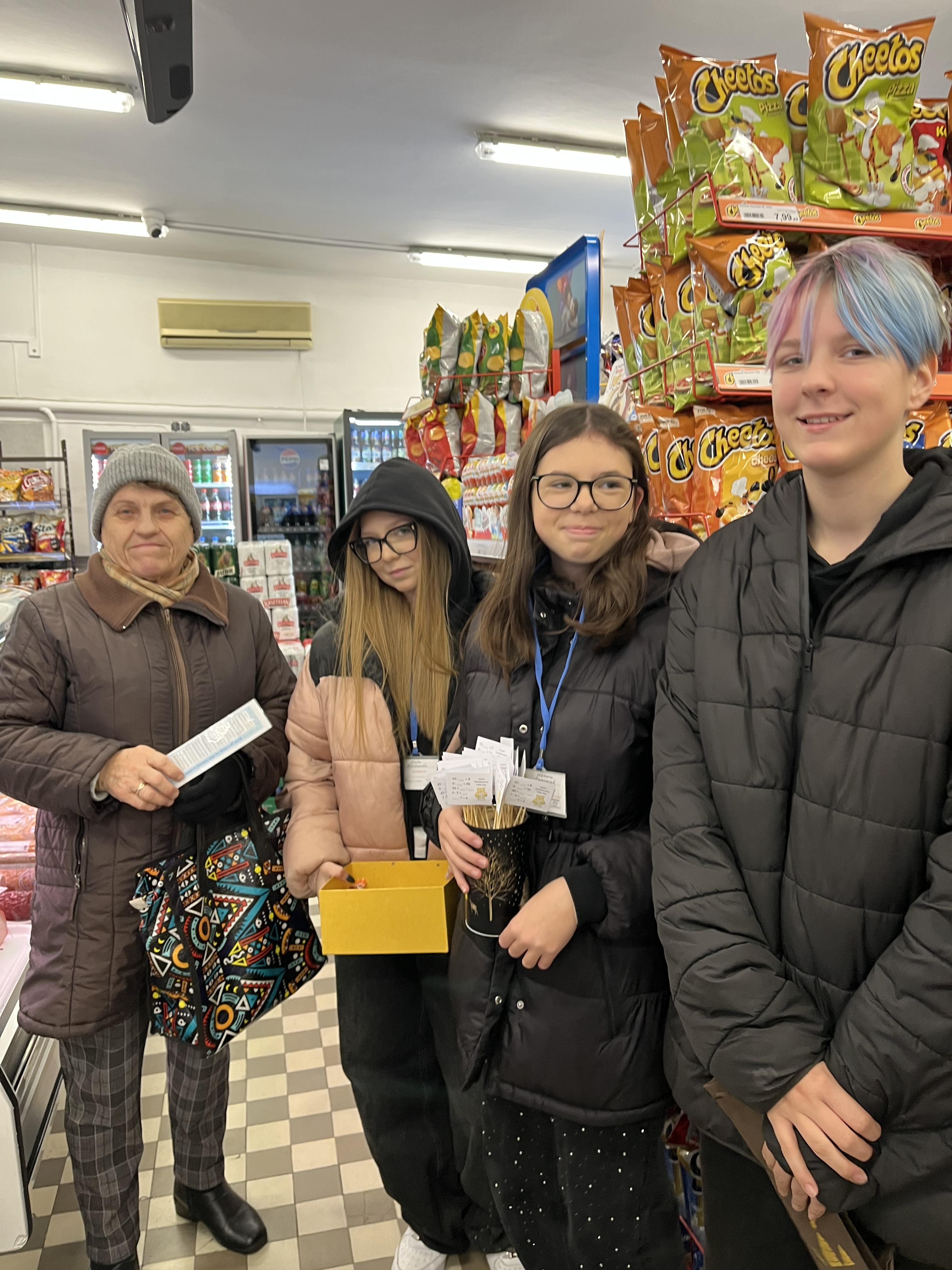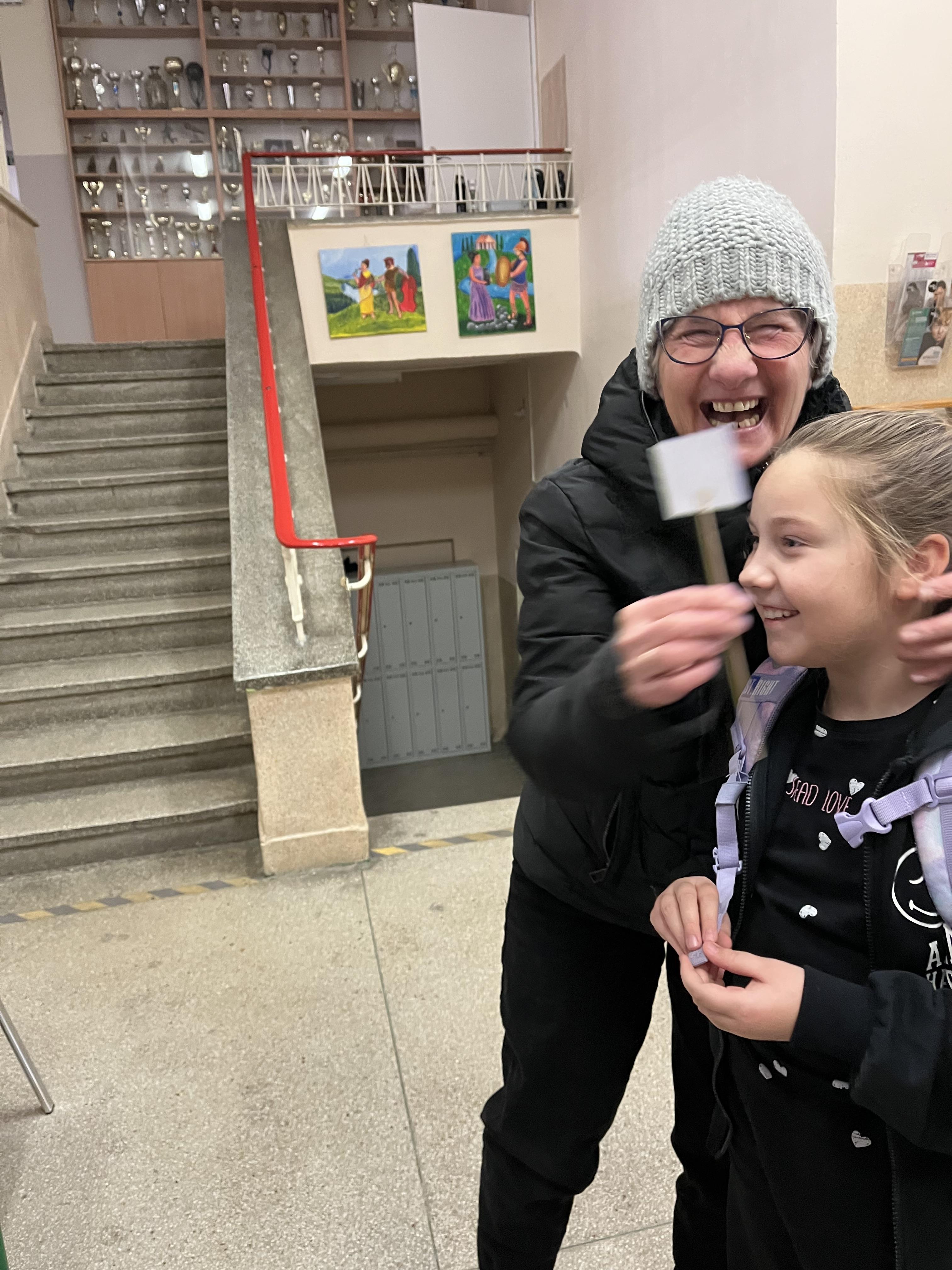 Dodatkowo grupa uczniów–egzaminatorów wyruszyła poza teren szkoły, aby włączyć do zabawy lokalną społeczność. Przechodnie podejmowali wyzwanie, a atmosfera wspólnej zabawy sprawiła, że matematyka na chwilę zagościła także na ulicach naszej dzielnicy.