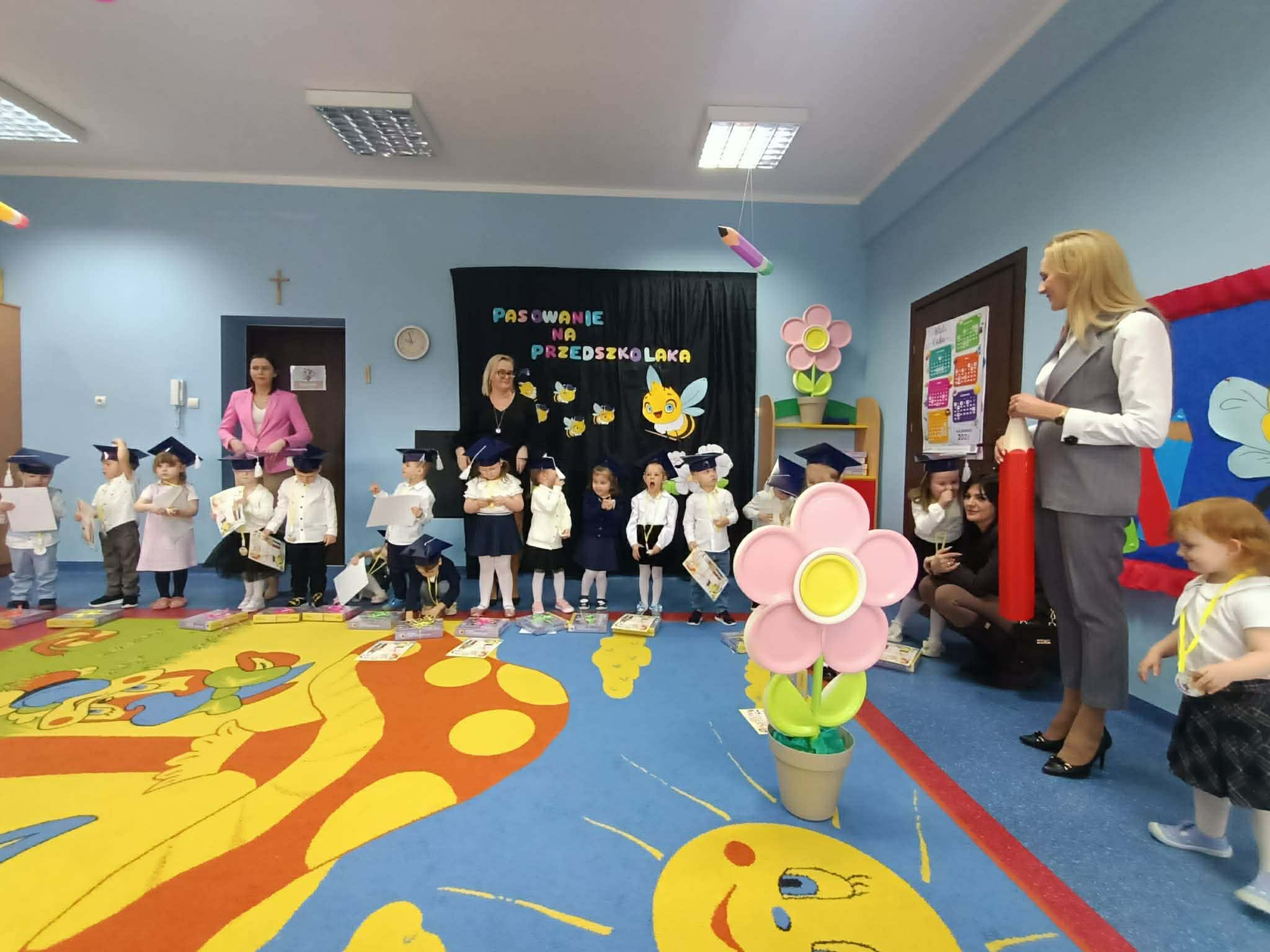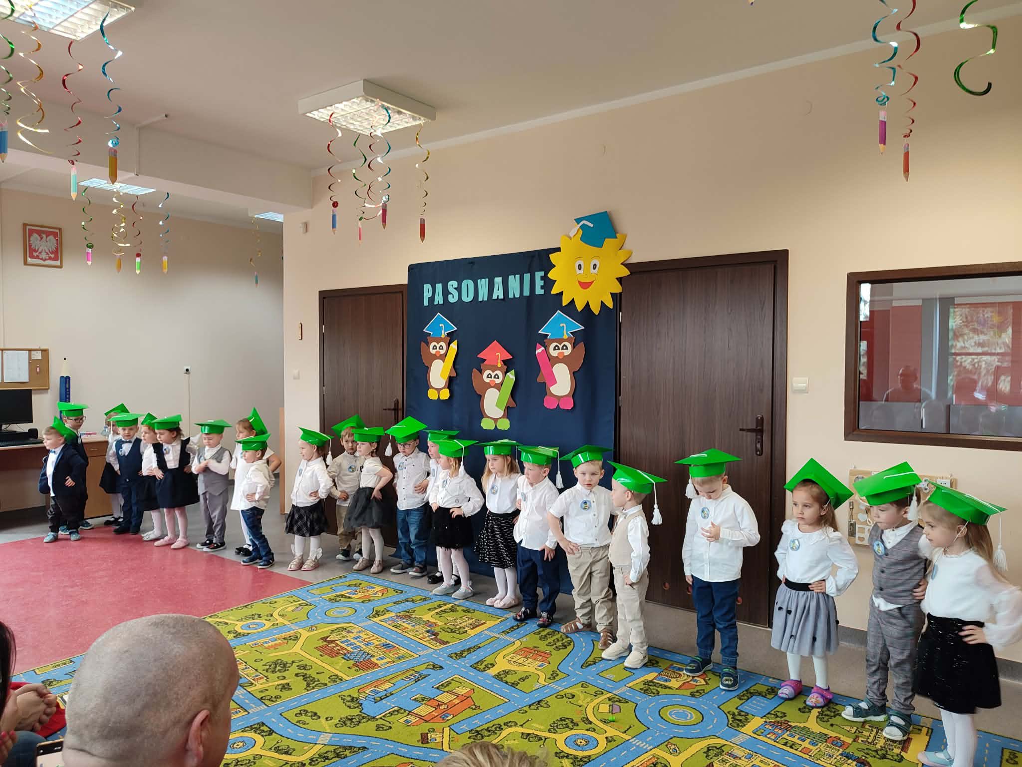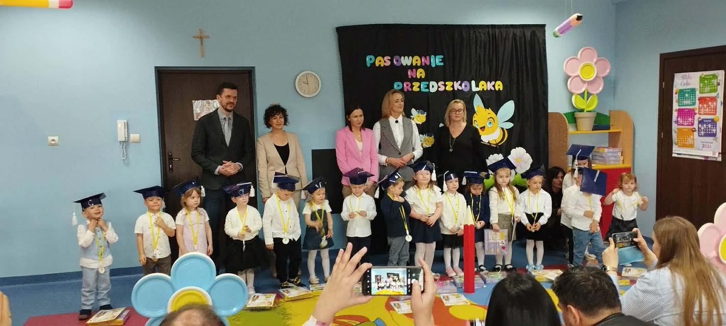 Pasowanie na przedszkolaka to wyjątkowa uroczystość dla naszych najmłodszych dzieci, która odbyła się 25 marca. Bohaterami wydarzenia były dzieci z grupy Pszczółki i Żabki. Tego dnia zostały uroczyście Pasowane na Przedszkolaka. Dzieci zaprezentowały program artystyczny - dając tym samym dowód, jak dużo już potrafią. Występując przed publicznością wykazały się nie tylko swoim umiejętnościami, ale również wielką odwagą. Był to dla nich pierwszy, bardzo ważny występ, ogromne przeżycie, a dla rodziców powód do dumy i zadowolenia ze swoich pociech. Następnie złożyły uroczyste ślubowanie, a Pani Dyrektor dokonała pasowania. Na pamiątkę tak ważnego wydarzenia, każdy nowo pasowany przedszkolak otrzymał pamiątkowy dyplom i upominek. Było to bardzo ważne wydarzenie w życiu naszych przedszkolaków. Niech ten dzień będzie początkiem wielu pięknych przygód - pełnych nauki, zabawy , przyjaźni i uśmiechów.