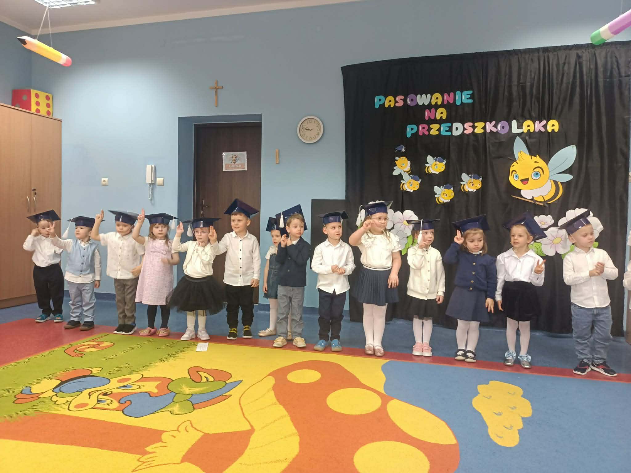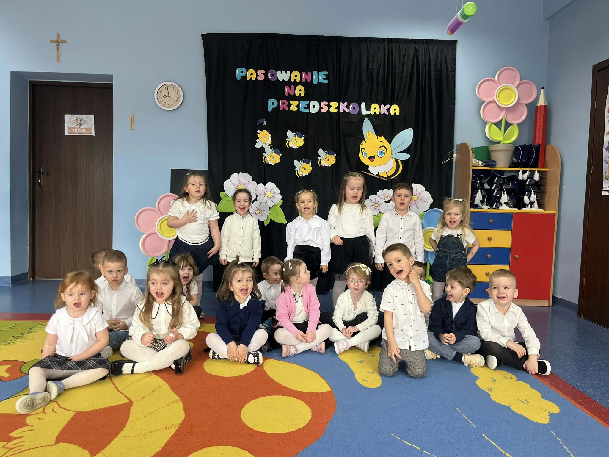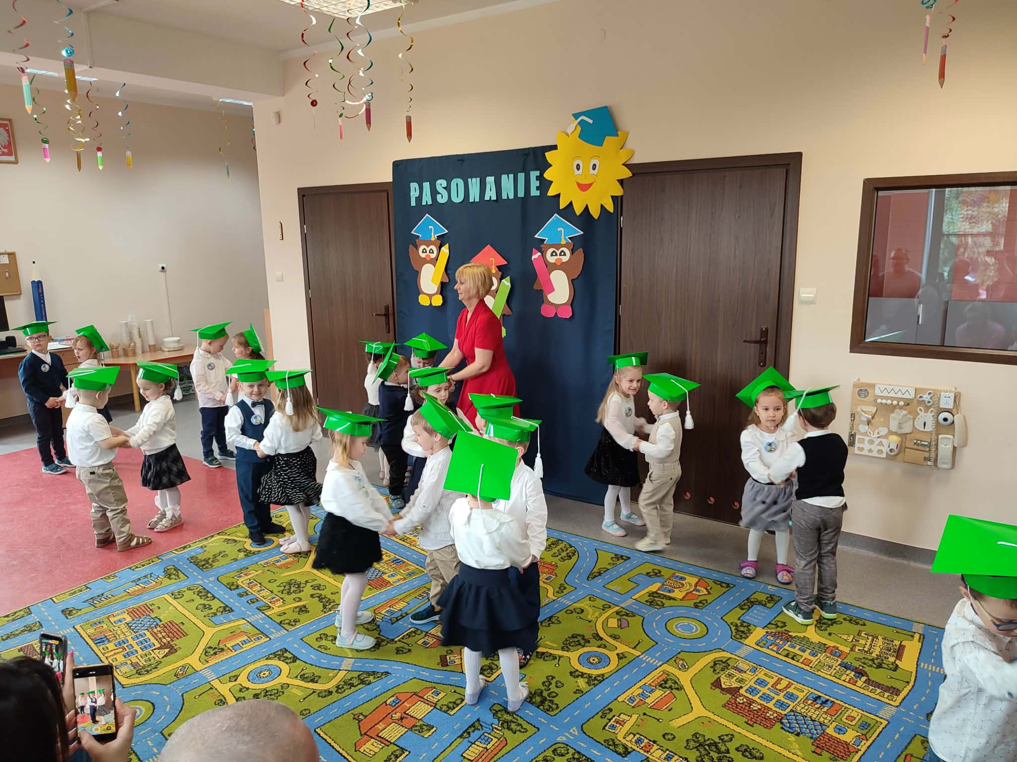 Pasowanie na przedszkolaka to wyjątkowa uroczystość dla naszych najmłodszych dzieci, która odbyła się 25 marca. Bohaterami wydarzenia były dzieci z grupy Pszczółki i Żabki. Tego dnia zostały uroczyście Pasowane na Przedszkolaka. Dzieci zaprezentowały program artystyczny - dając tym samym dowód, jak dużo już potrafią. Występując przed publicznością wykazały się nie tylko swoim umiejętnościami, ale również wielką odwagą. Był to dla nich pierwszy, bardzo ważny występ, ogromne przeżycie, a dla rodziców powód do dumy i zadowolenia ze swoich pociech. Następnie złożyły uroczyste ślubowanie, a Pani Dyrektor dokonała pasowania. Na pamiątkę tak ważnego wydarzenia, każdy nowo pasowany przedszkolak otrzymał pamiątkowy dyplom i upominek. Było to bardzo ważne wydarzenie w życiu naszych przedszkolaków. Niech ten dzień będzie początkiem wielu pięknych przygód - pełnych nauki, zabawy , przyjaźni i uśmiechów.
