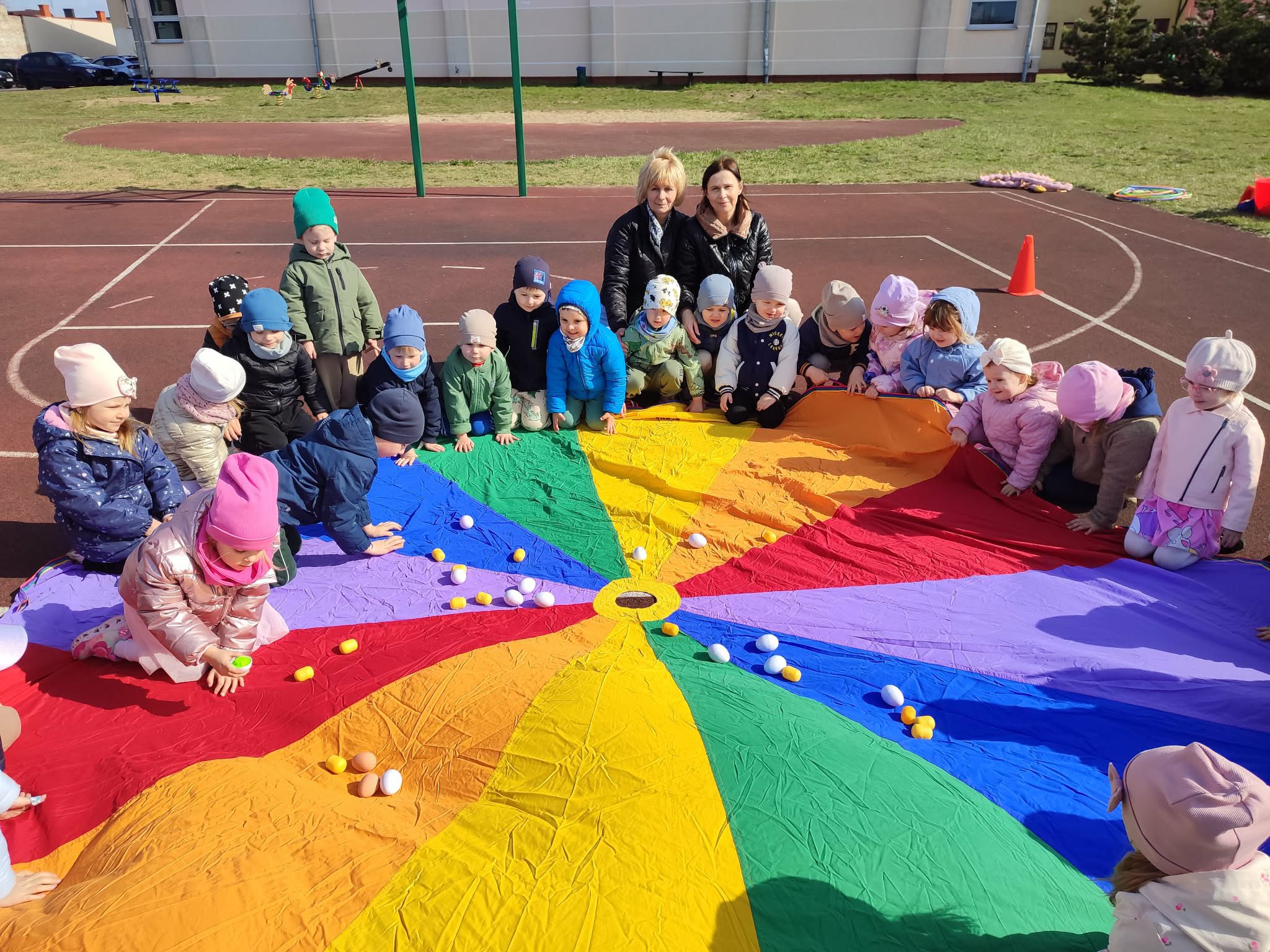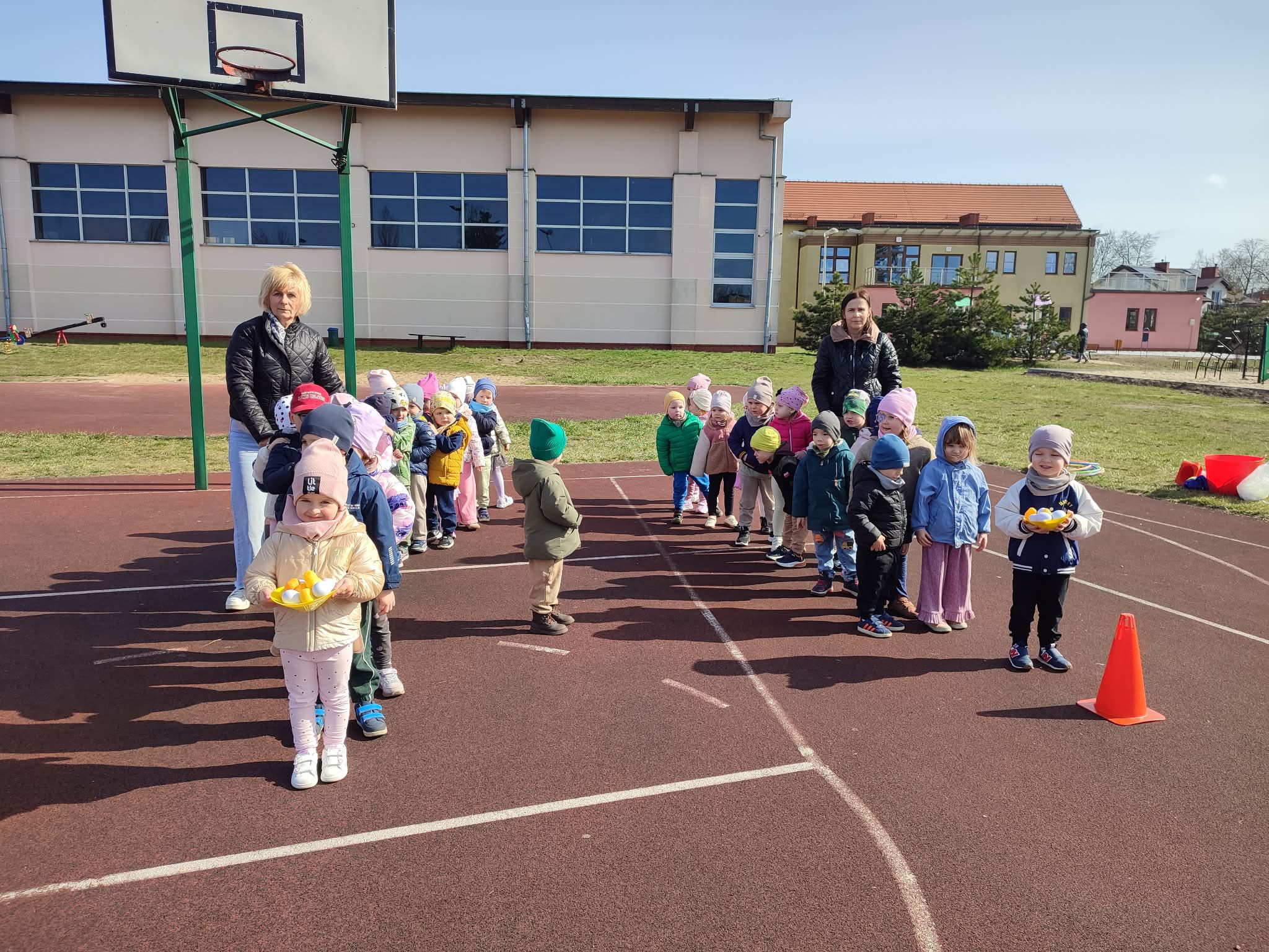 Wielkanoc to radosny czas pełen tradycji, kolorów i wspólnych aktywności. Dzieci z grupy Żabki i Pszczółki miały więc doskonalą okazję do połączenia zabaw ruchowych z tradycją świąteczną. Wesołe gry i konkurencje sportowe wprowadziły dzieci w świąteczny nastrój i wspólne świętowanie. Wyścigi z jajkiem na łyżce, skoki zajączków i zbieranie jajeczek sprawiły naszym przedszkolakom wiele radości i pozwoliły im spożytkować nadmiar energii.