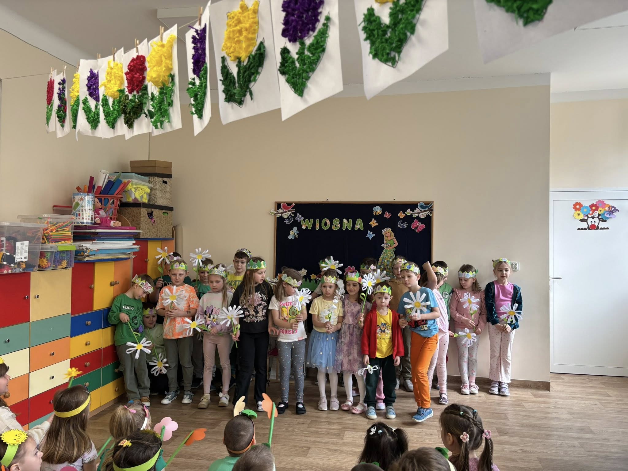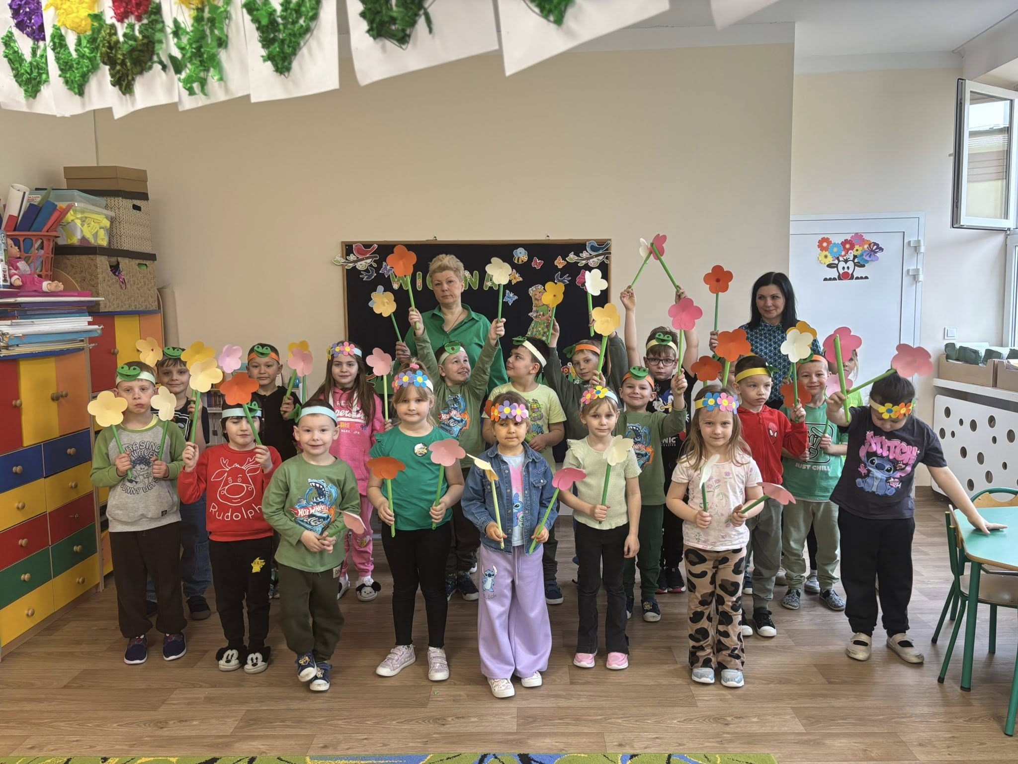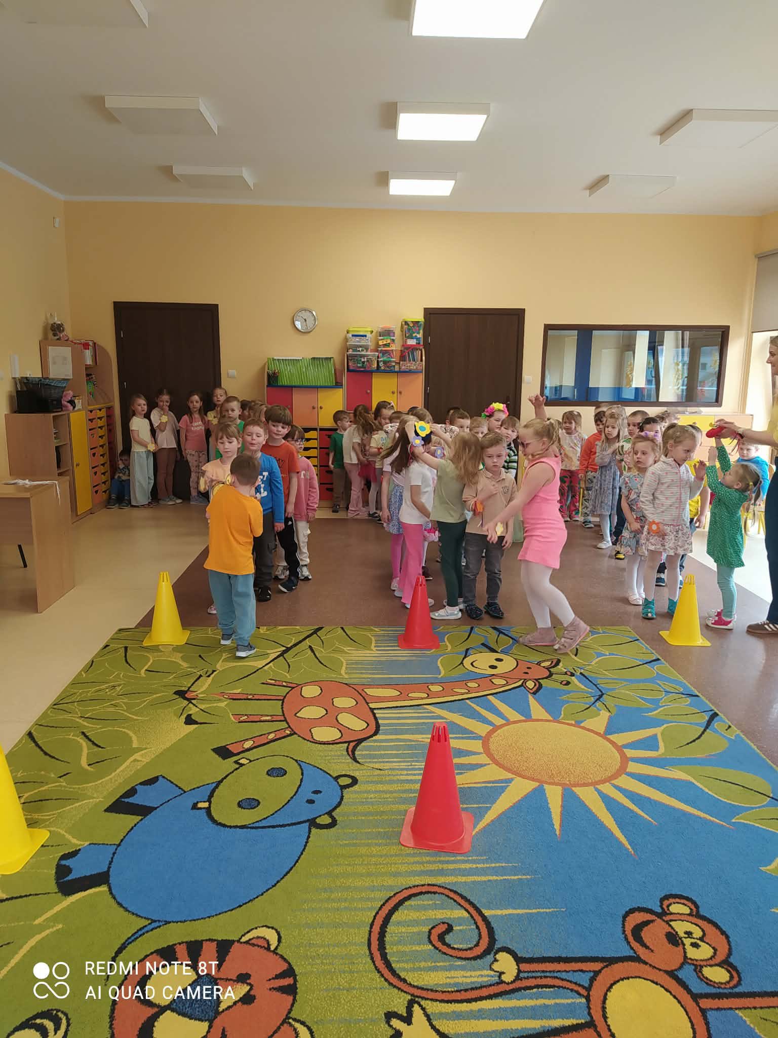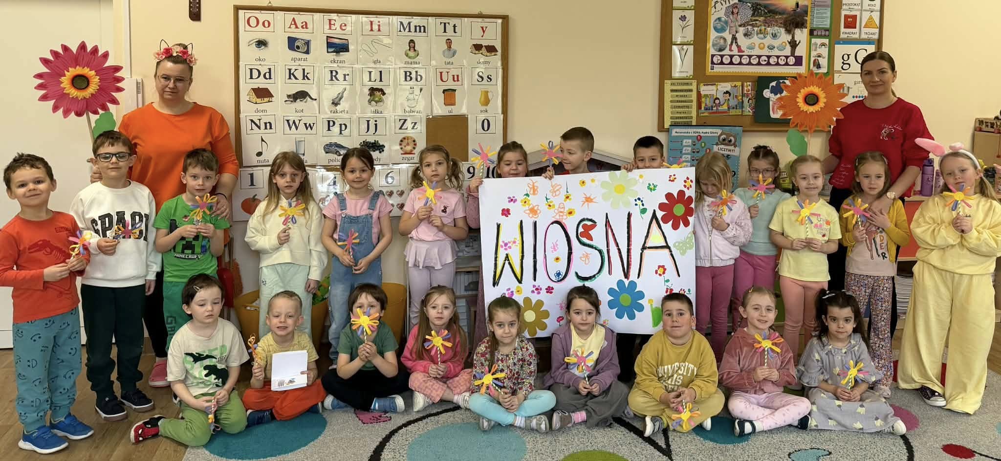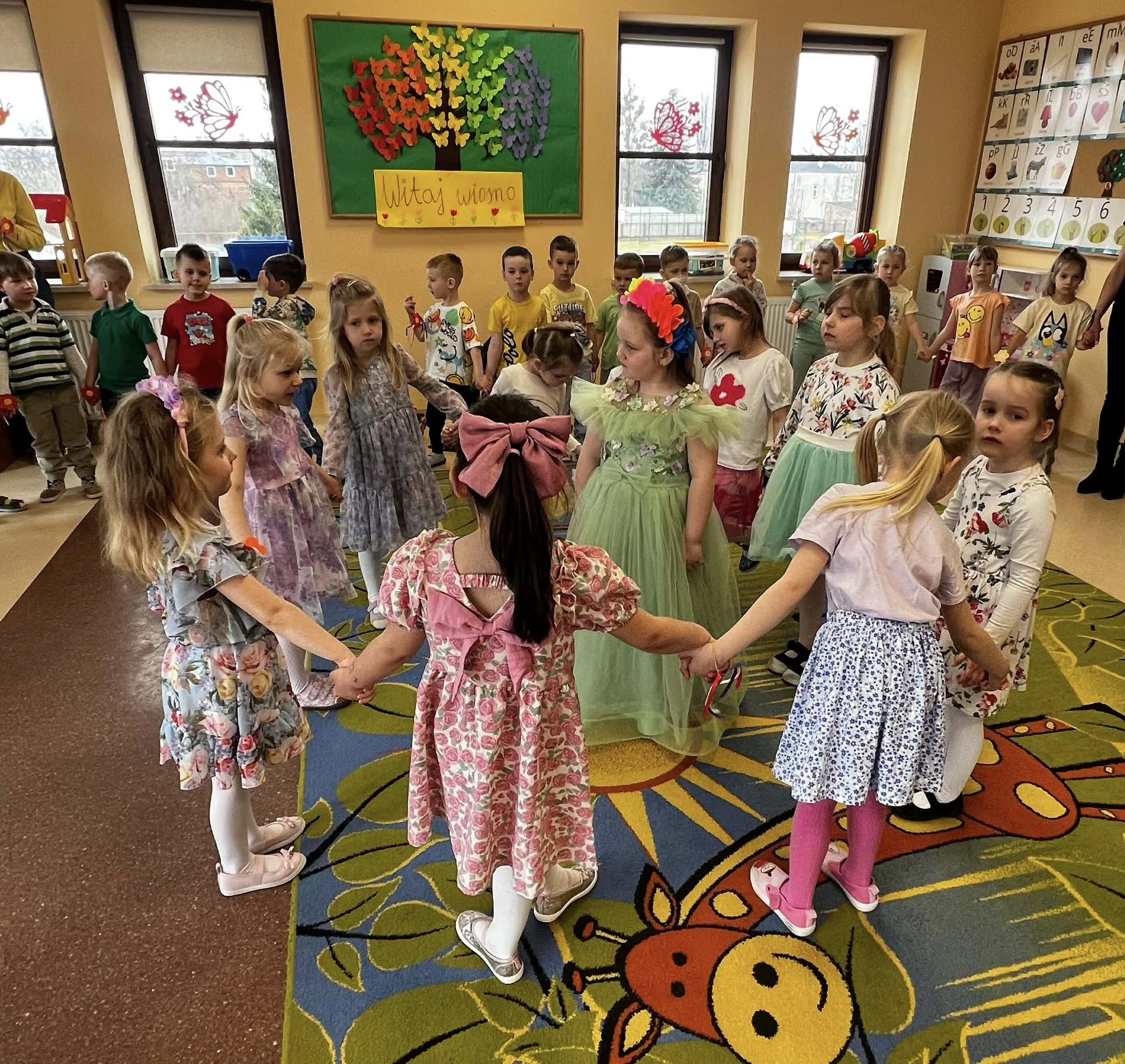 Dziś, z okazji 21 marca, dzieci z przedszkola radośnie powitały pierwszy dzień wiosny. Z tej okazji przygotowano dla nich wiele atrakcji - odbyły się konkurencje sportowe, były wiosenne zagadki, tańce oraz tematyczne prace plastyczne. Nie zabrakło również spaceru, podczas którego przedszkolaki z zaciekawieniem szukały pierwszych oznak wiosny w przyrodzie. Był to bardzo miły i pełen uśmiechu dzień. Cieszymy się, że wiosna już do nas zawitała!