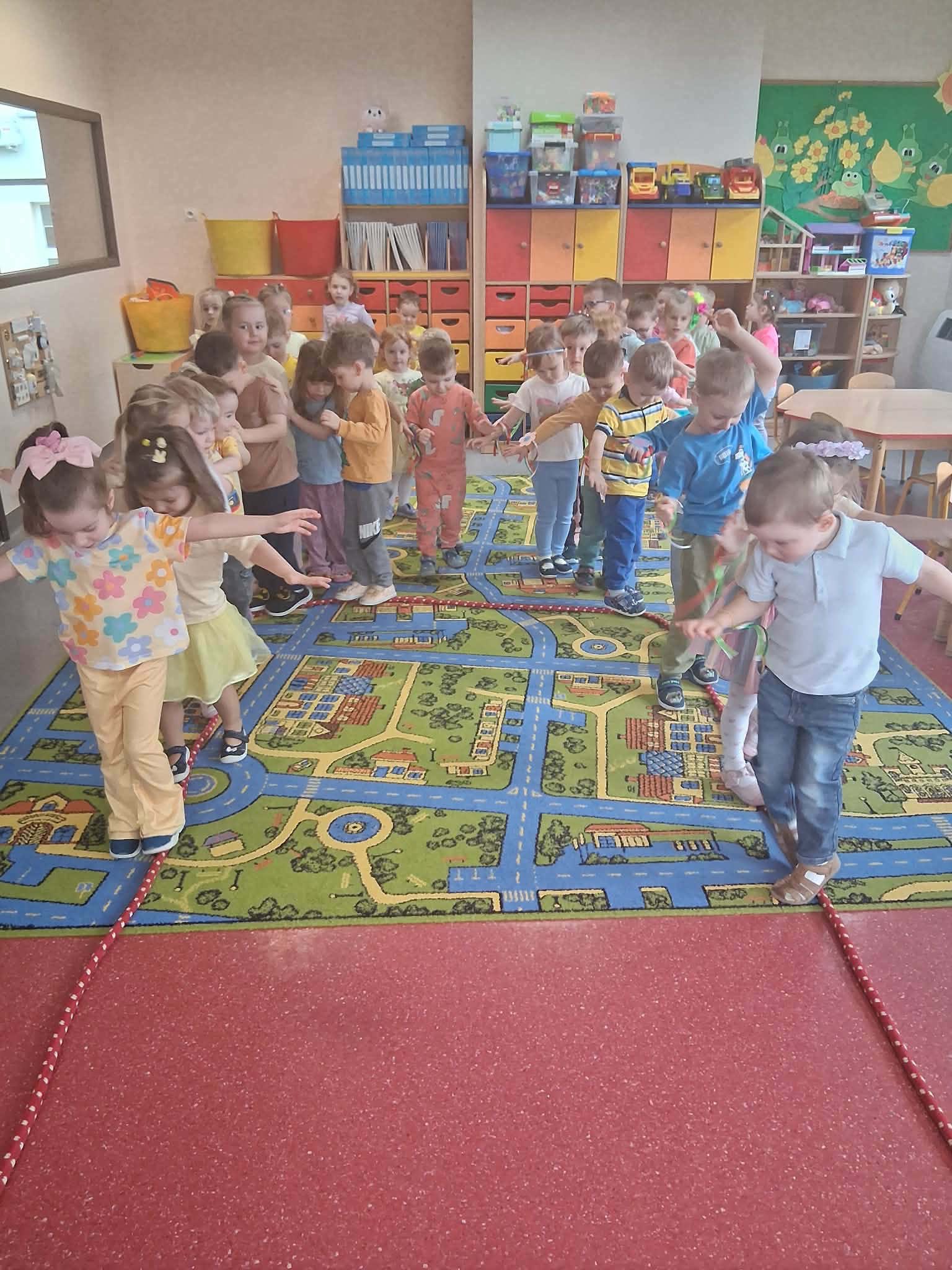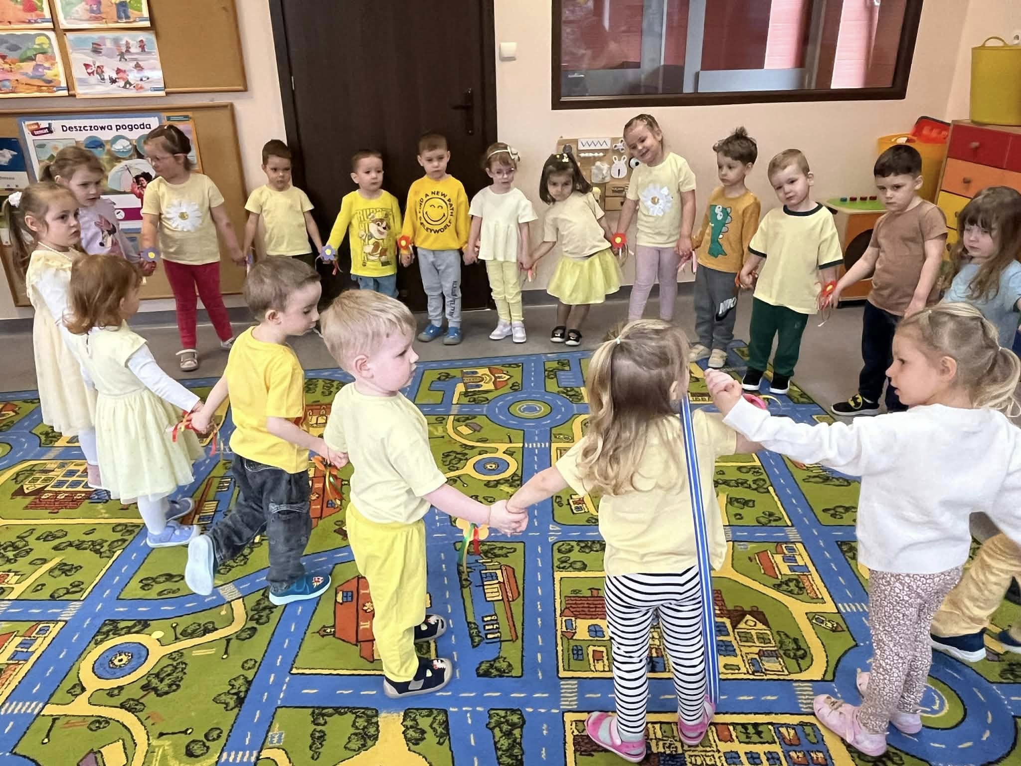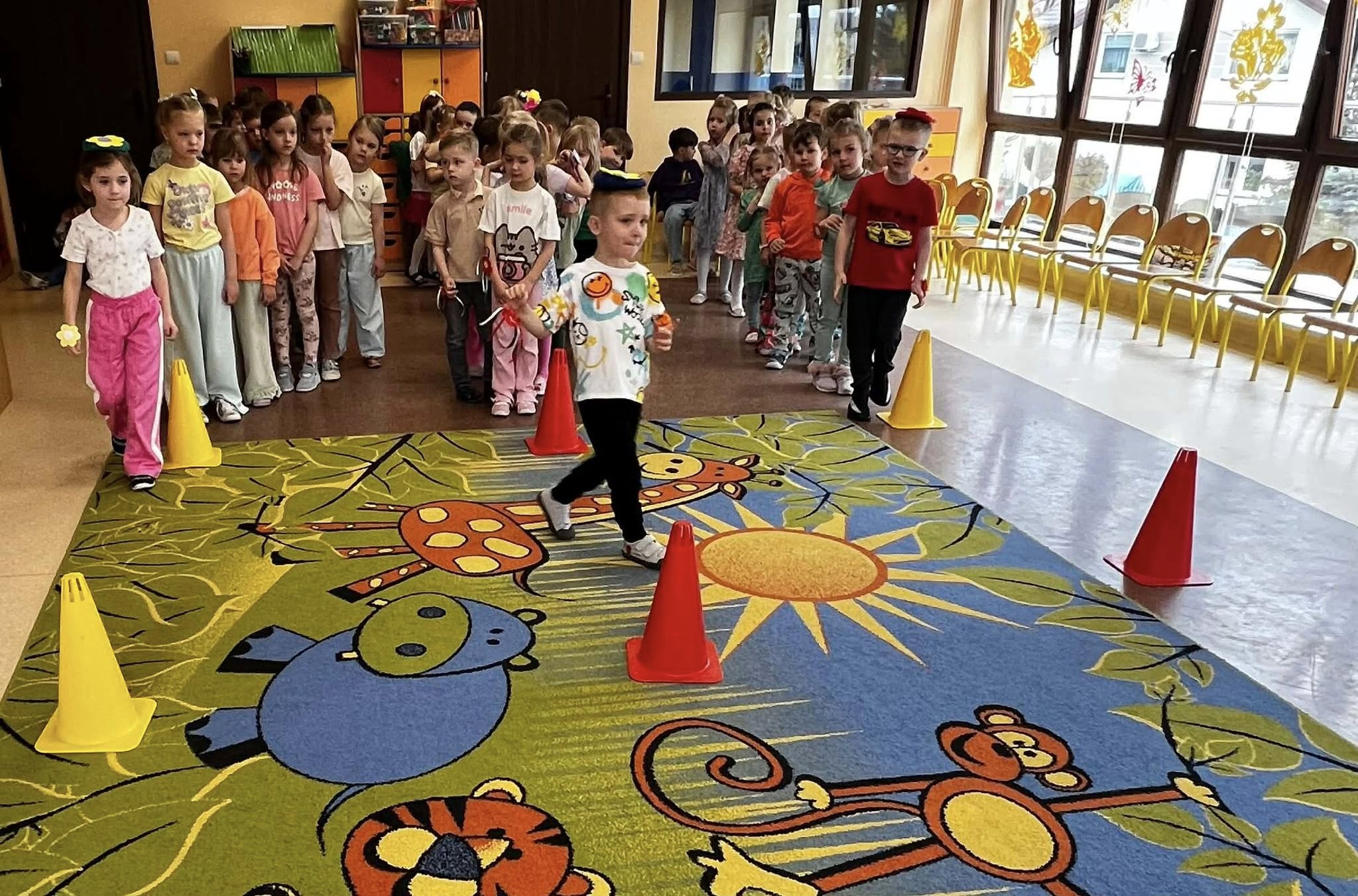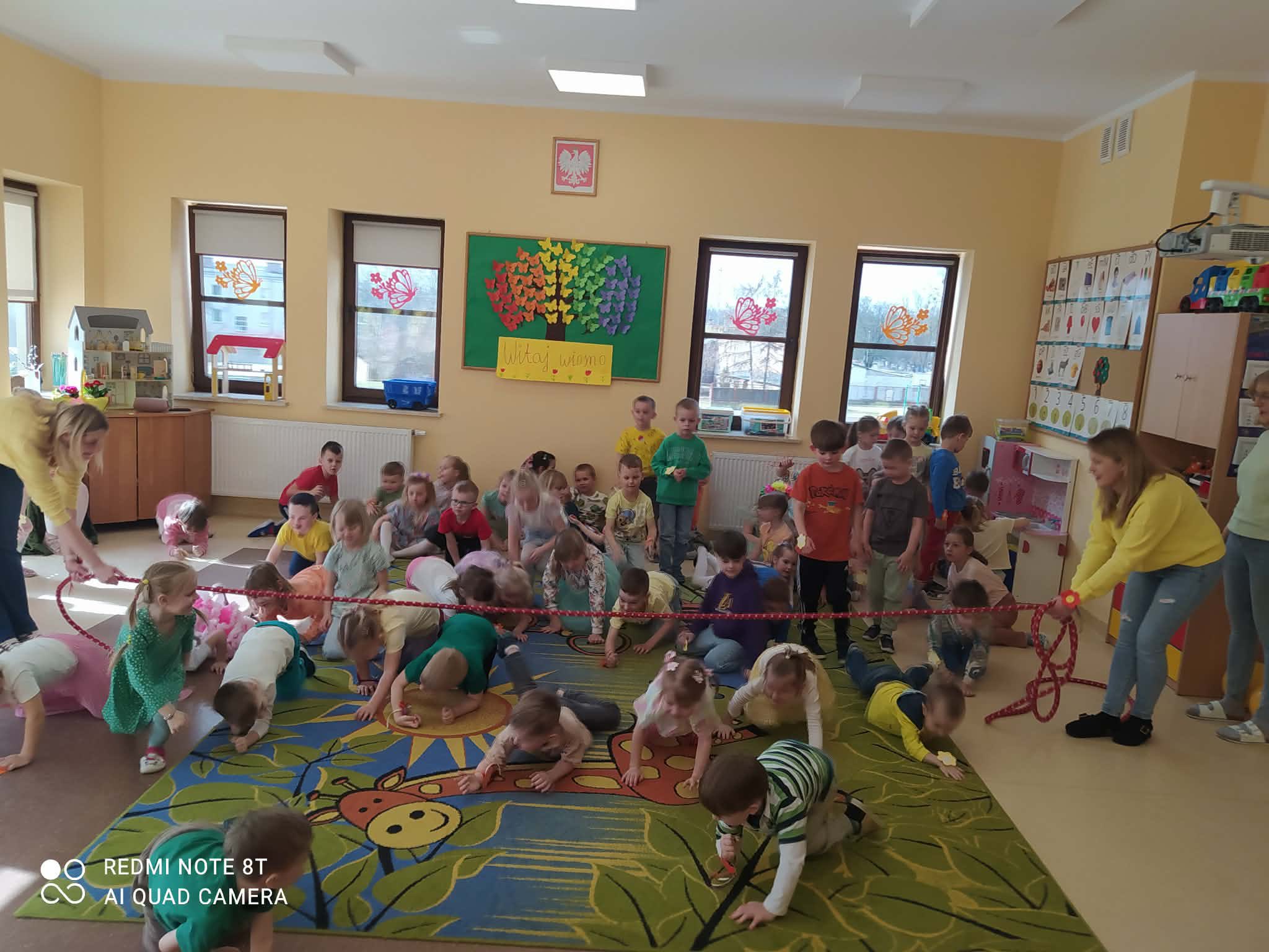Dziś, z okazji 21 marca, dzieci z przedszkola radośnie powitały pierwszy dzień wiosny. Z tej okazji przygotowano dla nich wiele atrakcji - odbyły się konkurencje sportowe, były wiosenne zagadki, tańce oraz tematyczne prace plastyczne. Nie zabrakło również spaceru, podczas którego przedszkolaki z zaciekawieniem szukały pierwszych oznak wiosny w przyrodzie. Był to bardzo miły i pełen uśmiechu dzień. Cieszymy się, że wiosna już do nas zawitała!