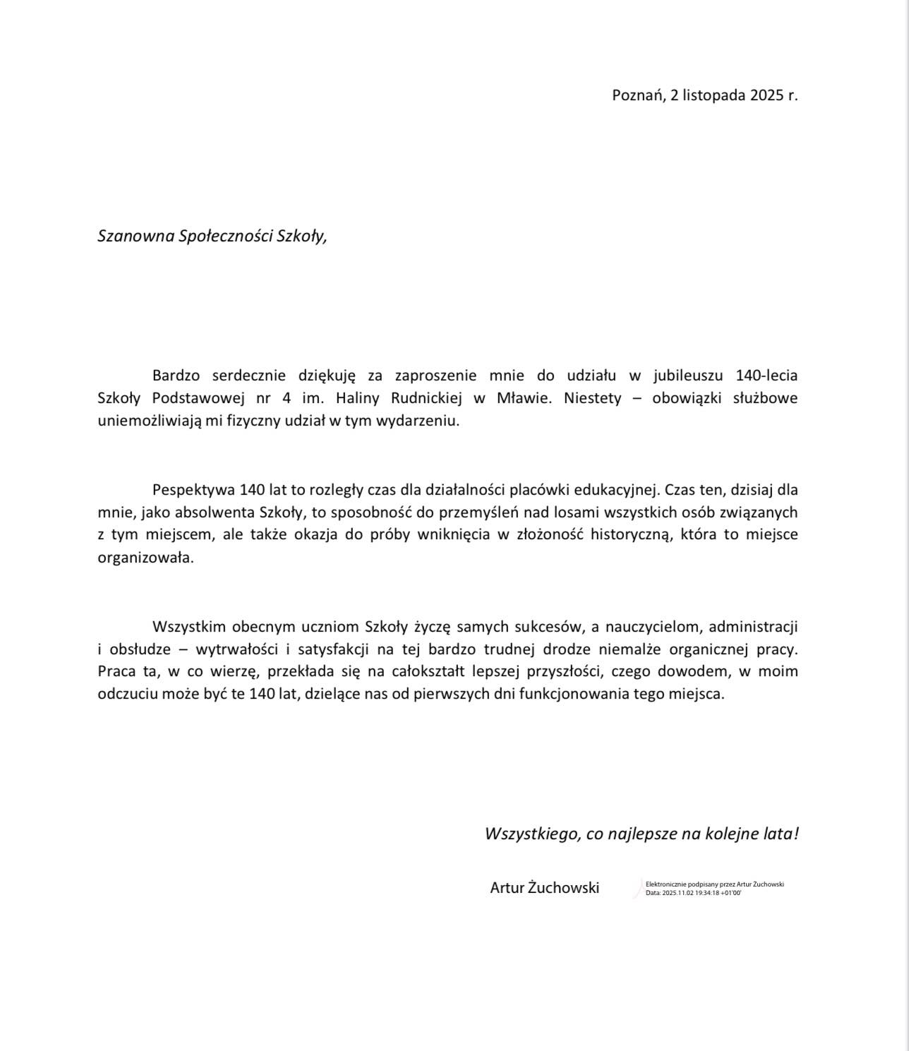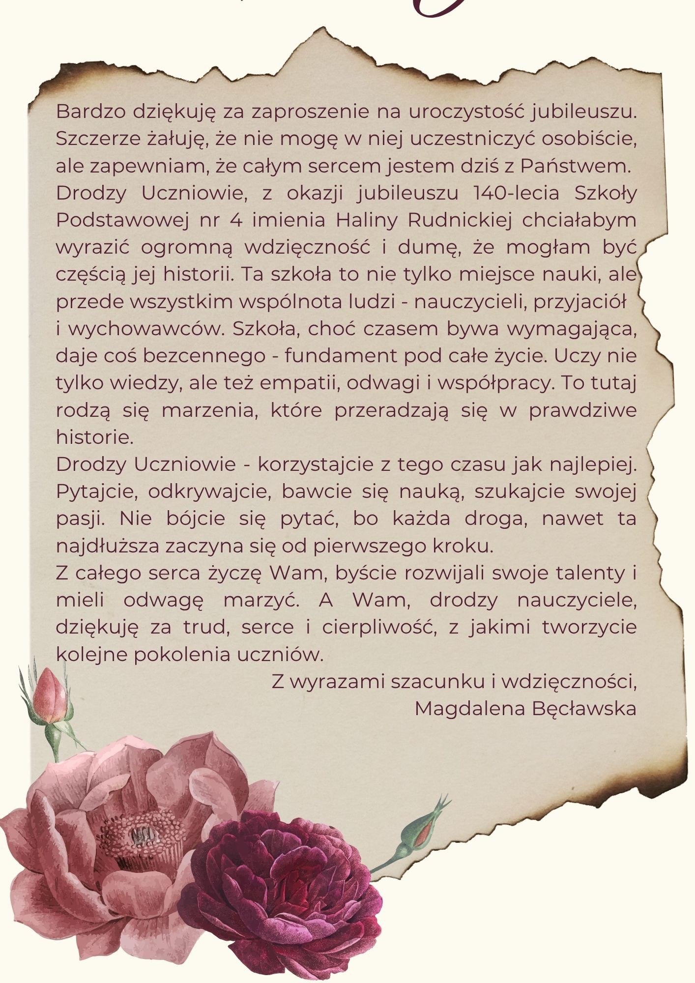 Z całego serca dziękujemy wszystkim Absolwentom, którzy – mimo że nie mogli być z nami osobiście podczas jubileuszowych uroczystości – przesłali ciepłe słowa, życzenia i wspomnienia.