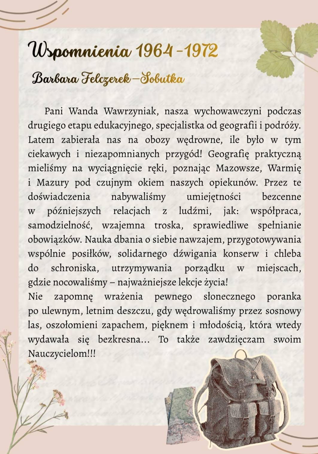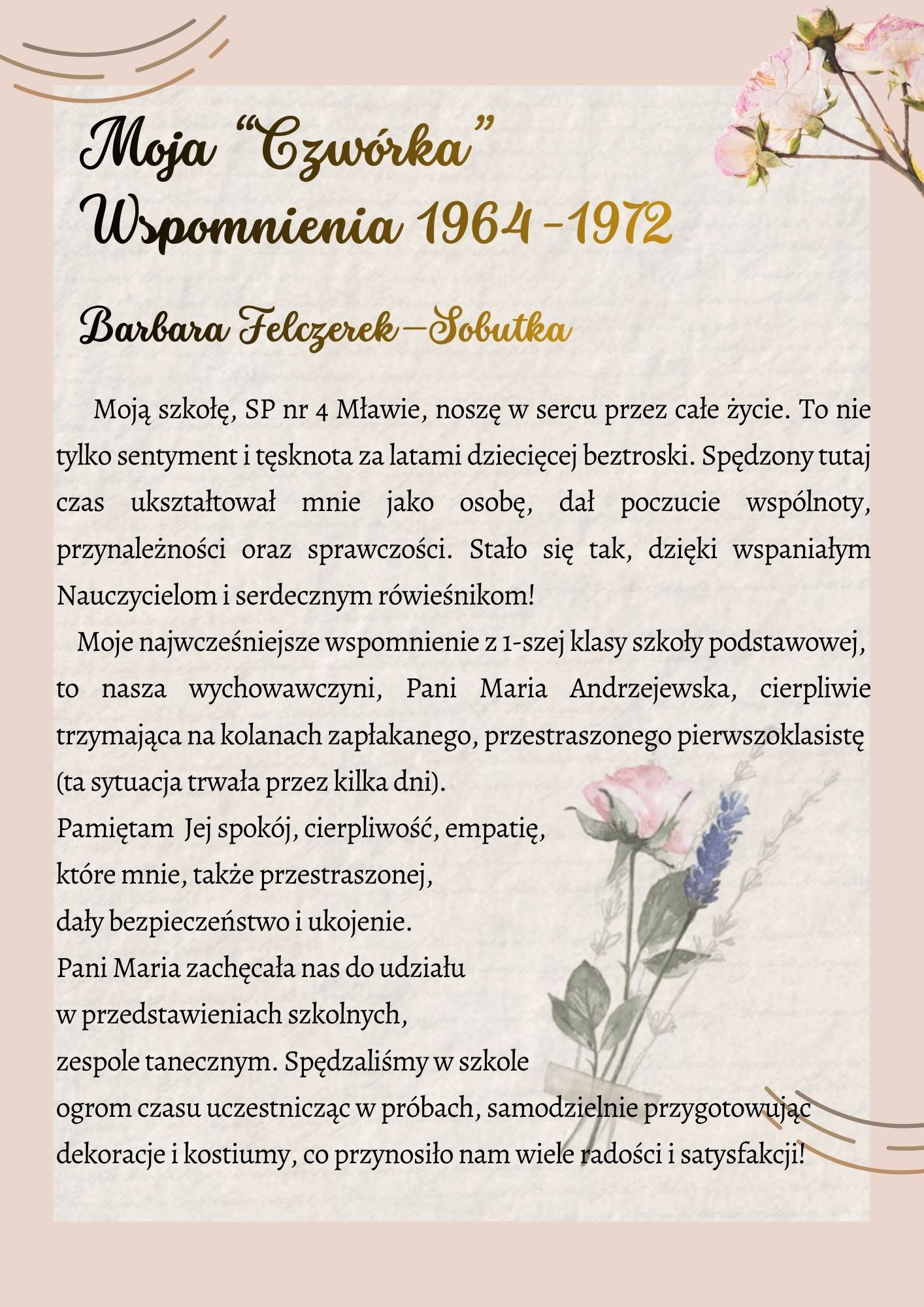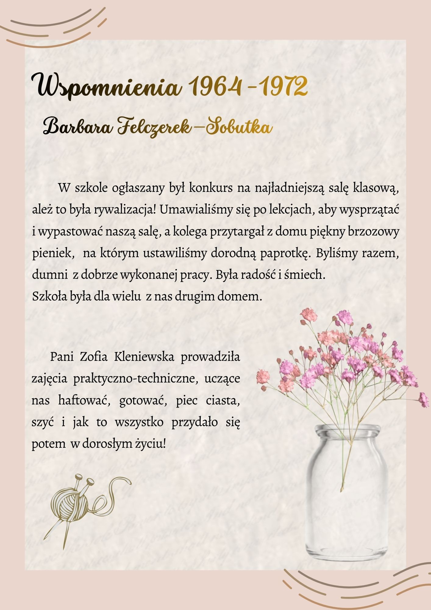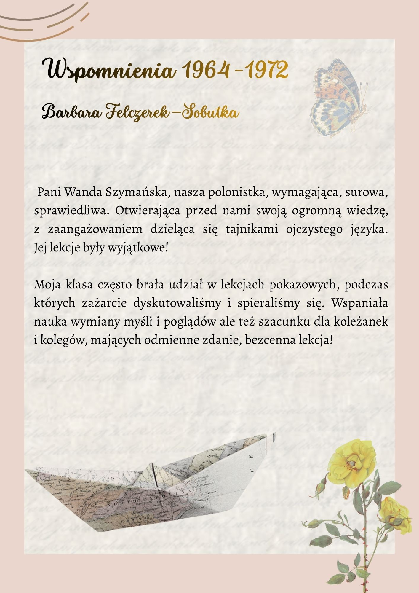 Barbara Felczerek-Sobutka - uczennicy "Czwórki" w latach 1964-1972