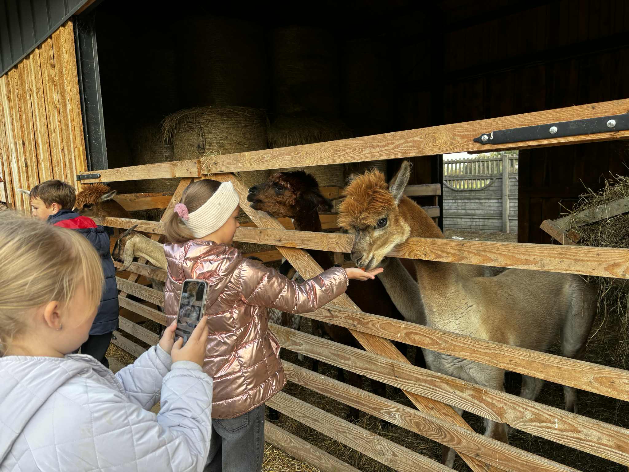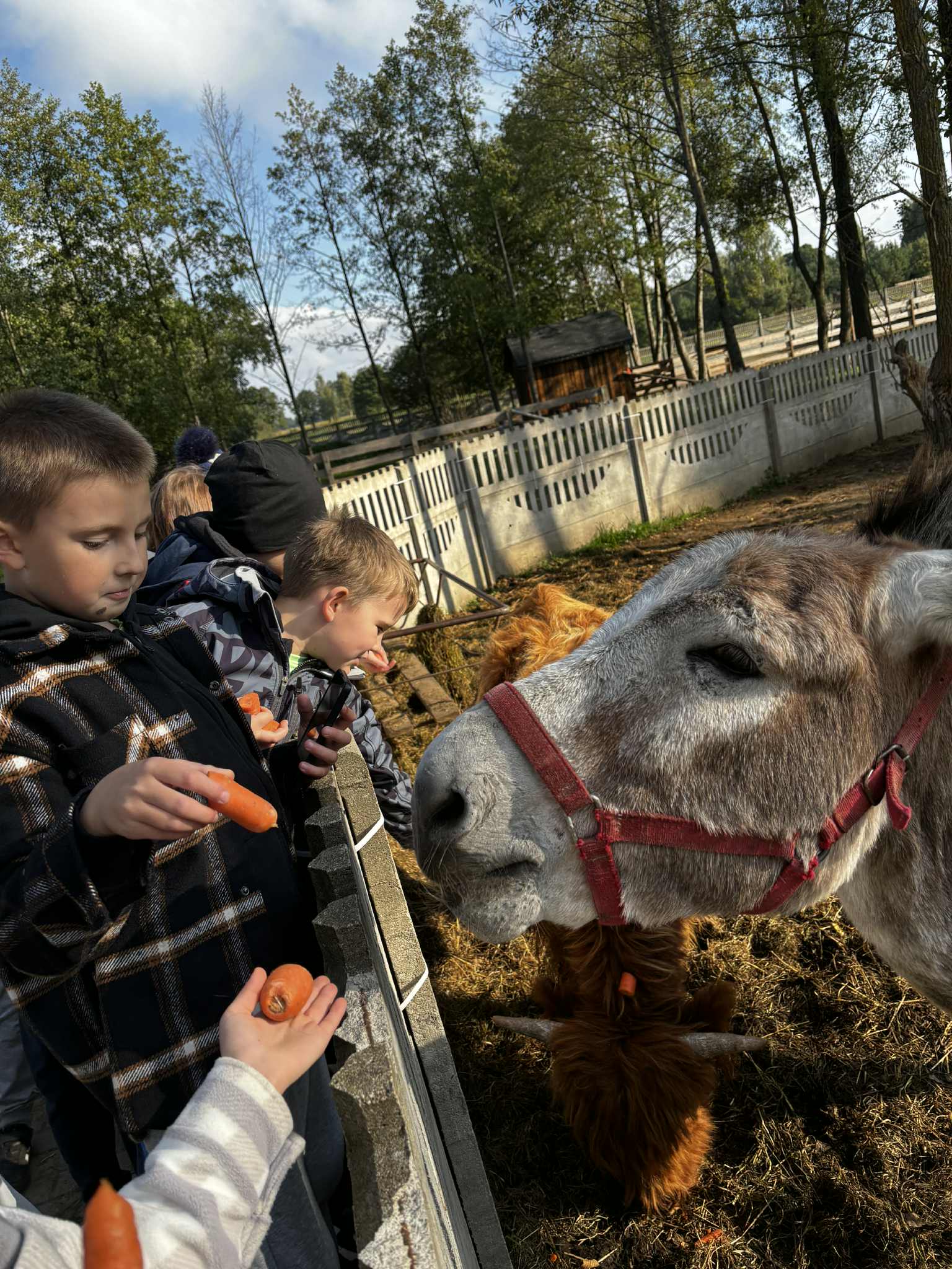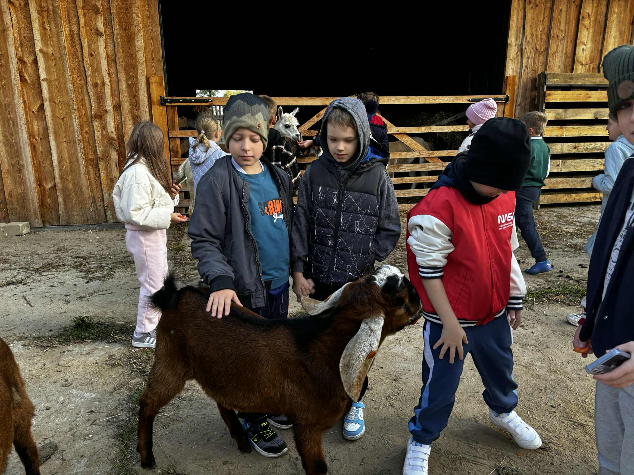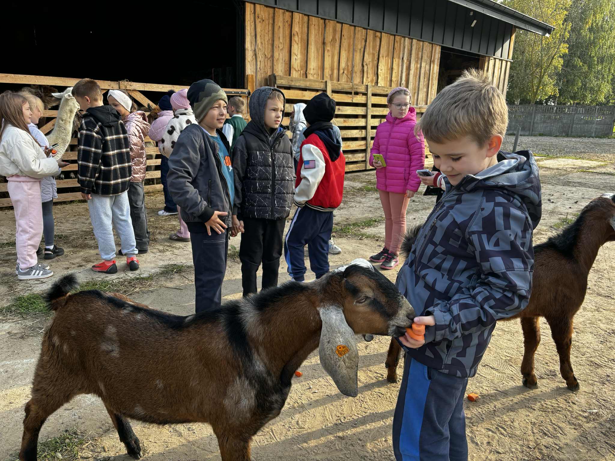Już od pierwszych chwil dzieci były zachwycone- miały okazję karmić kozy, osiołki, koniki miniaturki i alpaki, a także poznały uroczą wielbłądzicę Basię, która podbiła serca wszystkich swoją łagodnością i ciekawskim spojrzeniem.