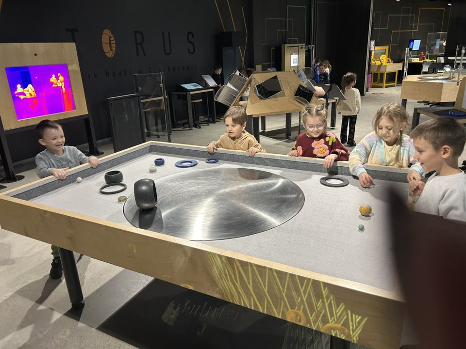 odwiedziły bardzo ciekawe miejsce - Park Nauki Torus. Dzieci poszerzyły swoją wiedzę o zwierzętach poprzez udział w warsztatach pt; ”Śladami zwierząt”. Następnie przedszkolaki zwiedzały i eksperymentowały na ekspozycjach edukacyjnych i pomocach naukowych. To była świetna nauka przez zabawę. Wszyscy wróciliśmy bardzo zadowoleni i pełni pozytywnych emocji.