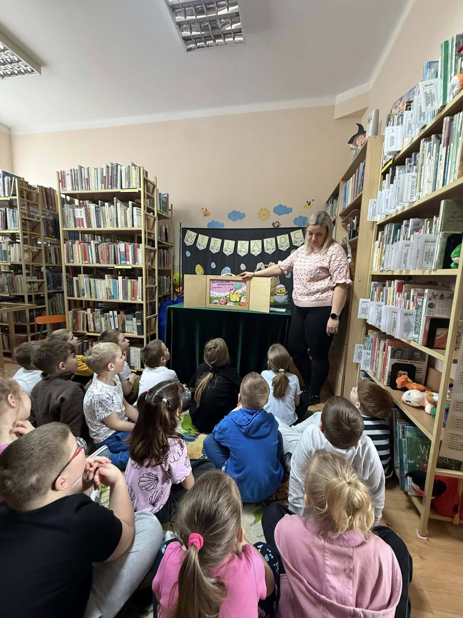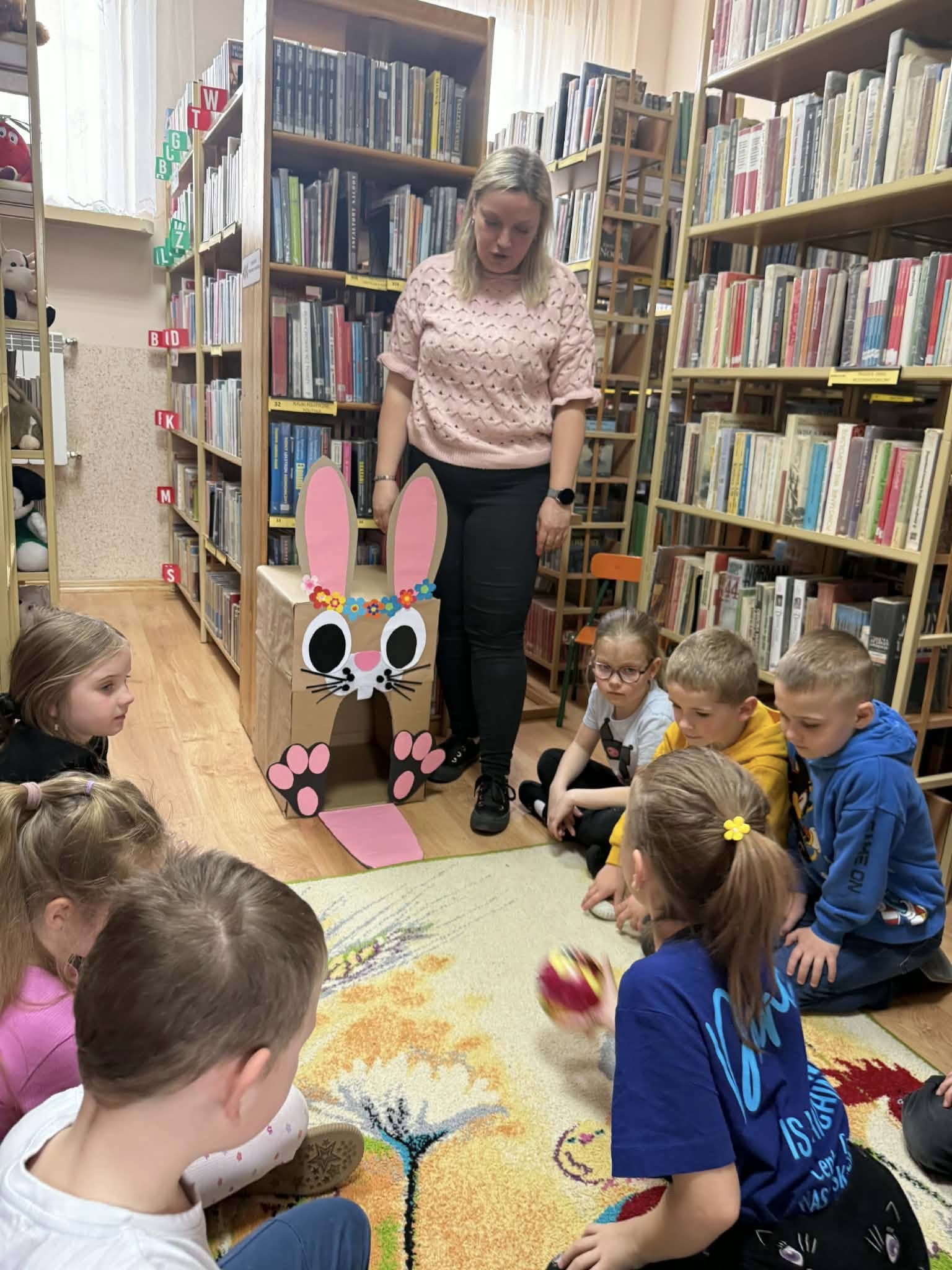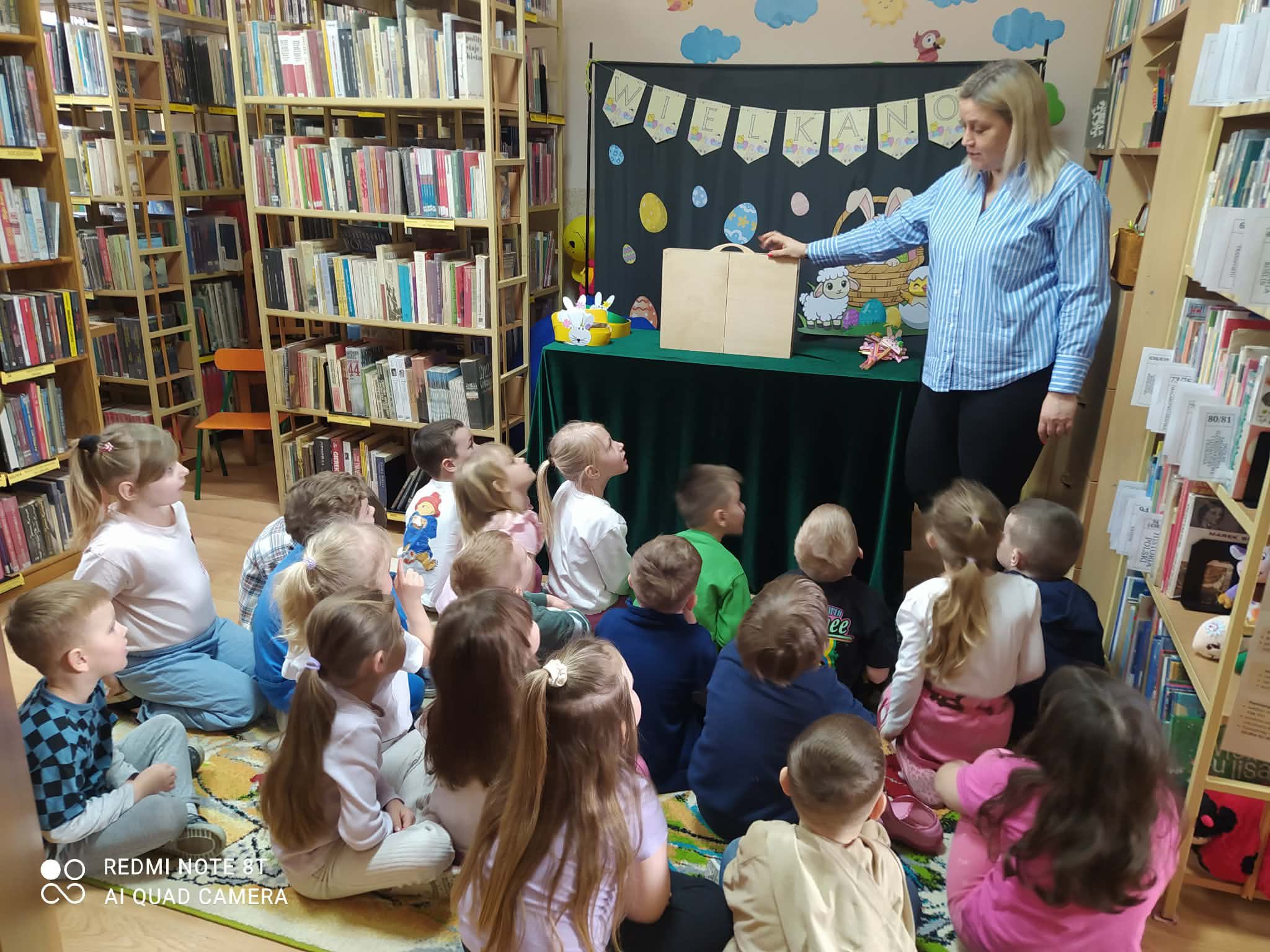 Muchomorki, Sówkii Jeżyki odwiedziły Filię nr 1 Miejskiej Biblioteki Publicznej im. Bolesława Prusa w Mławie. Dzieci wysłuchały świątecznej bajki pt:”Kurczaczek Wielkanocny i jego harce”, a także brały udział w zabawach tematycznych. Spotkanie było okazją do rozwijania zainteresowań czytelniczych i poznania tradycji świątecznych. Dziękujemy Pani Emilii Wtulich za zaproszenie oraz miłą i radosną atmosferę.